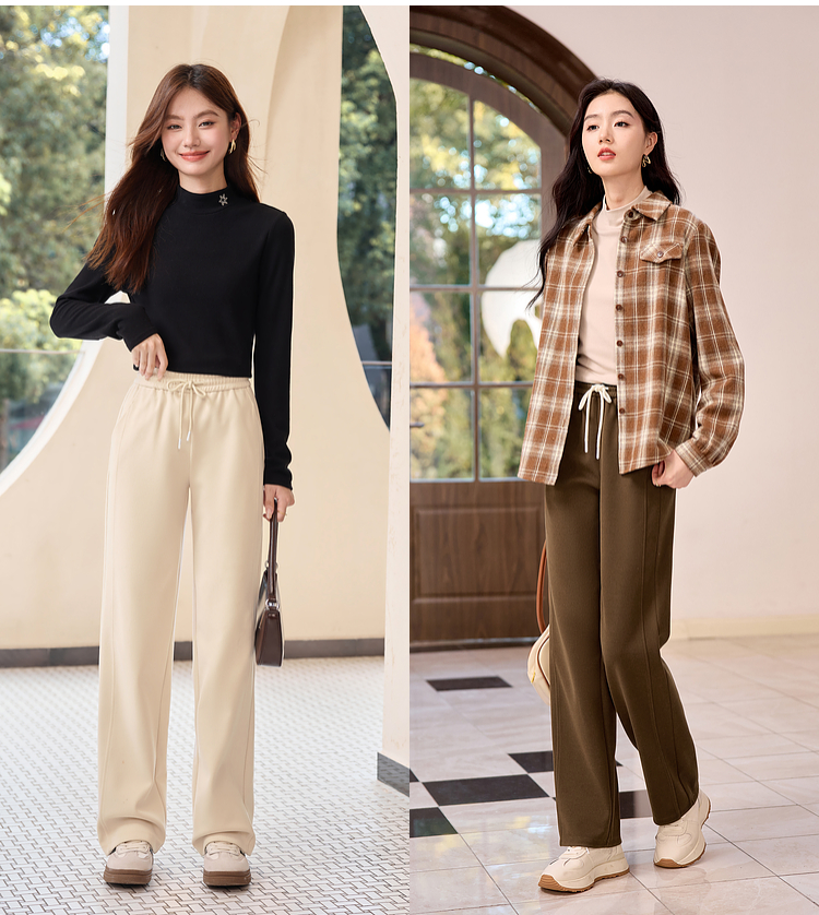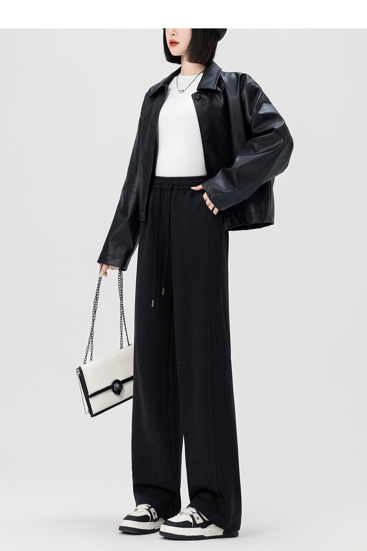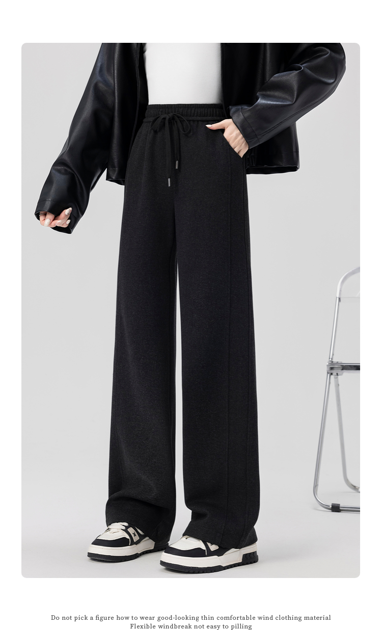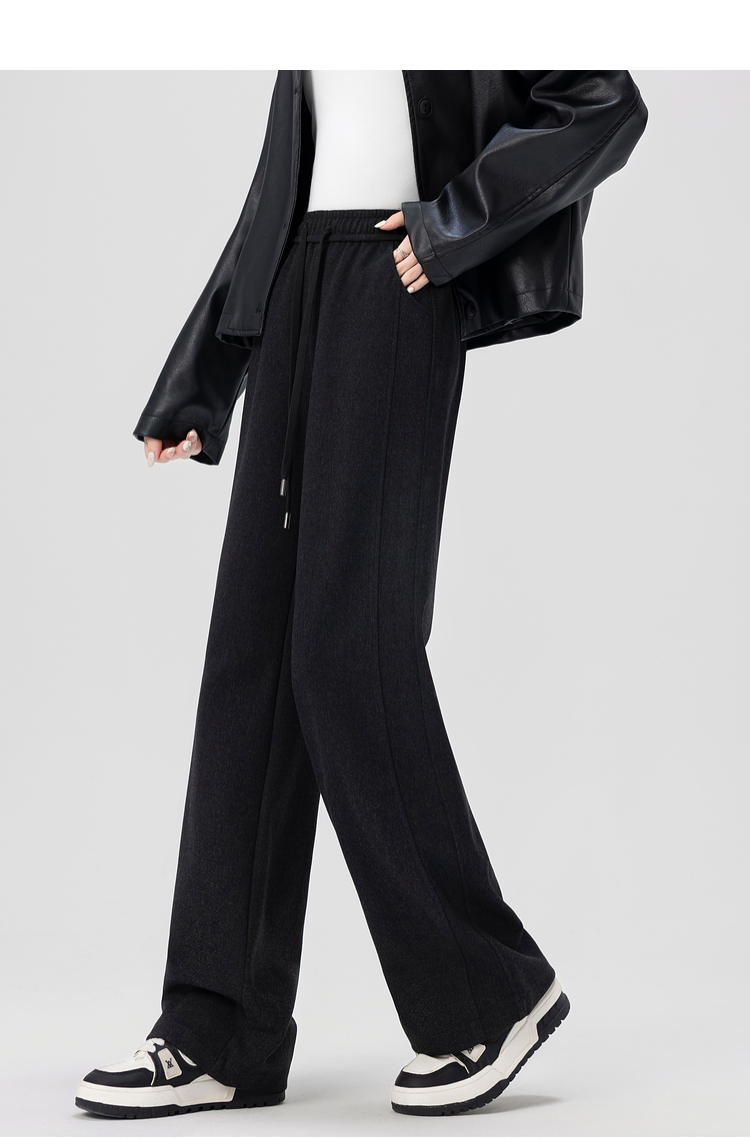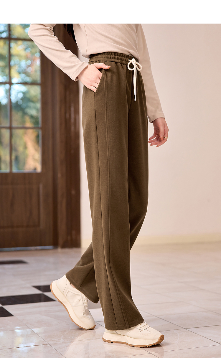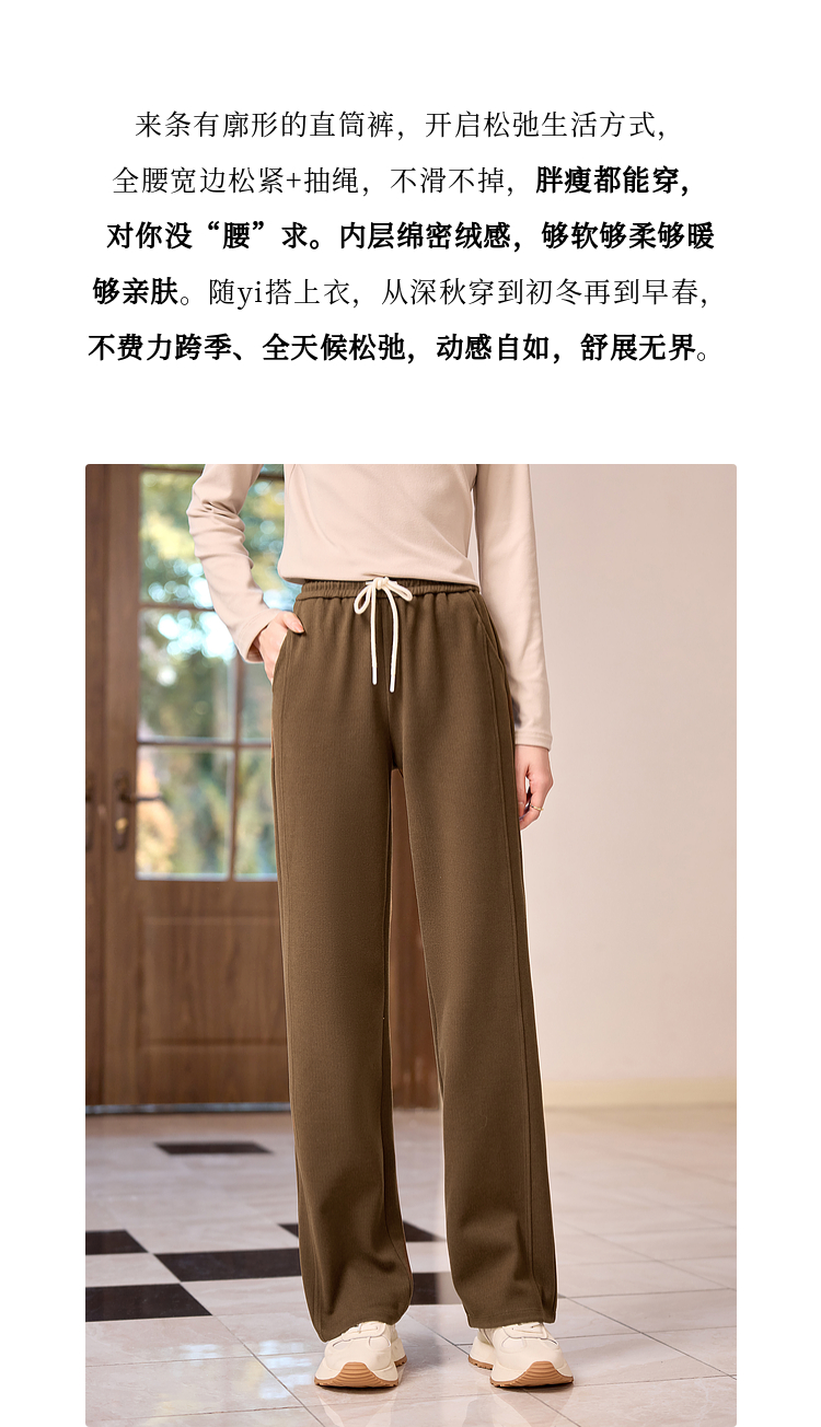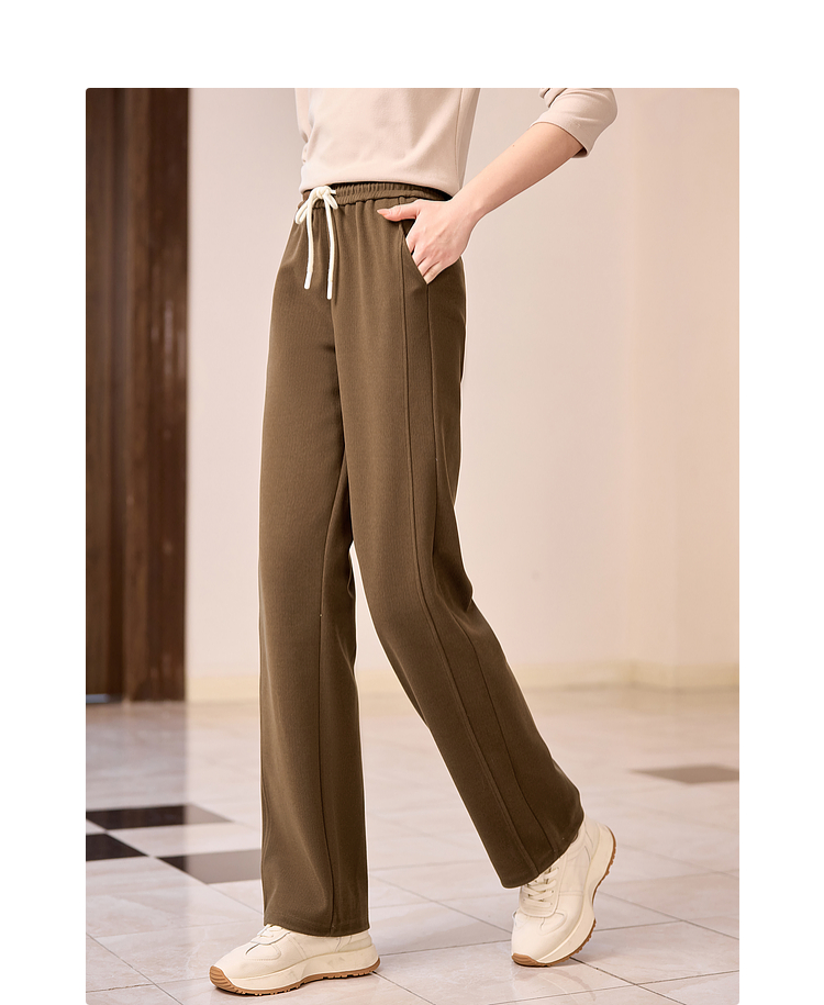 【年终特卖】熙世界针织阔腿裤女秋冬垂感2025新款梨形身材休闲窄版直筒裤子
