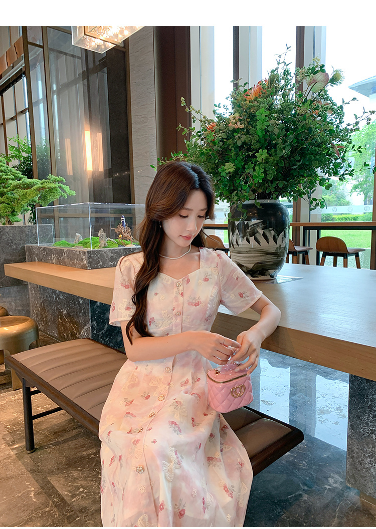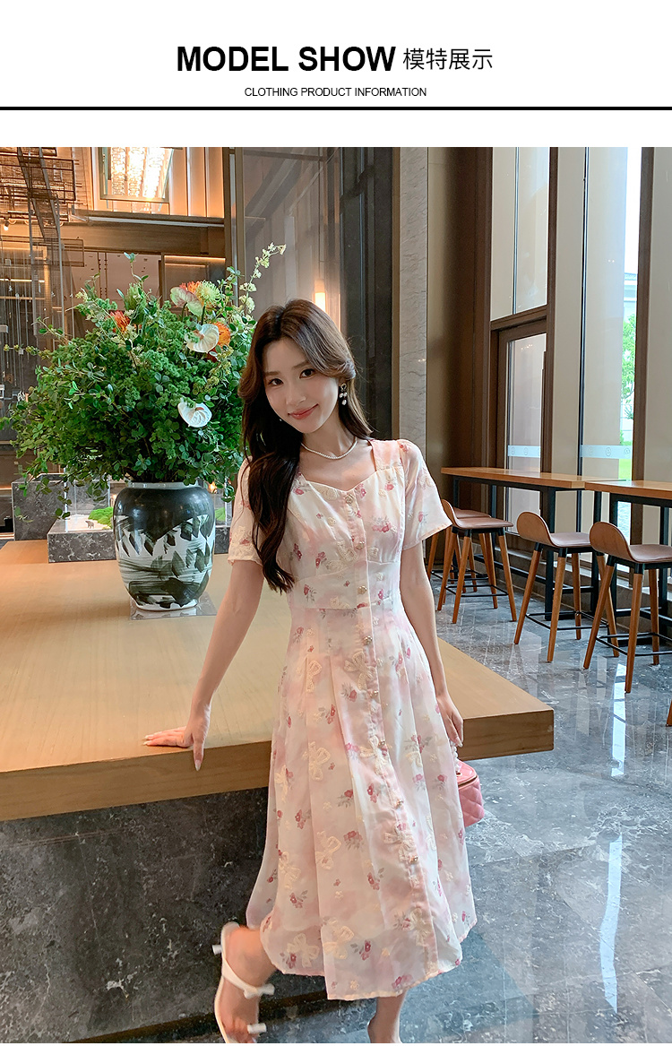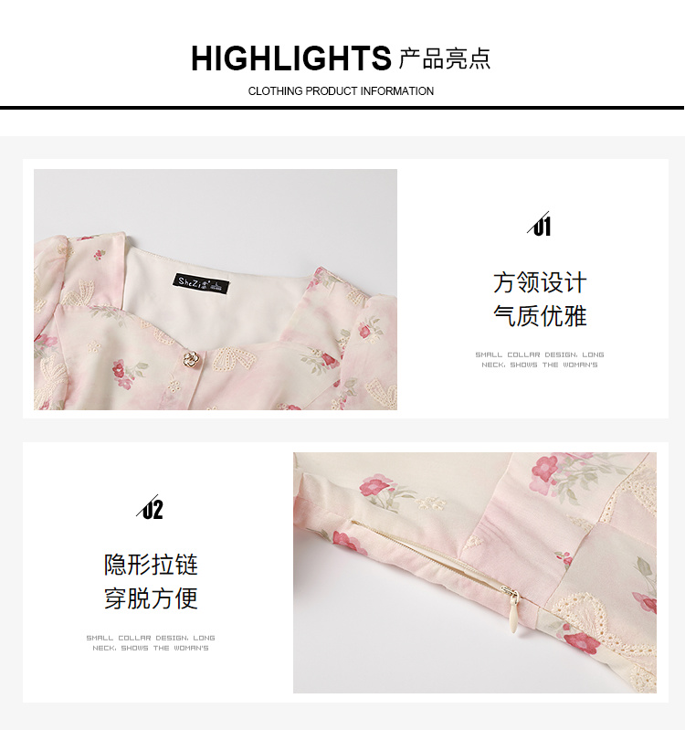 奢姿大码女装2025夏季减龄印花方领连衣裙胖妹妹绣花设计时尚裙子9952869756