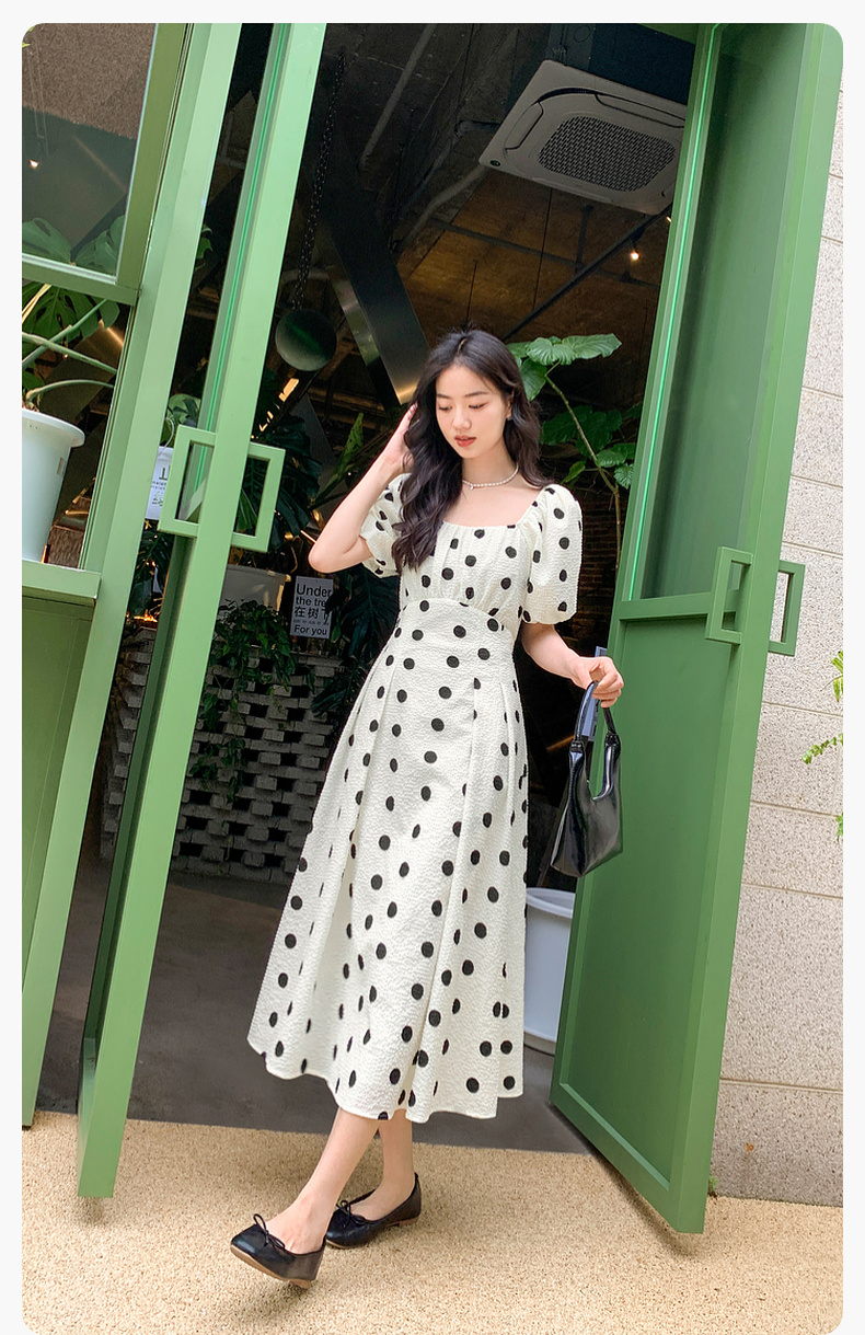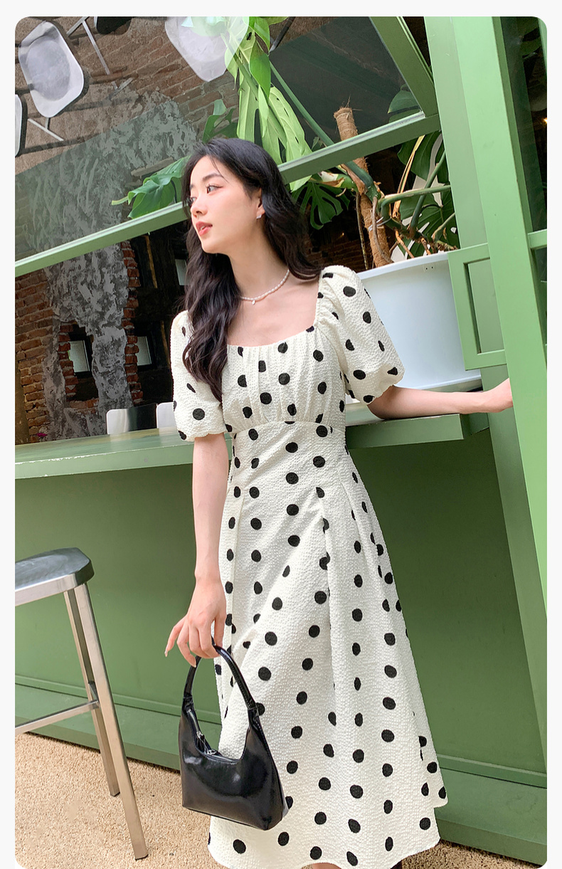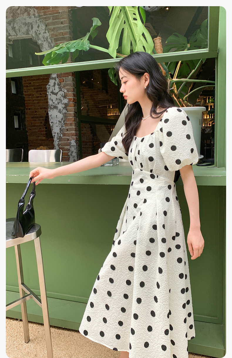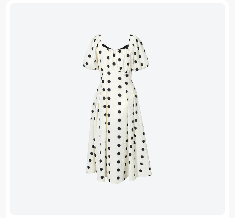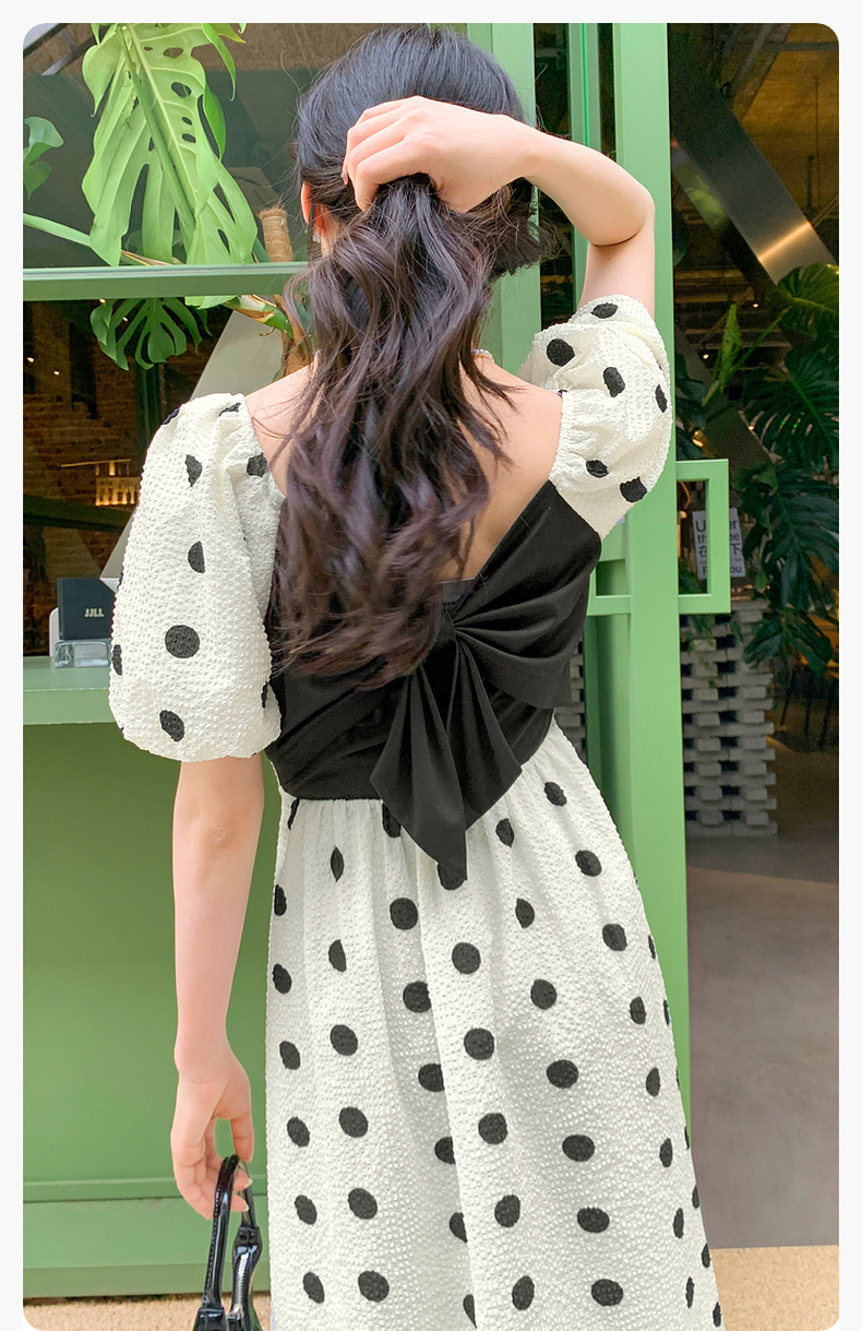 【严选】诗凡黎夏波点图案俏皮百搭背后撞色蝴蝶结连衣裙7E5393061