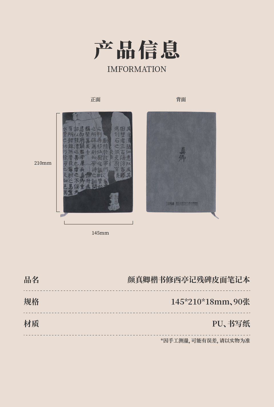 【浙大文创】颜真卿楷书修西亭记残碑皮面笔记本