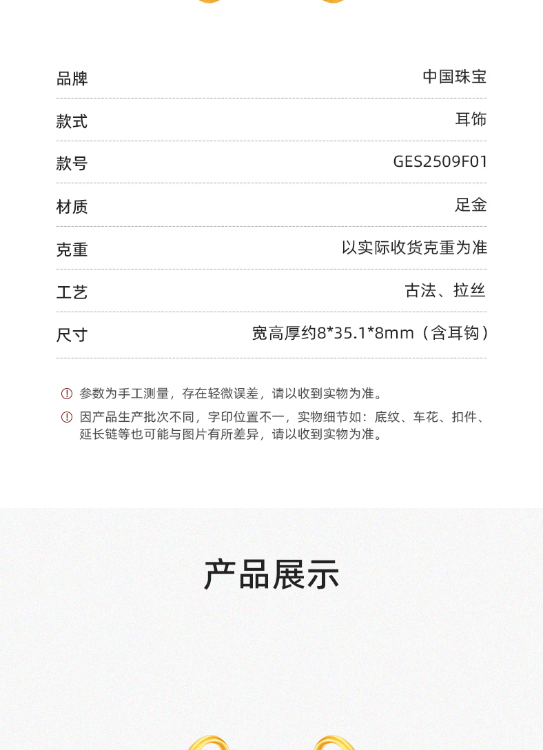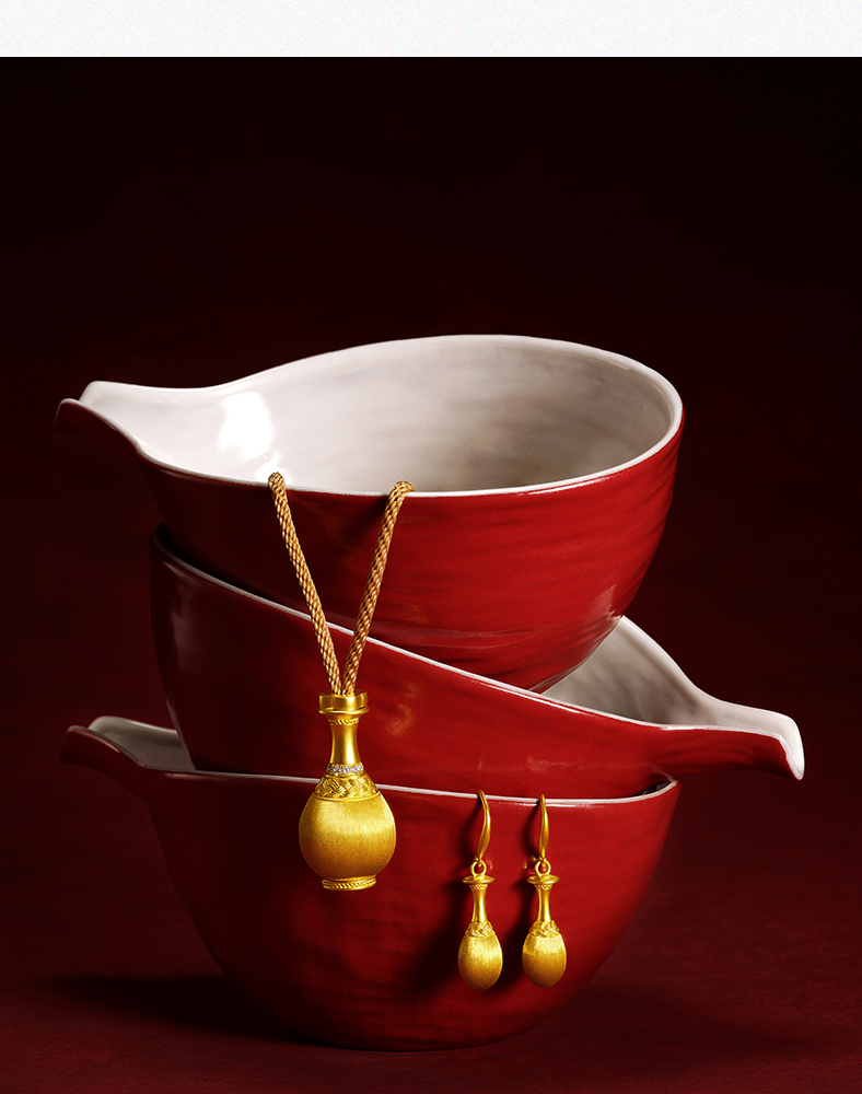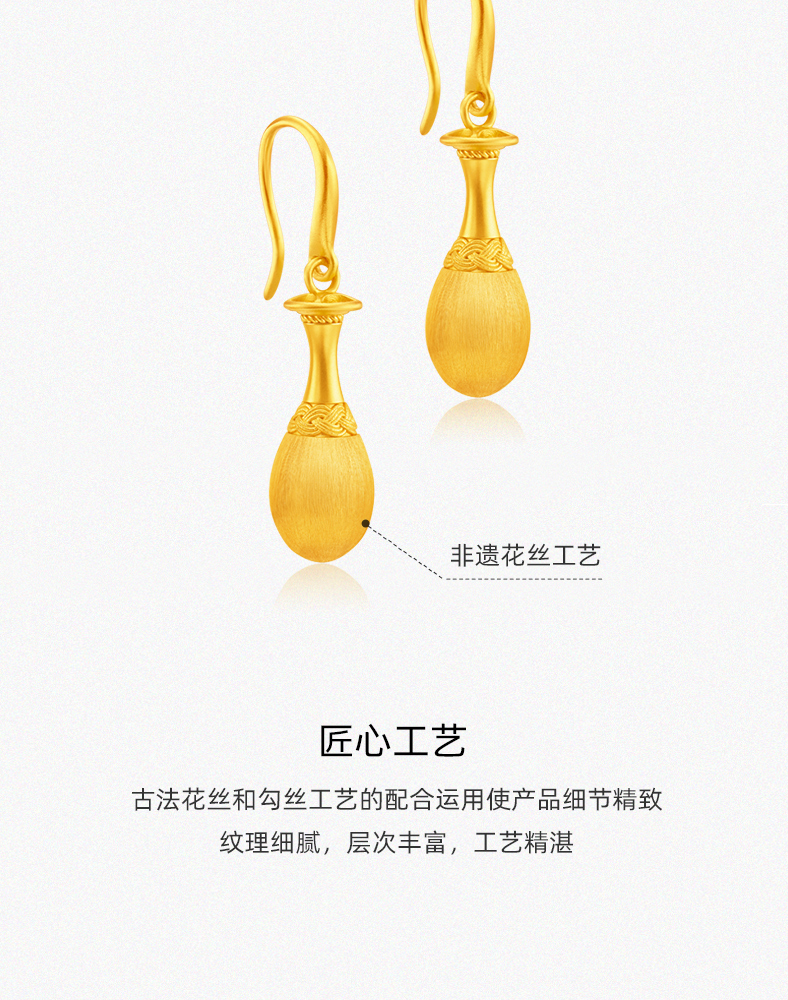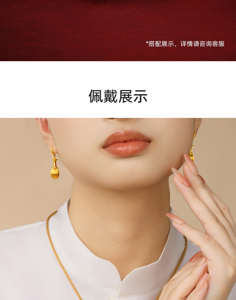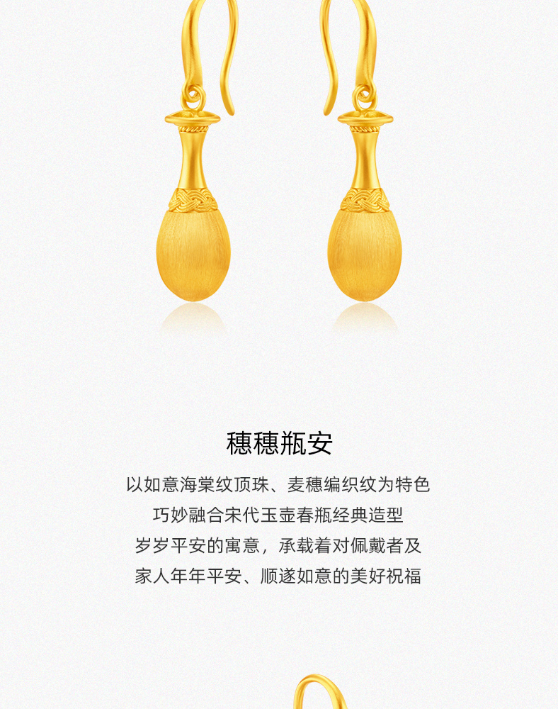 穗穗瓶安足金耳钉 岁岁平安古法工艺黄金耳环生日礼物送女友