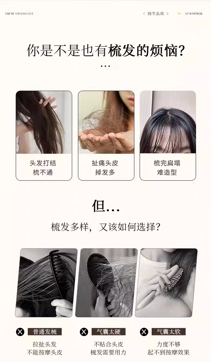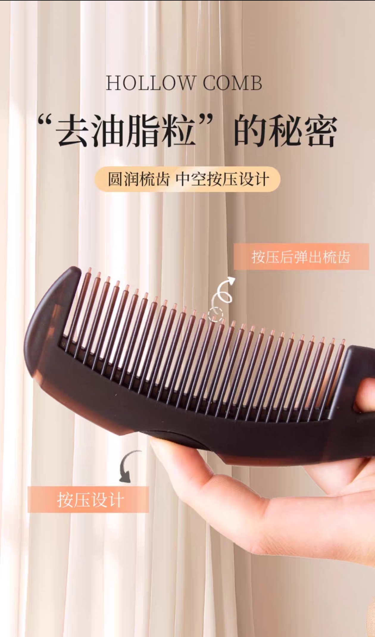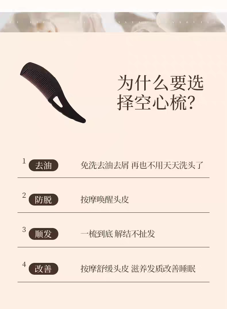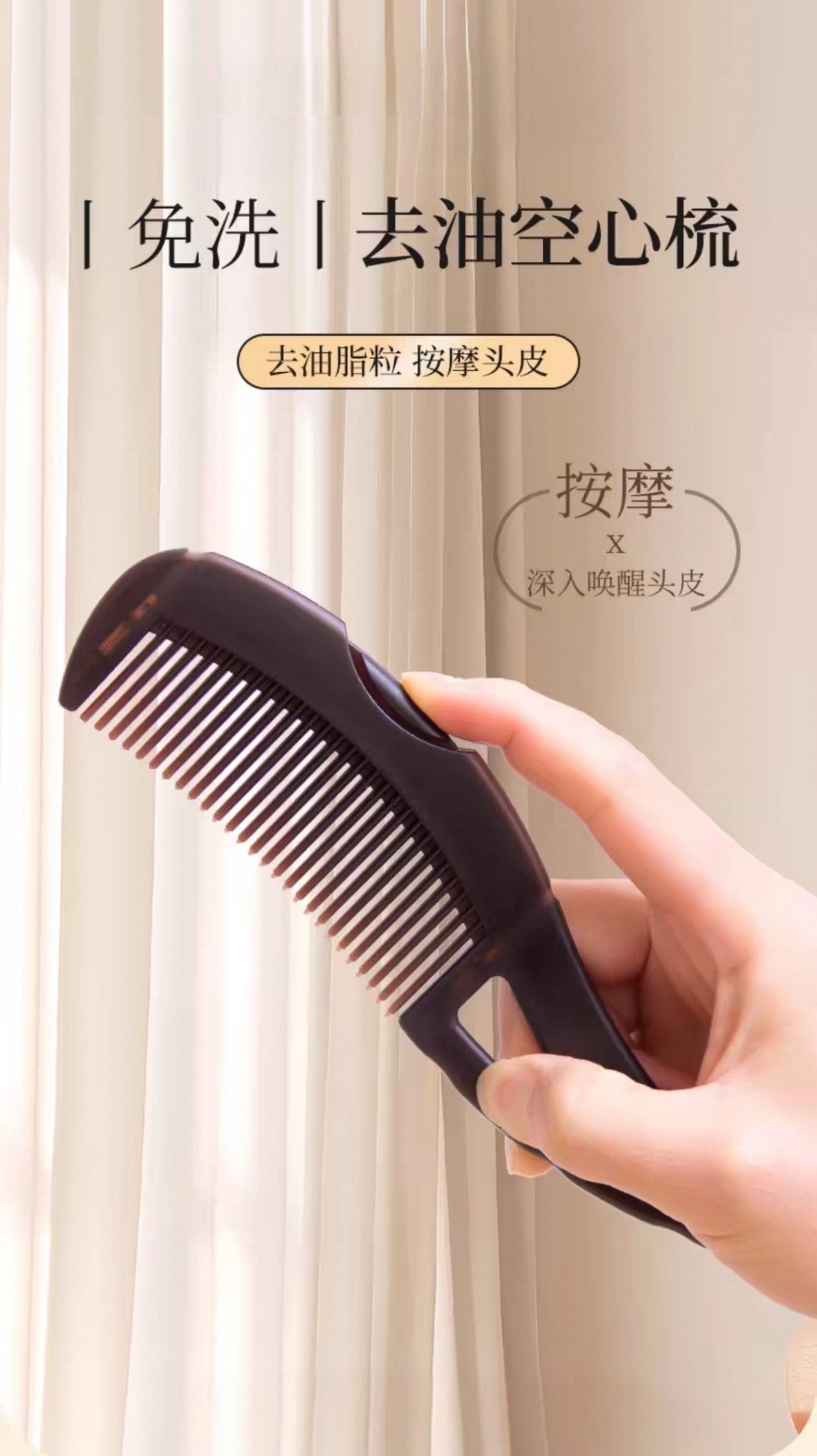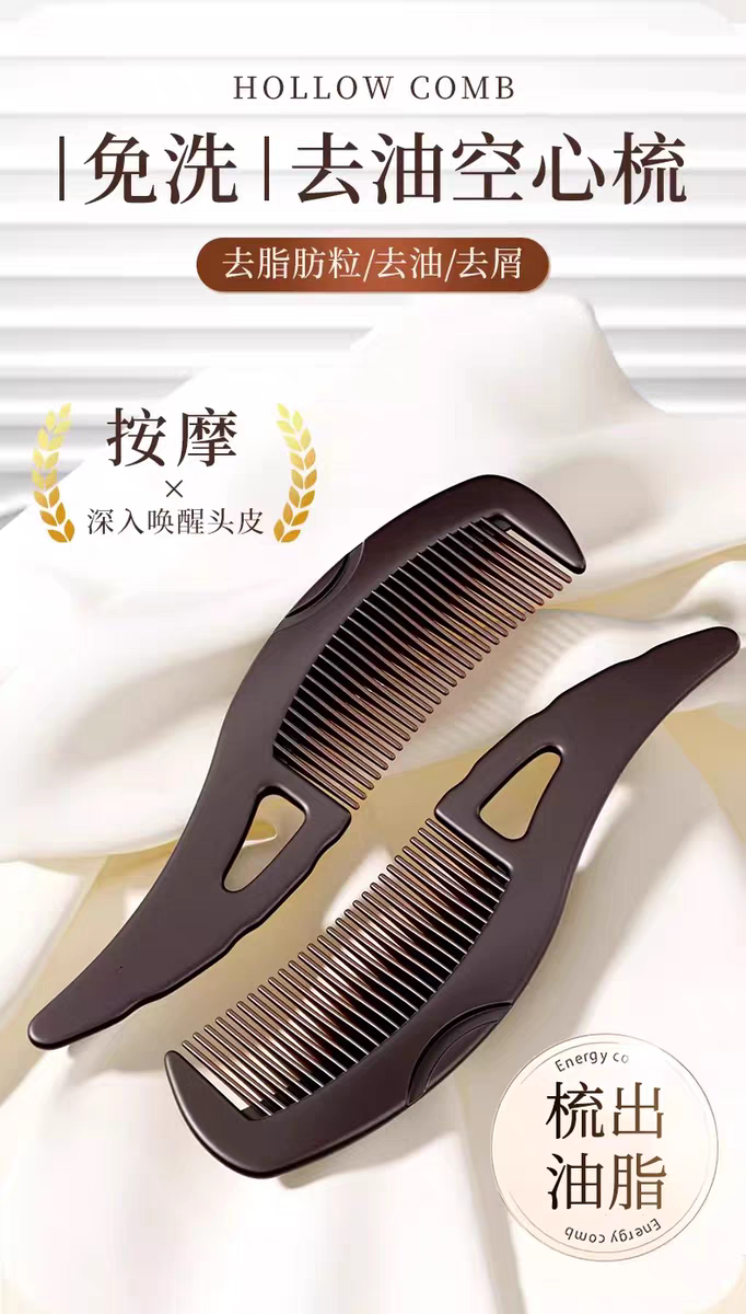 【预售-4月17日配送】买1送1鲸晟头皮清理按摩空心梳子(深棕色/把)