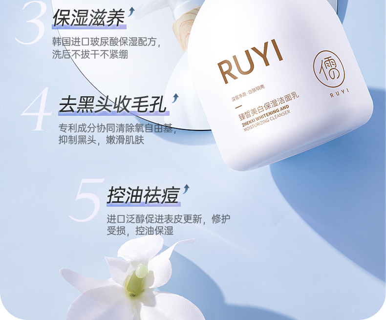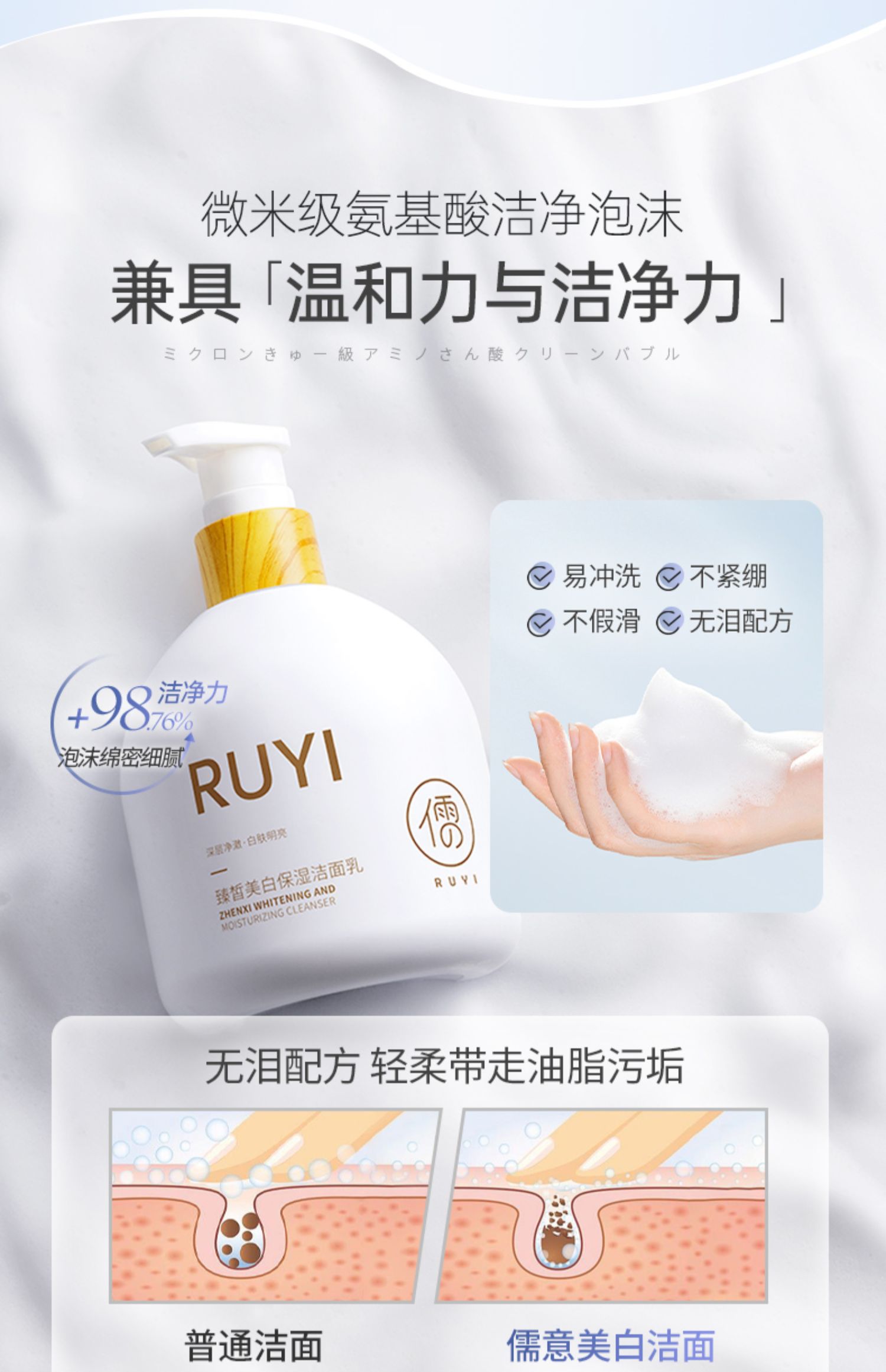 儒意臻皙美白保湿洁面乳300g 温和清洁 收缩毛孔 控油祛痘 除螨氨基酸洁面乳 女男士专用 | 儒意官方商城