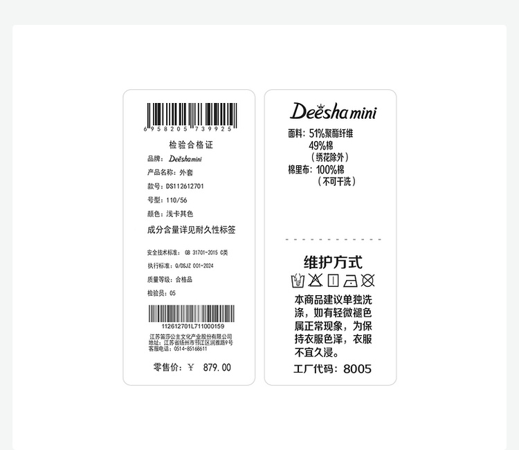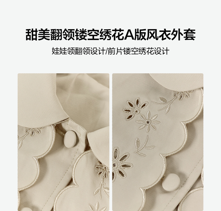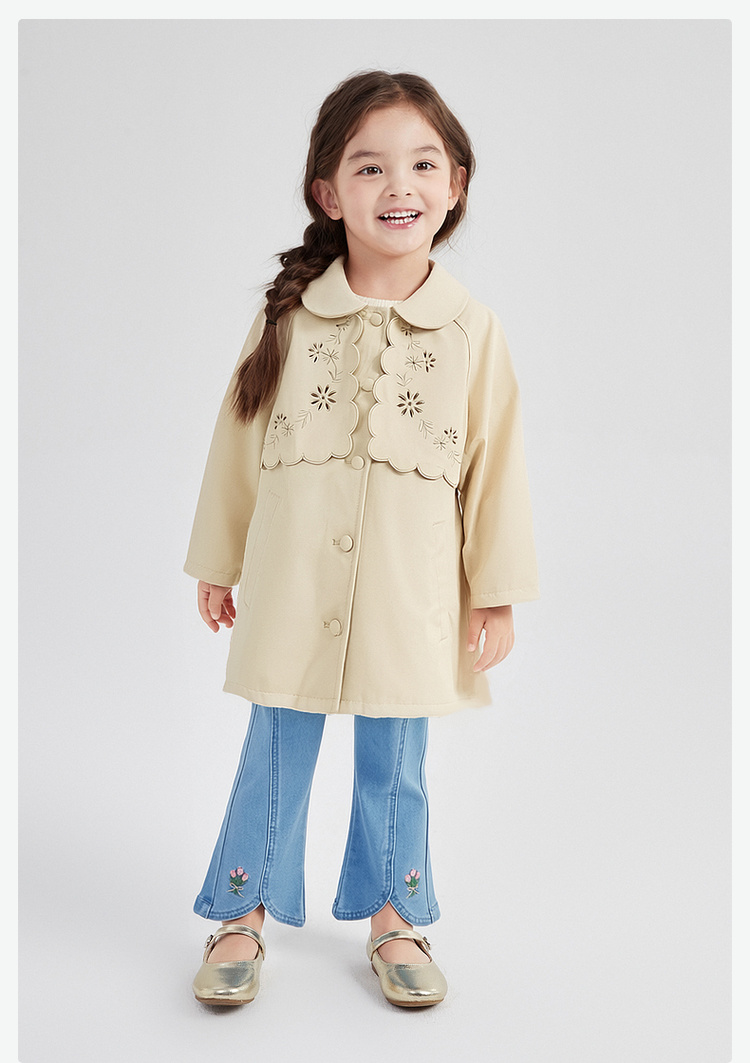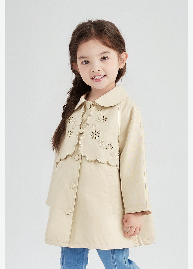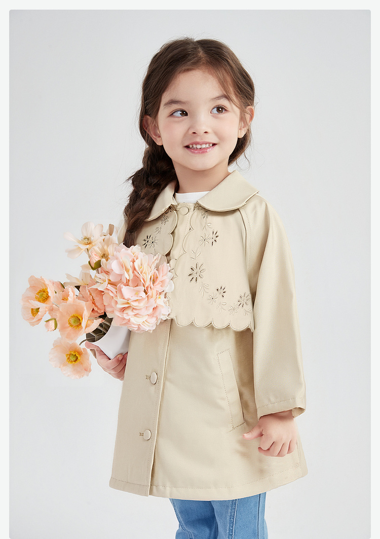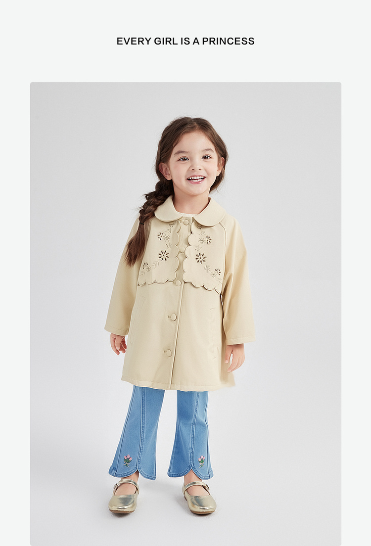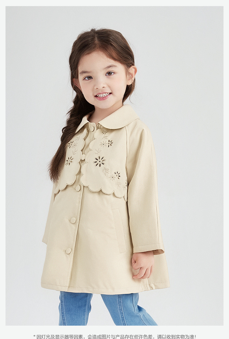 笛莎Deesha 童装女童外套2026春新款甜美翻领镂空绣花A版风衣外套