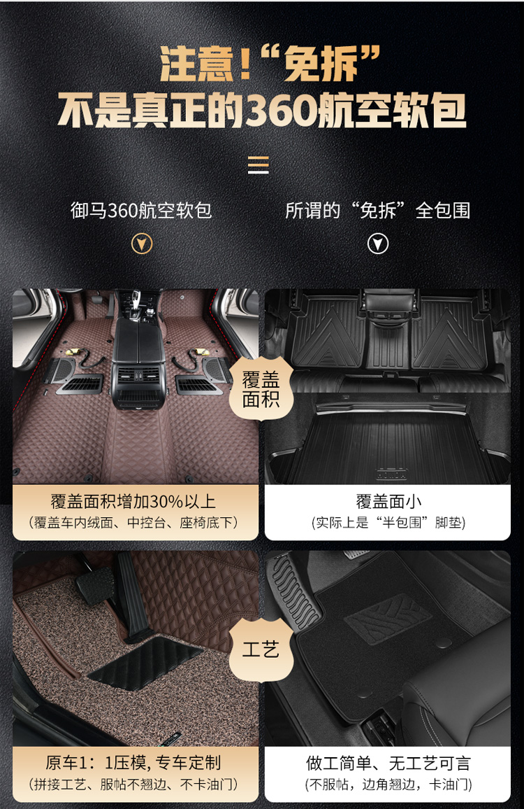 【会员专享】御马360航空软包全包围脚垫奔驰宝马x5x7奥迪a6lq5l汽车丝圈专用