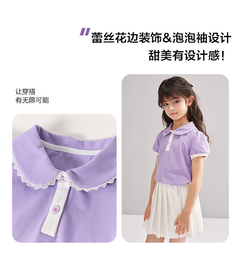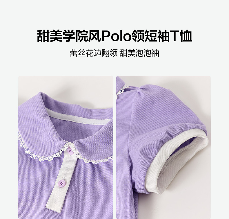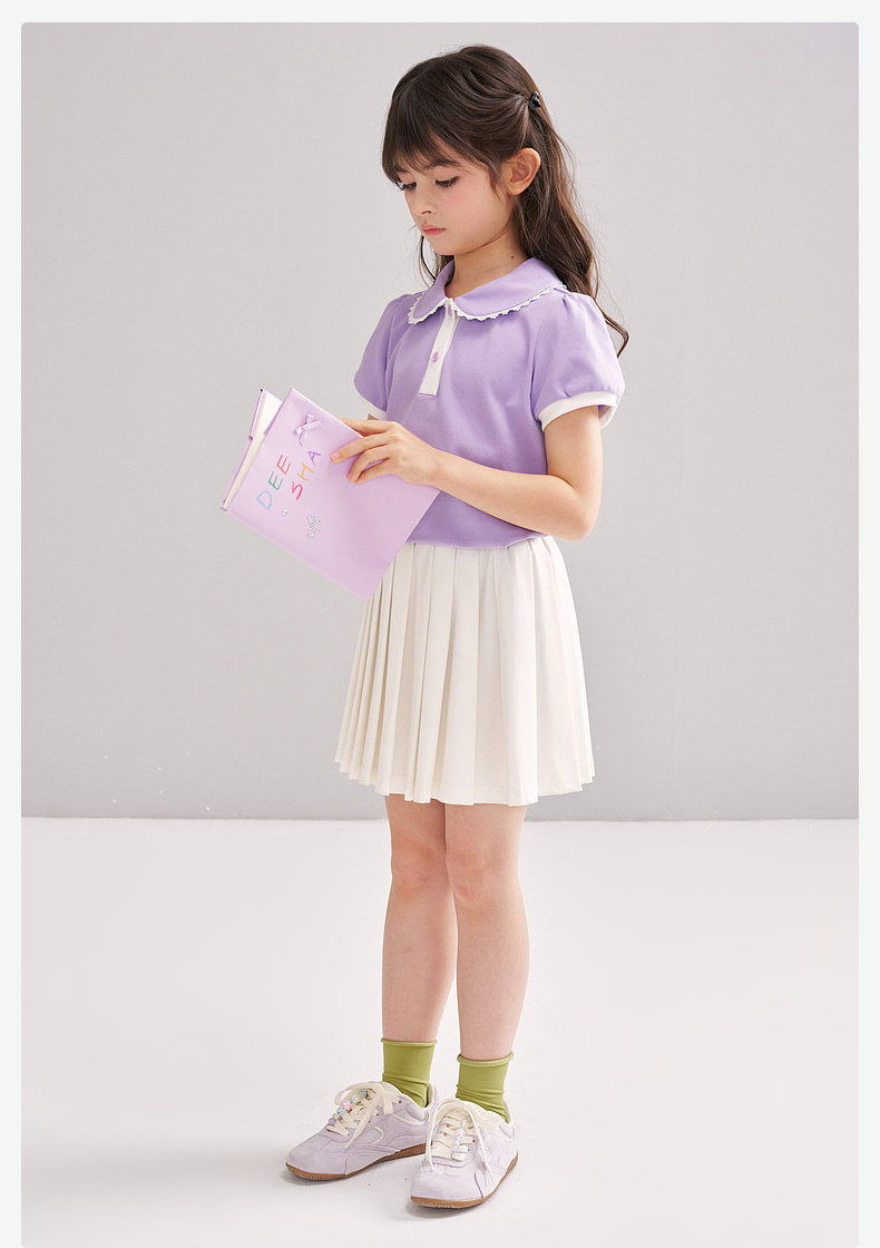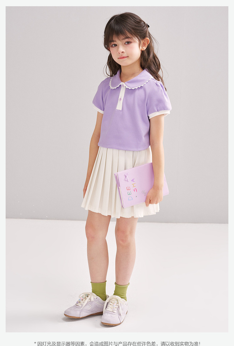 笛莎Deesha 2026年夏季新款中童女童翻领T恤T恤