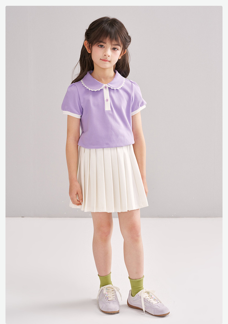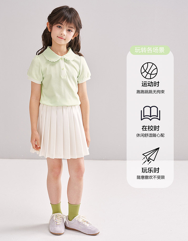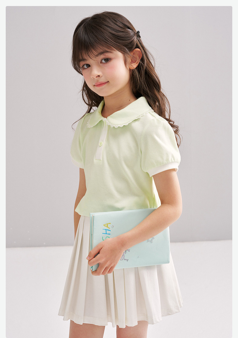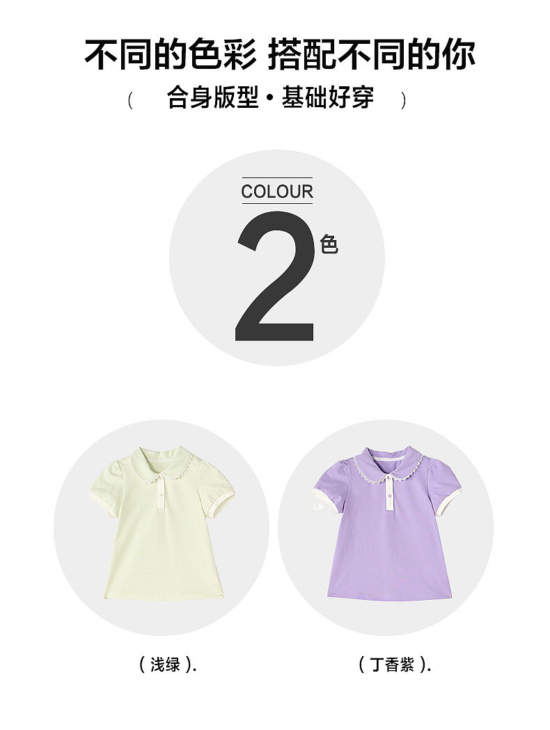 笛莎Deesha 2026年夏季新款中童女童翻领T恤T恤