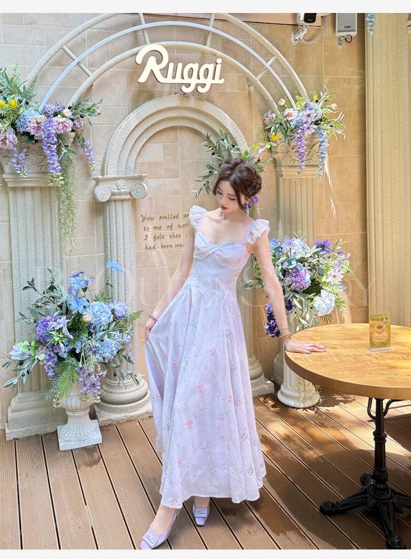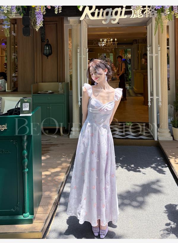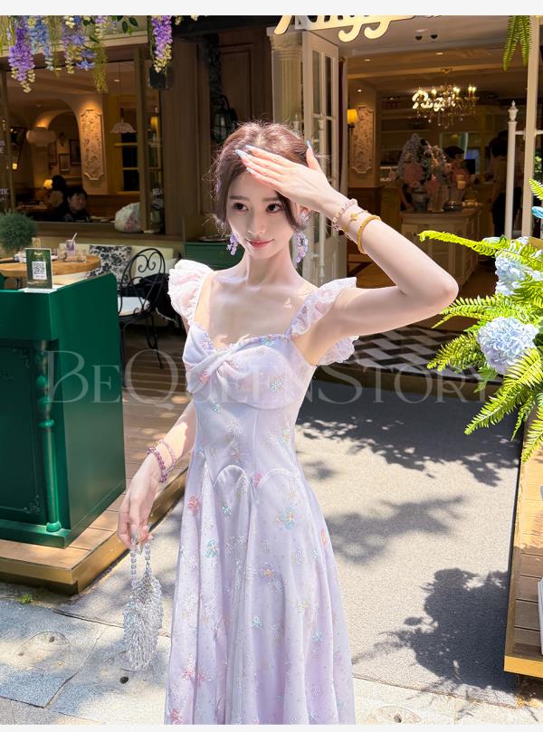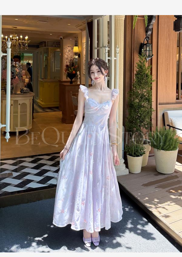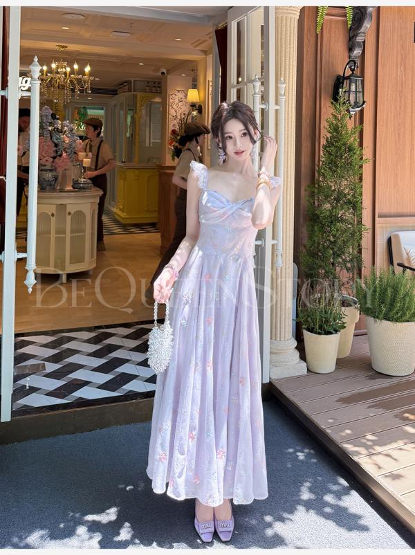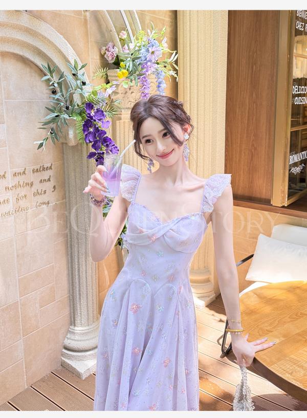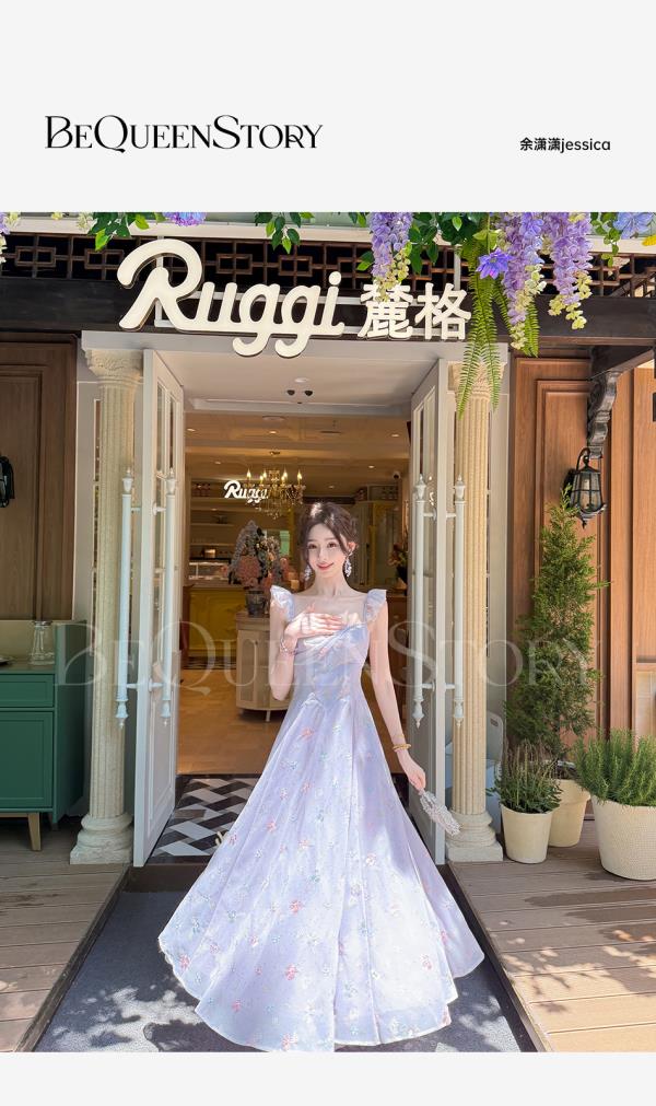 【孤品样衣,不退不换】【丁香凝露】高定手工立体绣花亮片收腰长款连衣裙夏季新款