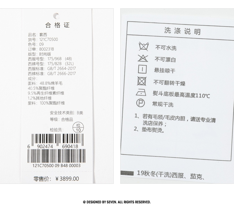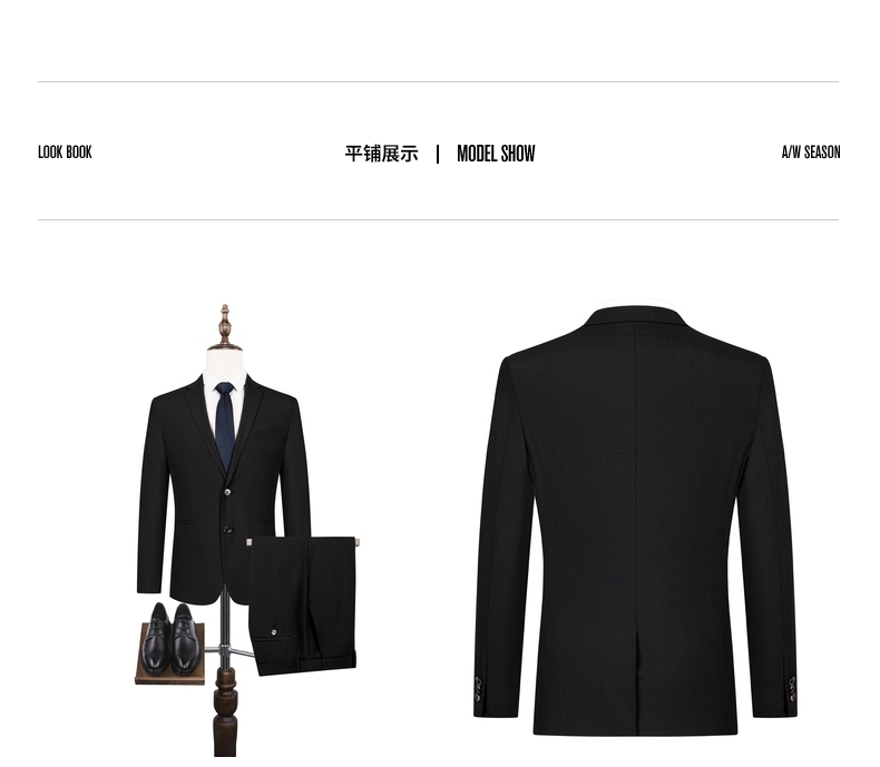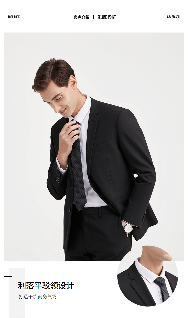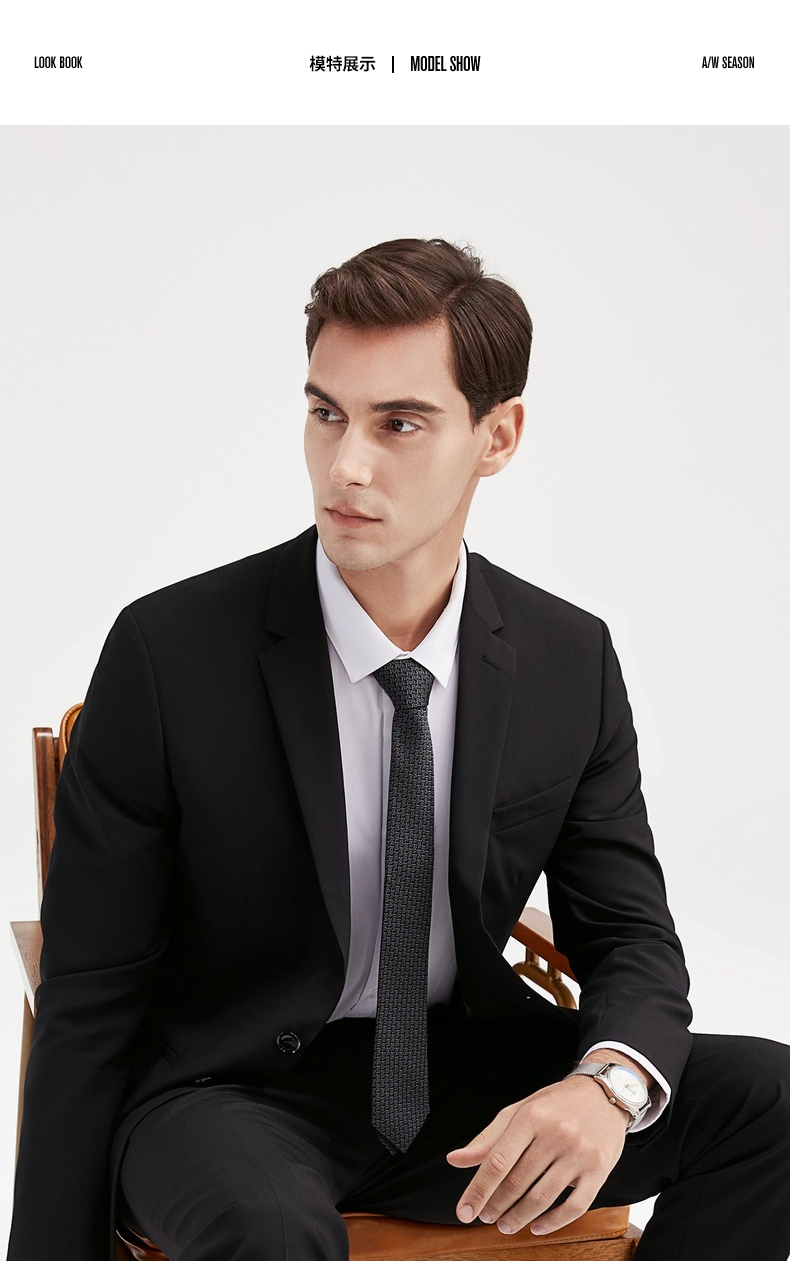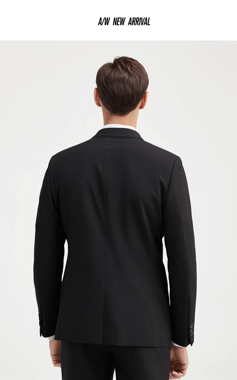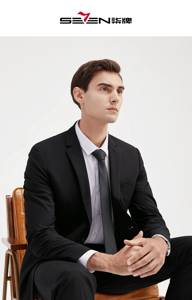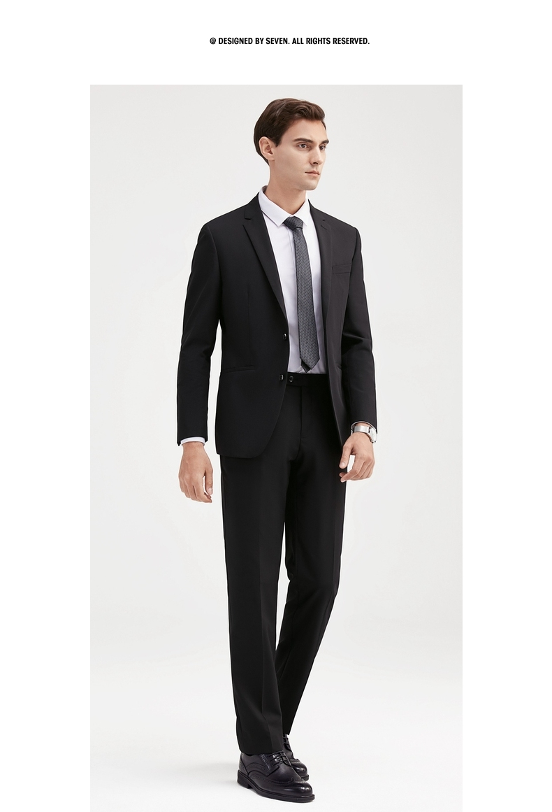【含羊毛】柒牌西服男士套装毛料套西商务休闲正装两件套黑色礼服 121C70500