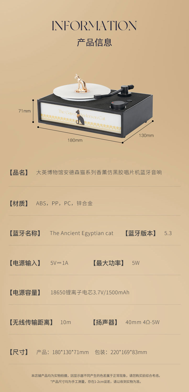 大英博物馆 安德森猫系列香薰仿黑胶唱片机蓝牙音响