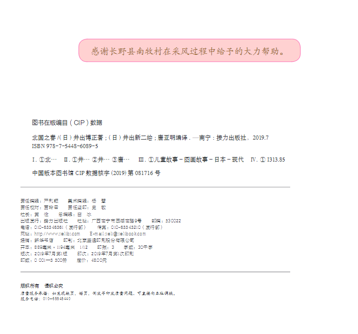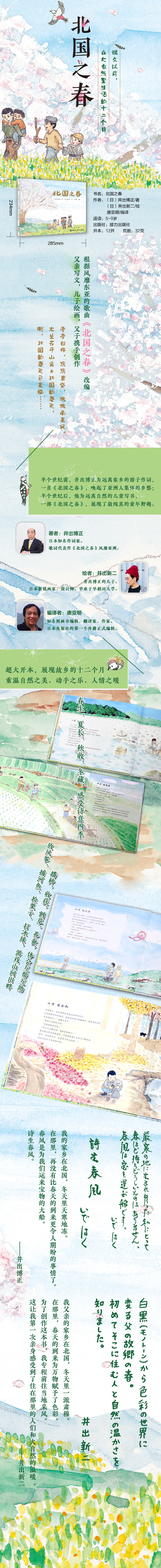 歌曲《北国之春》曾经风靡整个东亚,本书就是由这首歌曲的词作者井出博正根据自己之前创作的歌词改编而成,图画作者井出新二为井出博正的儿子。
