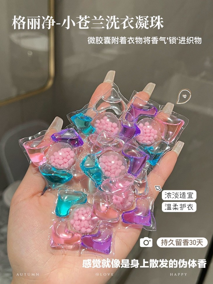格丽净-小苍兰洗衣凝珠 ✅一颗搞定洗衣全流程! ✅去污、除菌、柔顺、护色、留香 ✅全方位呵护衣物,洗衣更省时省力! 格丽净-小苍兰洗衣凝珠 解锁洗衣新体验,轻松应对每一天 在日常生活中,洗衣是我们不可避免的一项家务 然而许多人却对这项看似简单的任务感到头疼 无论是清洗工作服、运动服 还是娇贵的羊毛衫、丝绸衣物 每一种衣物的清洁需求都各不相同 而在家务繁忙、时间有限的现代生活中 如何有效简化洗衣过程,避免传统洗衣液 柔顺剂去污剂等产品带来的麻烦 成为了许多人面临的问题
