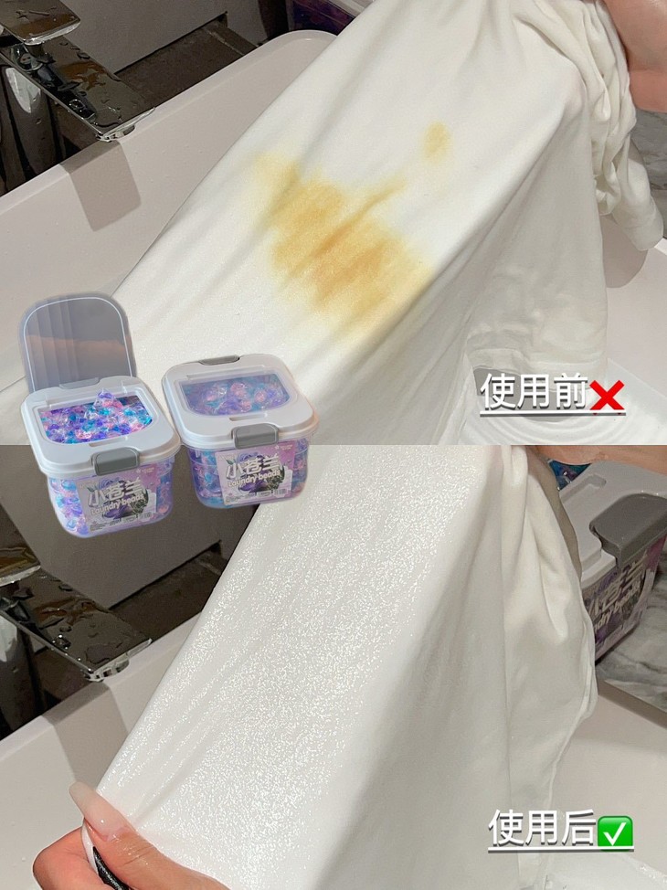 清洗前后对比明显 洗完了的衣服和新的一样 用过洗衣凝珠你才知道多方便 一次一颗,用完都不用喷香水 省时省心省力,还能柔顺留香 简直就是懒人必备 !!