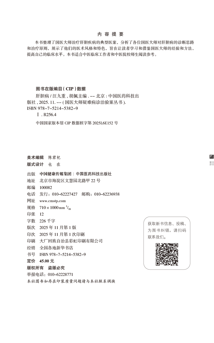 肝胆病(国医大师疑难病诊治验案丛书)汪九重 胡佩 主编 本书适合中医临床工作者和中医院校师生阅读参考 中国医药科技出版社