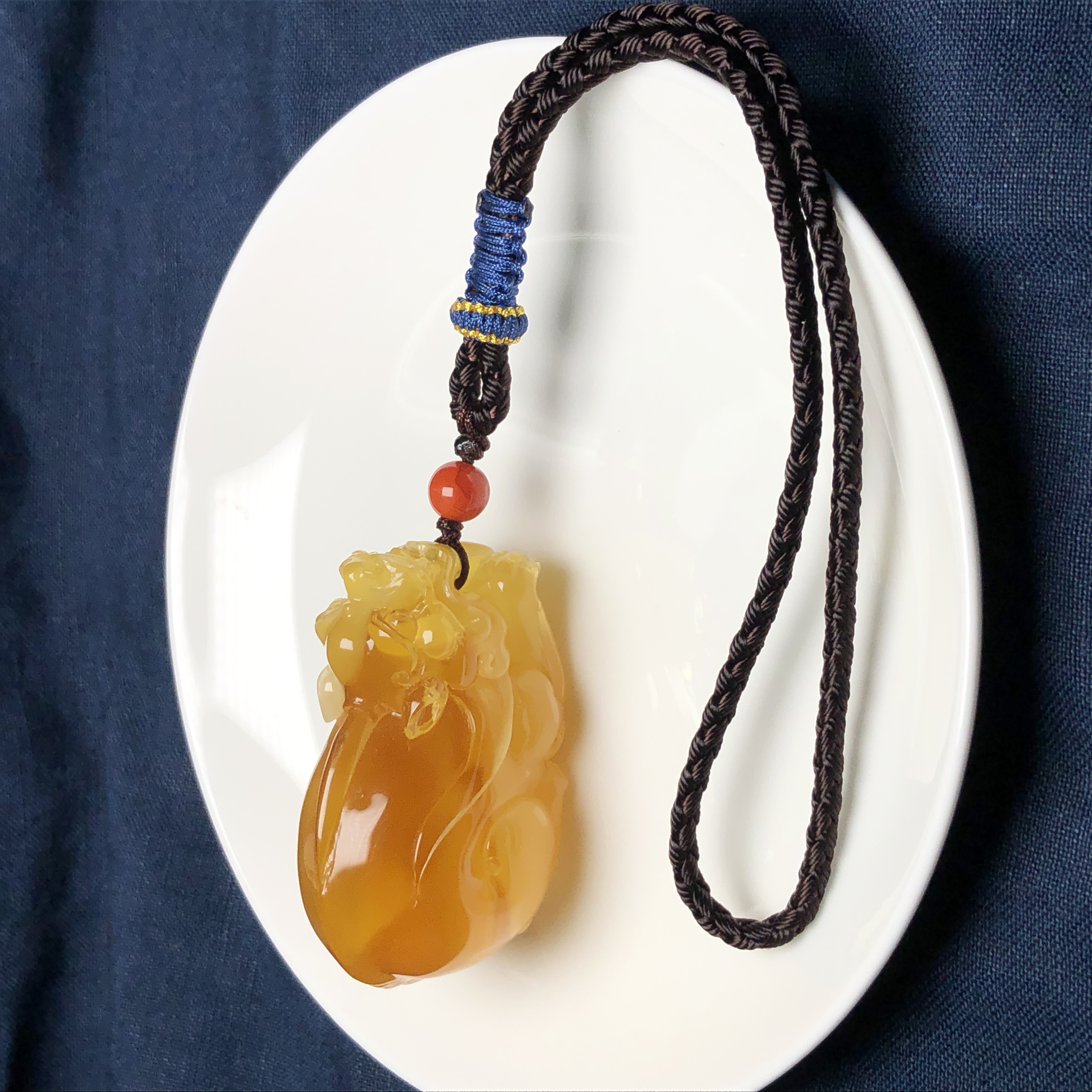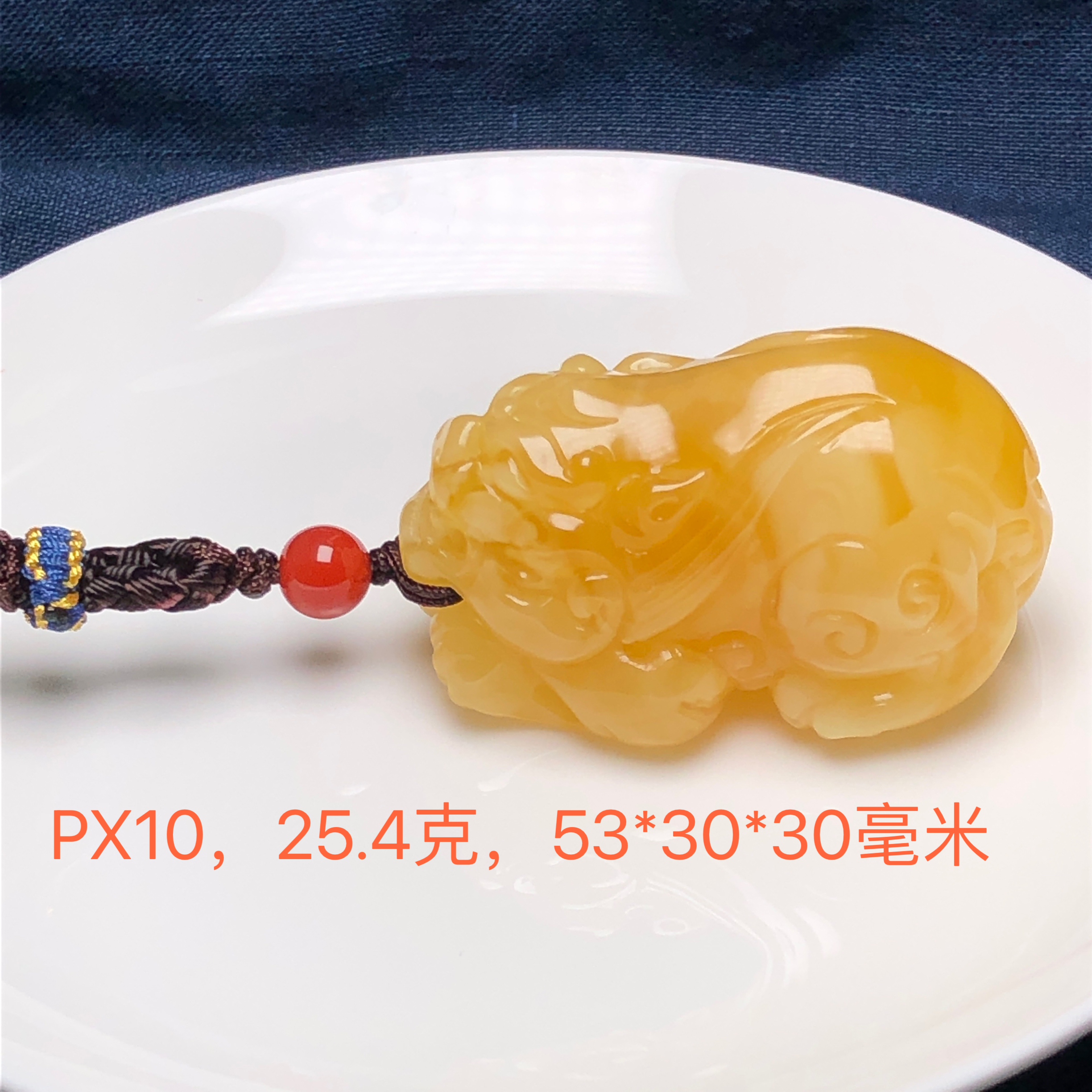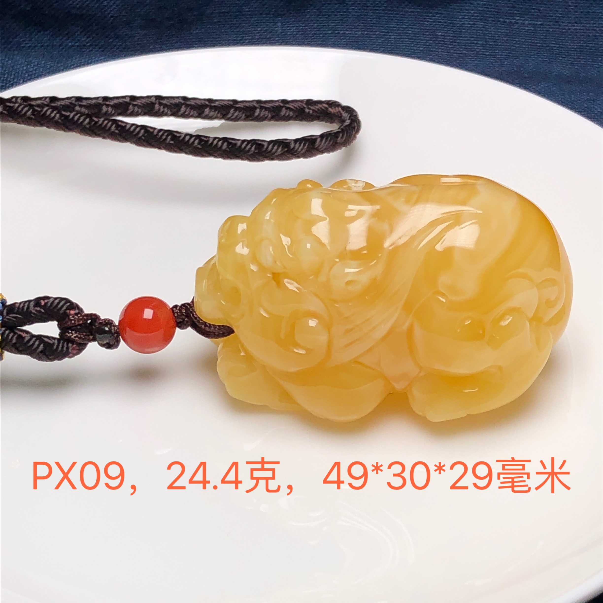 天然原矿俄白花琥珀(蜜蜡)貔貅配南红手把件 饰品美物
