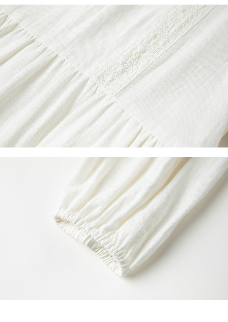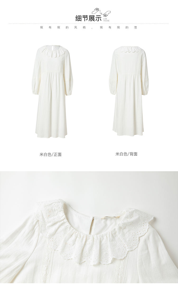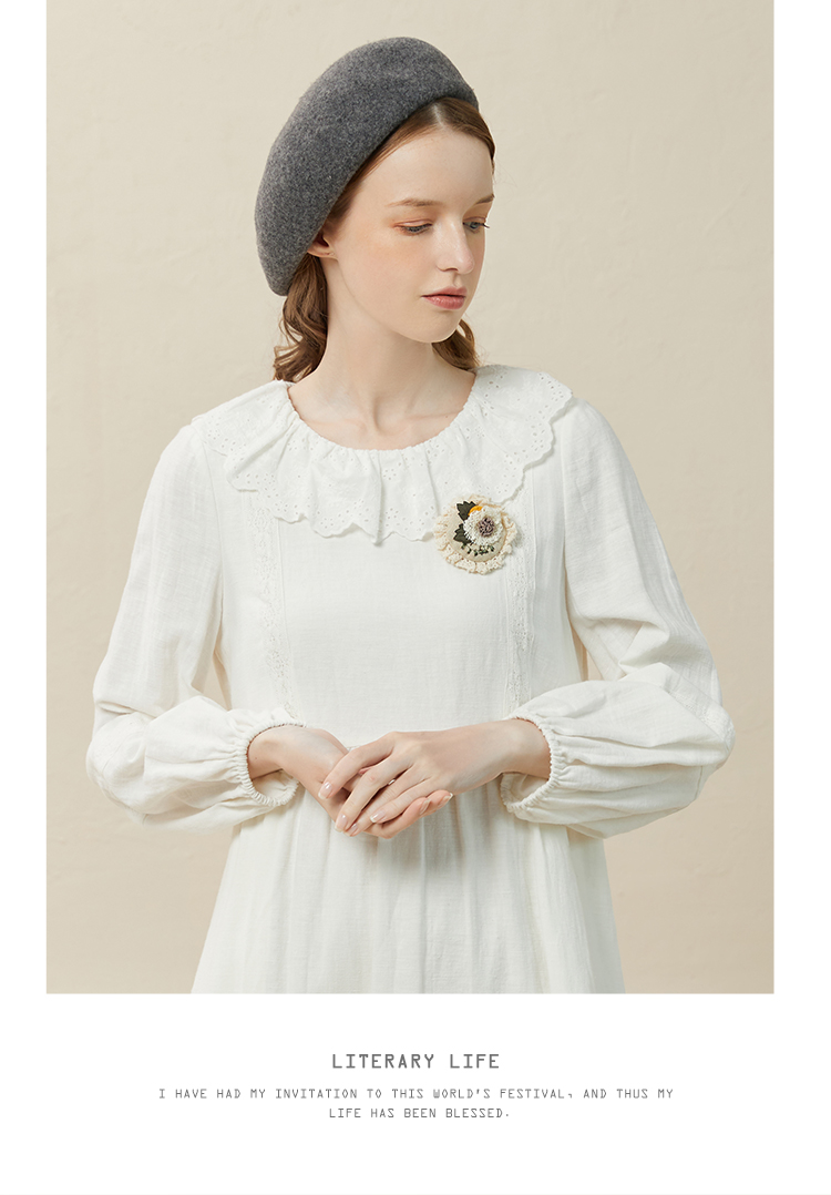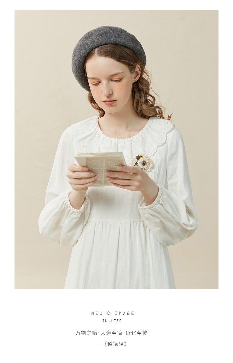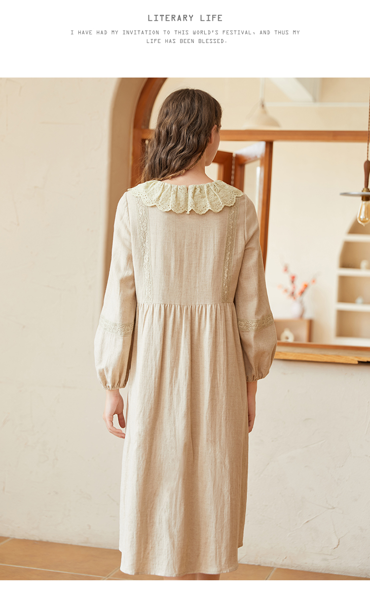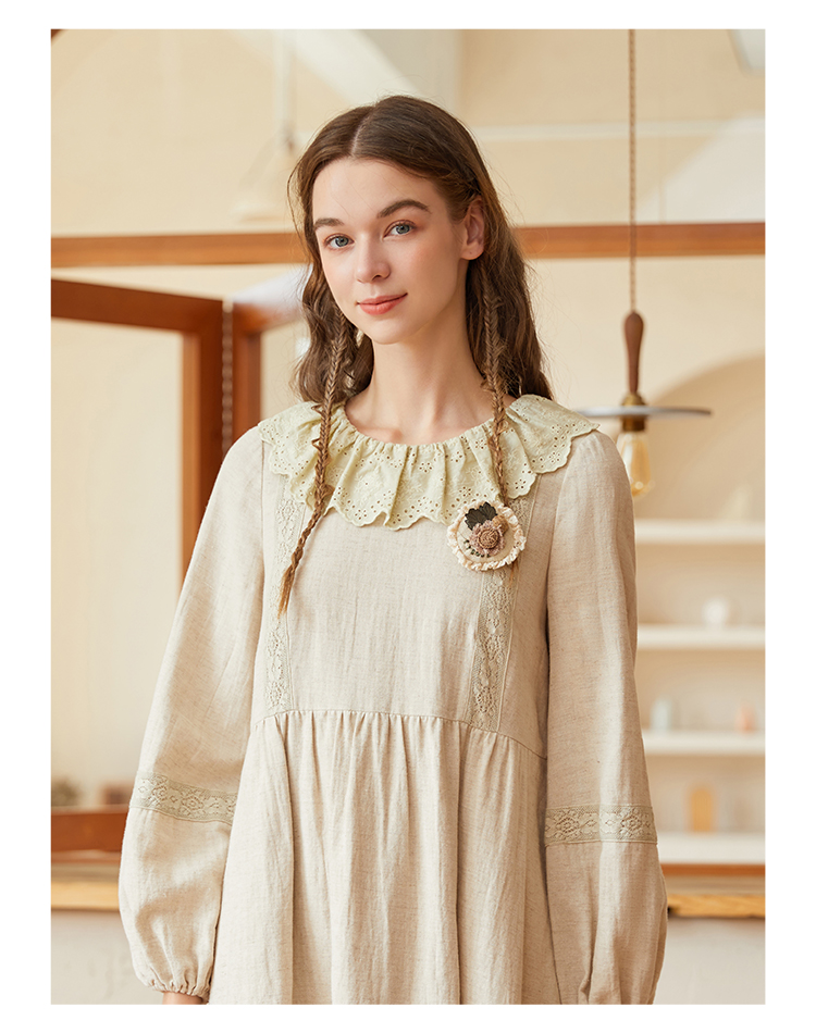Famecoco范可儿棉麻娃娃领连衣裙泡泡袖宽松裙子遮肚子F228FA011