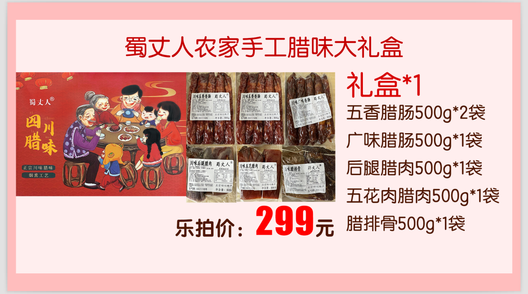五香腊肠500g*2、广味腊肠500g、后腿腊肉500g、五花肉腊肉500g、腊排骨500g、礼盒、