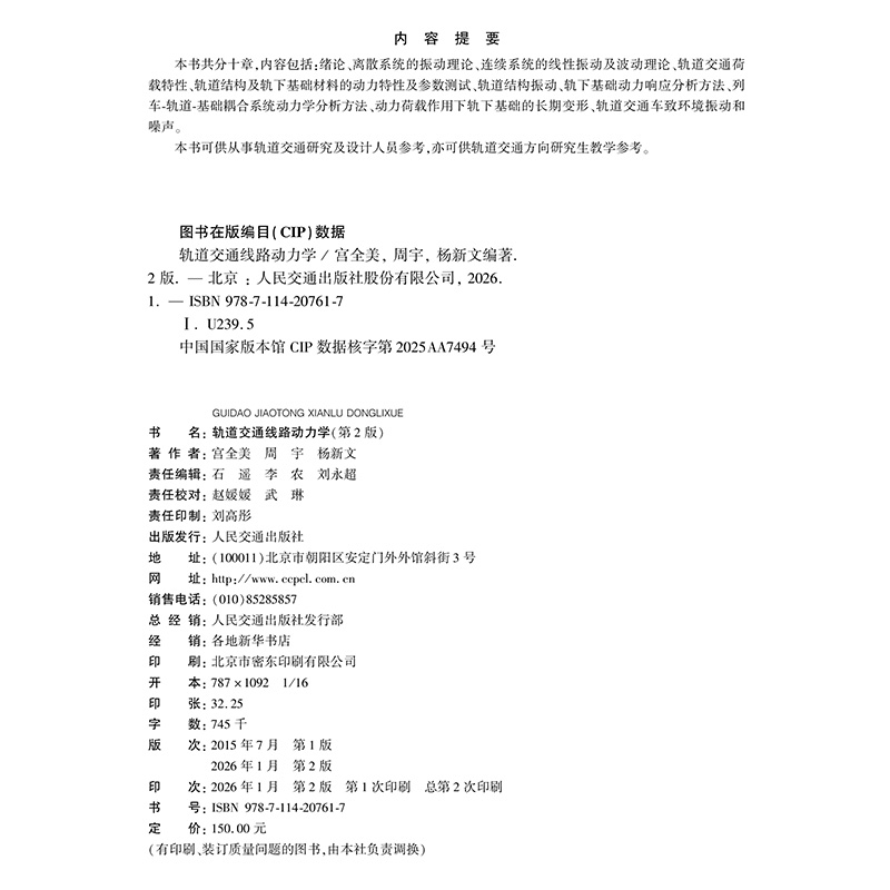 书名:轨道交通线路动力学(第2版)