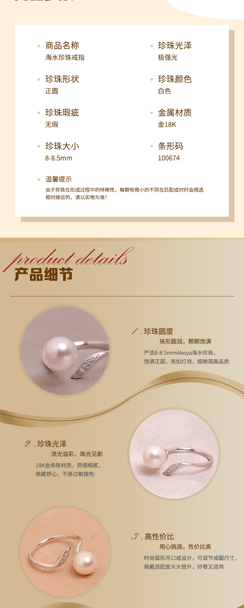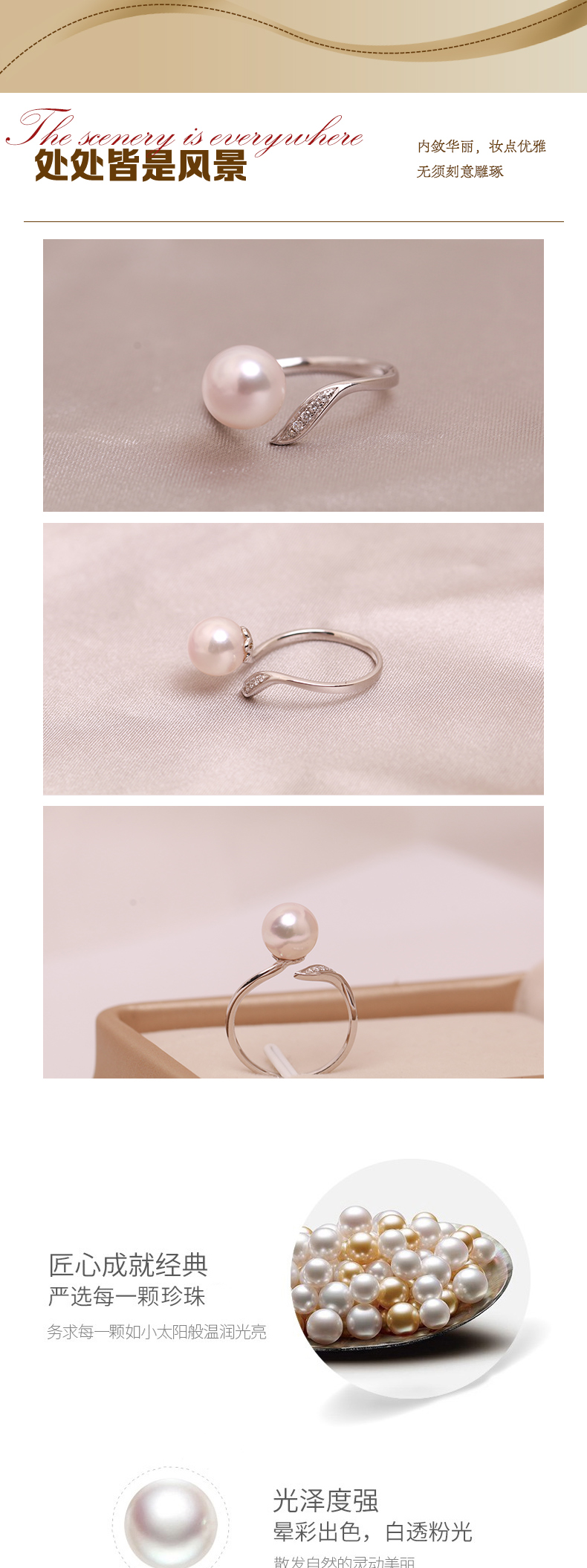 美裕 金18K海水珍珠戒指 8-8.5mm 开口戒100674