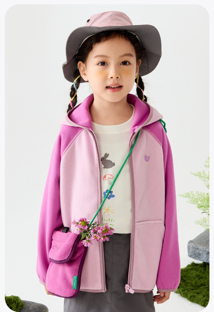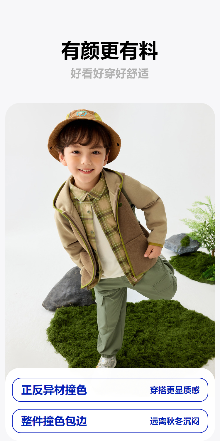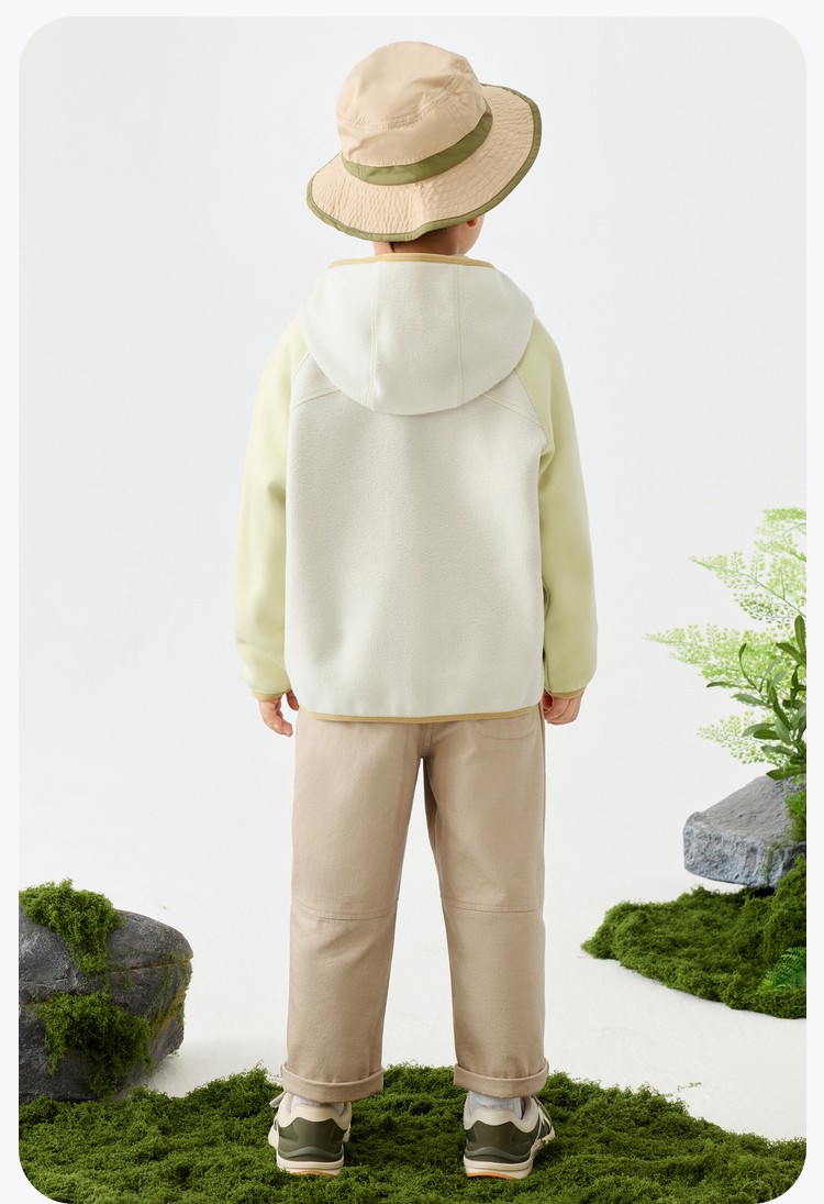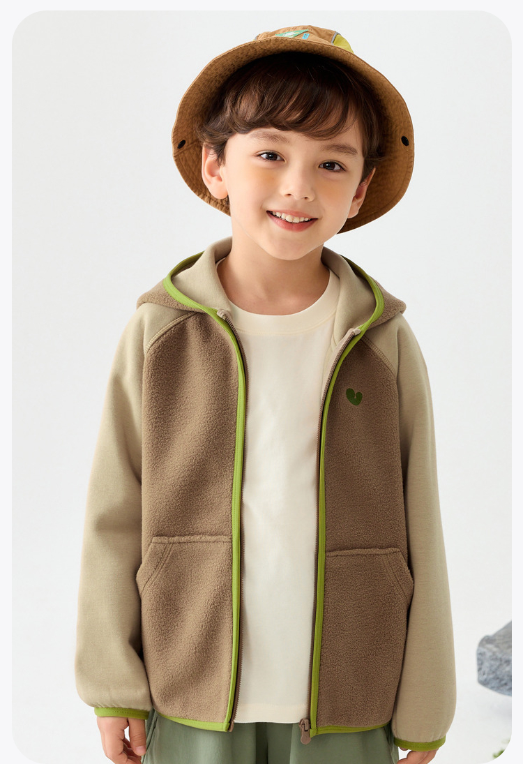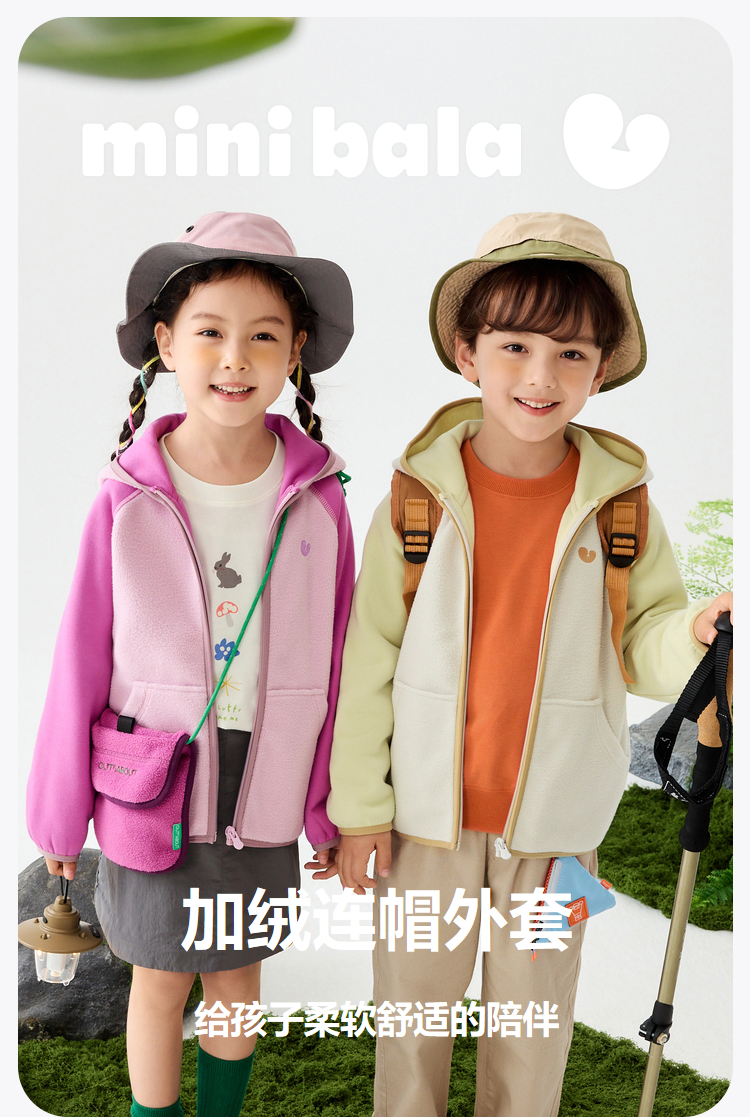 迷你巴拉男童女童加绒连帽外套春季新款宝宝撞色时尚保暖上衣