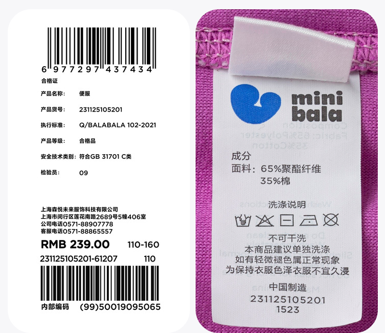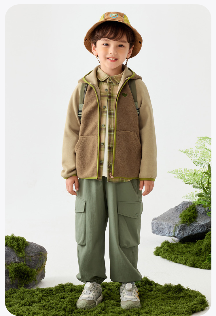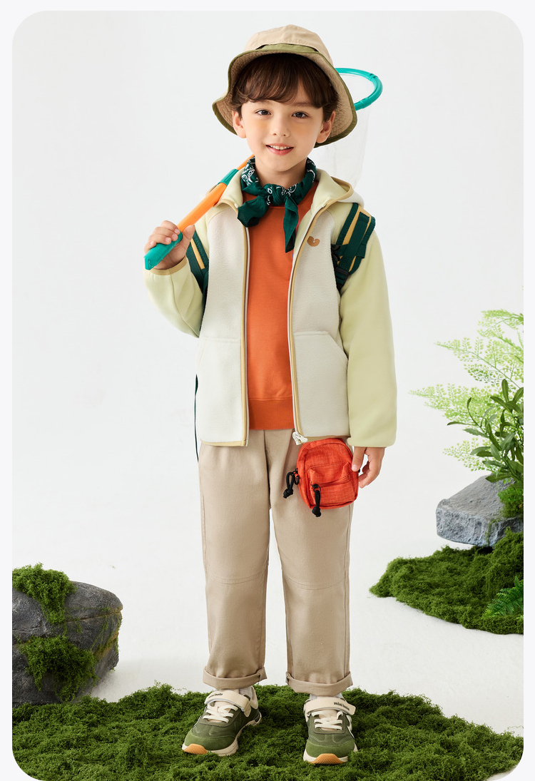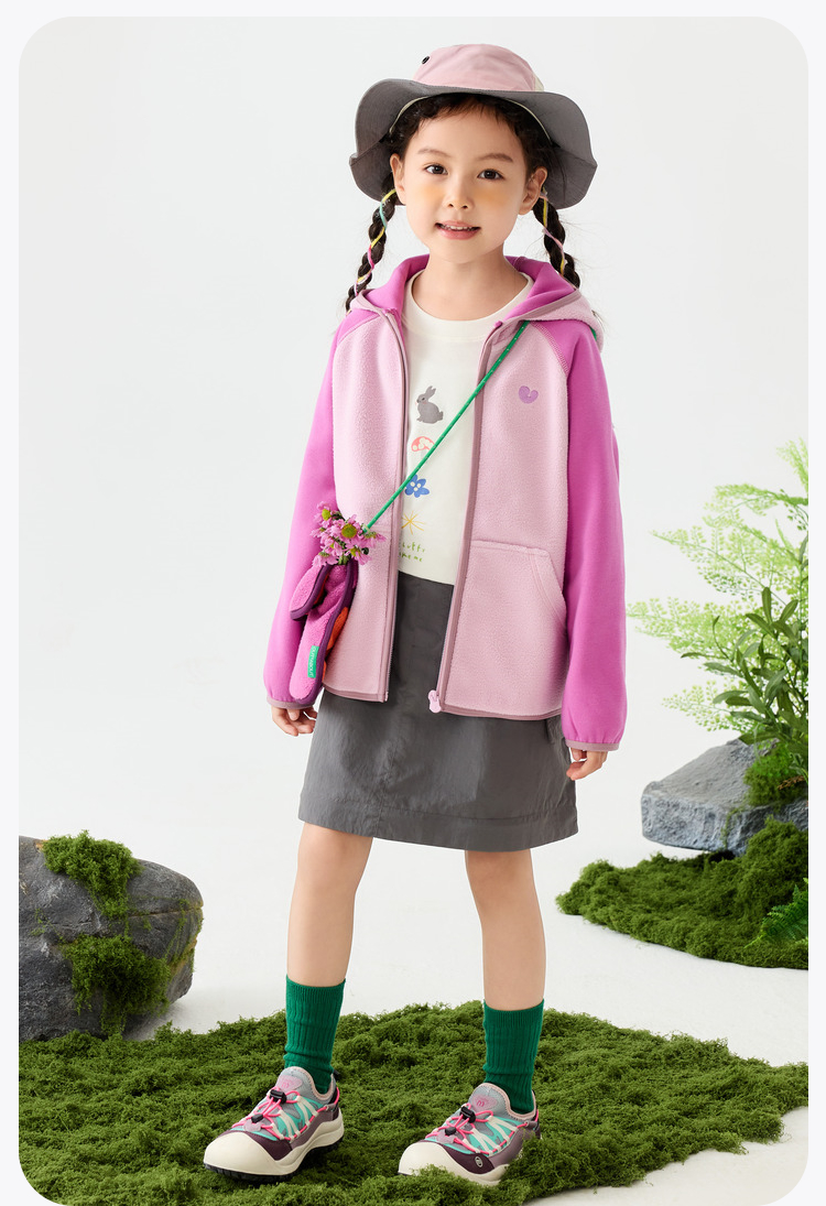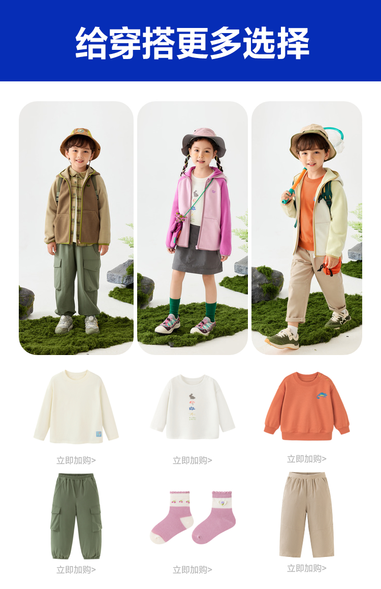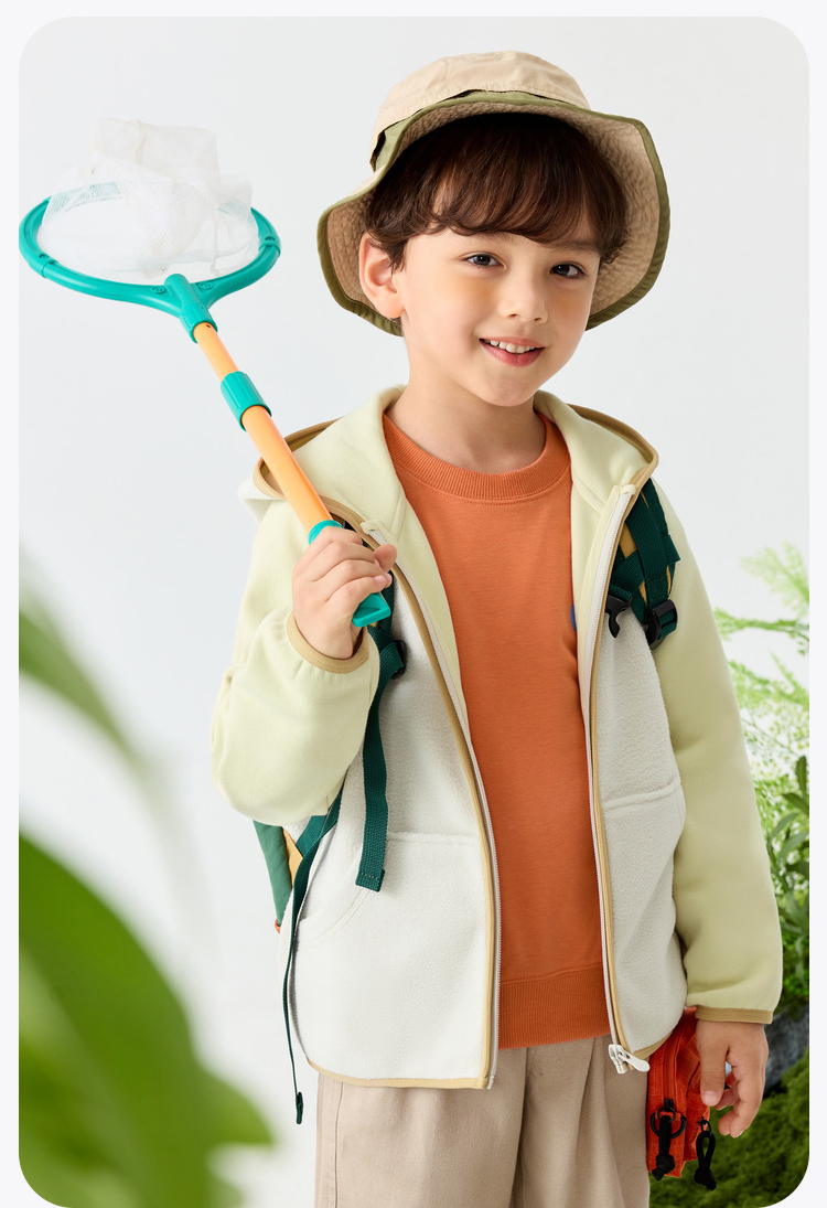 迷你巴拉男童女童加绒连帽外套春季新款宝宝撞色时尚保暖上衣