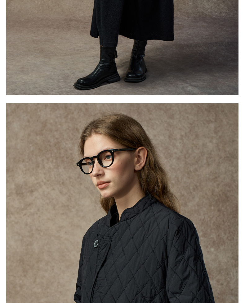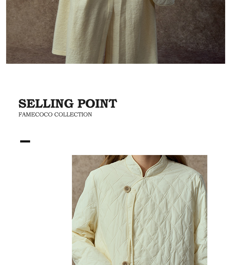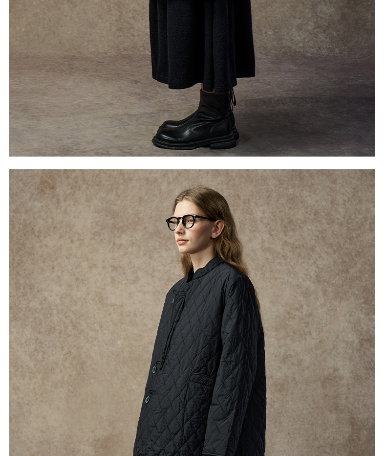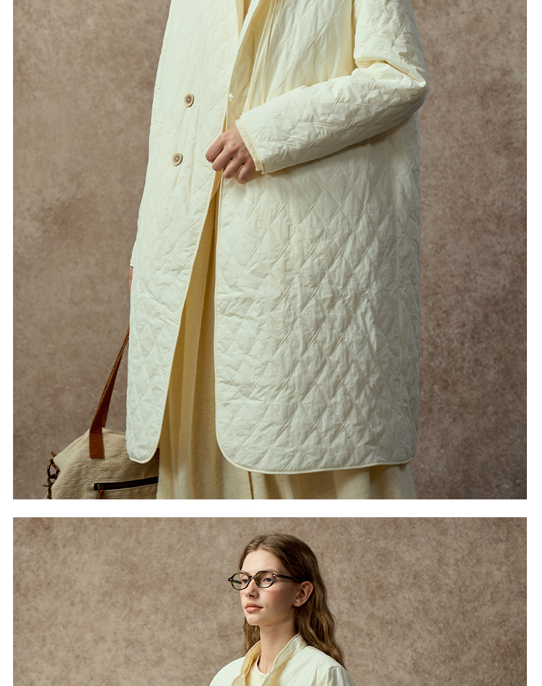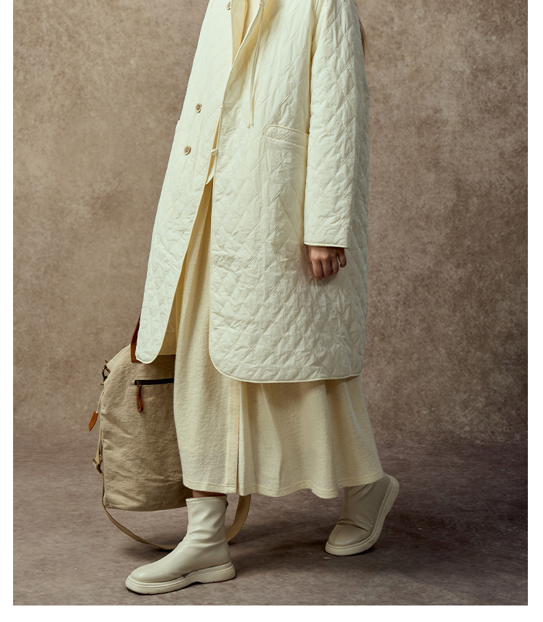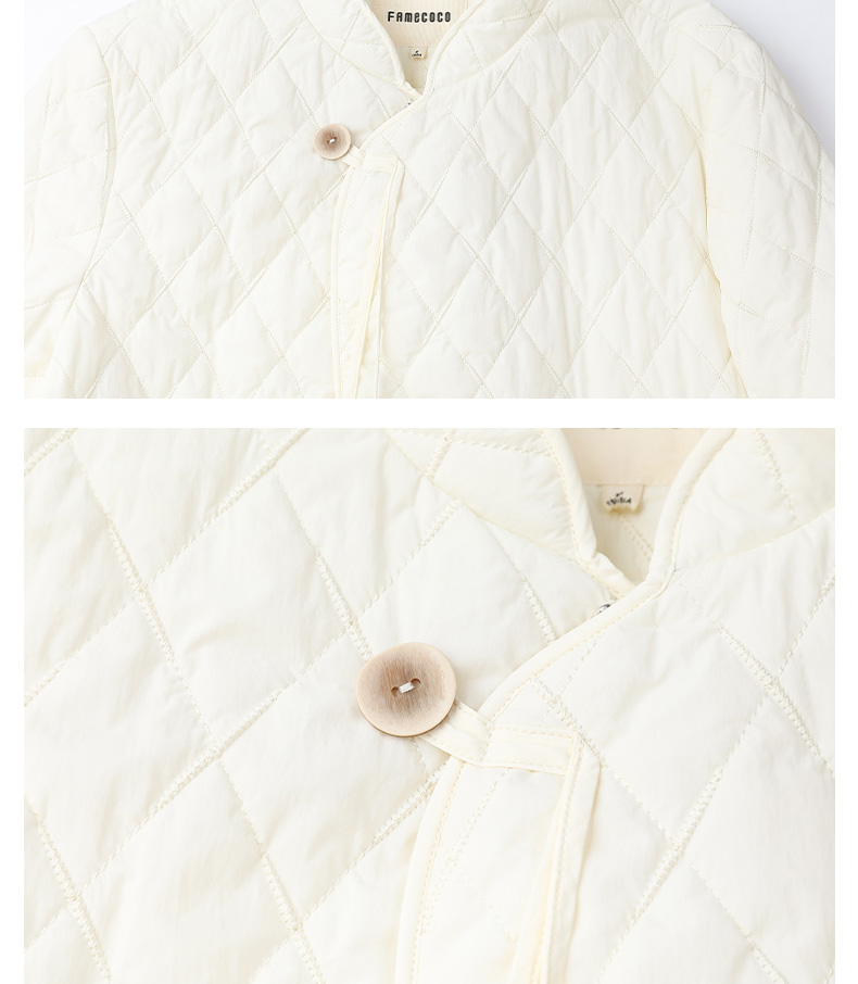 Famecoco范可儿小立领中式改良长款菱格纹轻薄棉服FAC8AE001