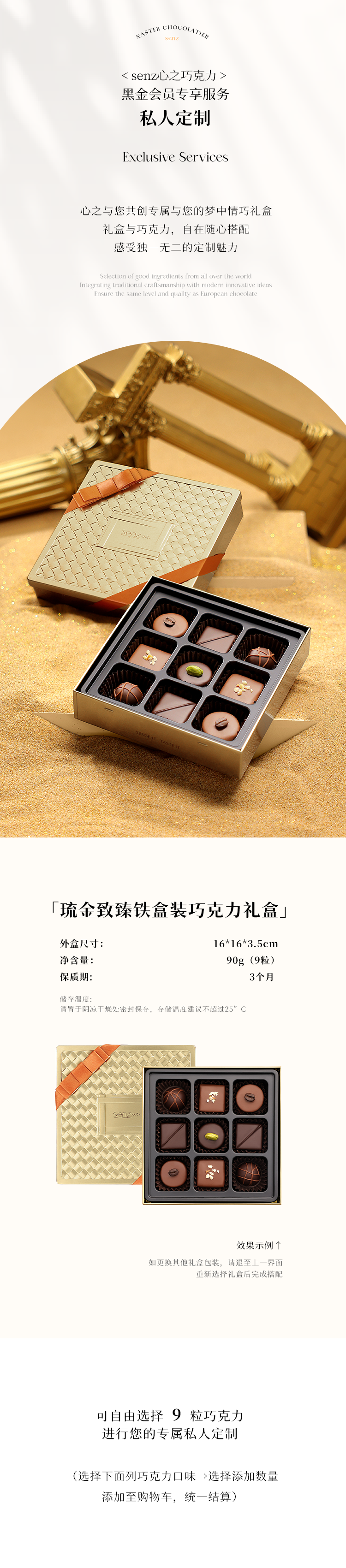 心之SENZ【玫瑰金黑巧礼盒】4种口味25粒
