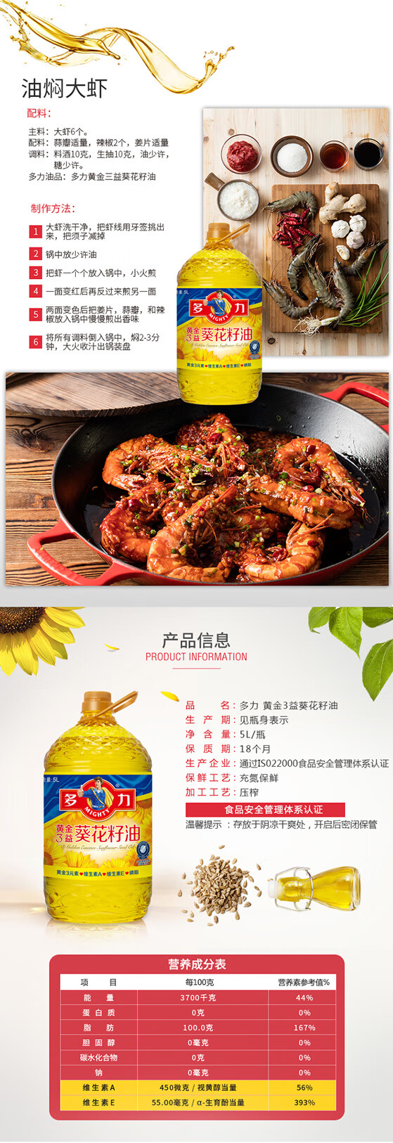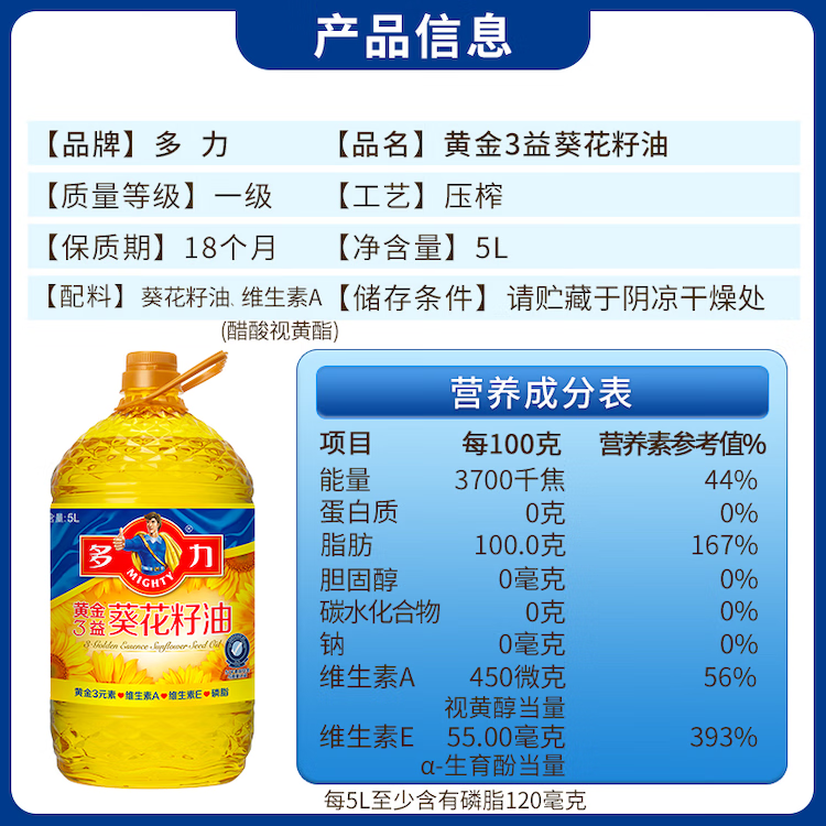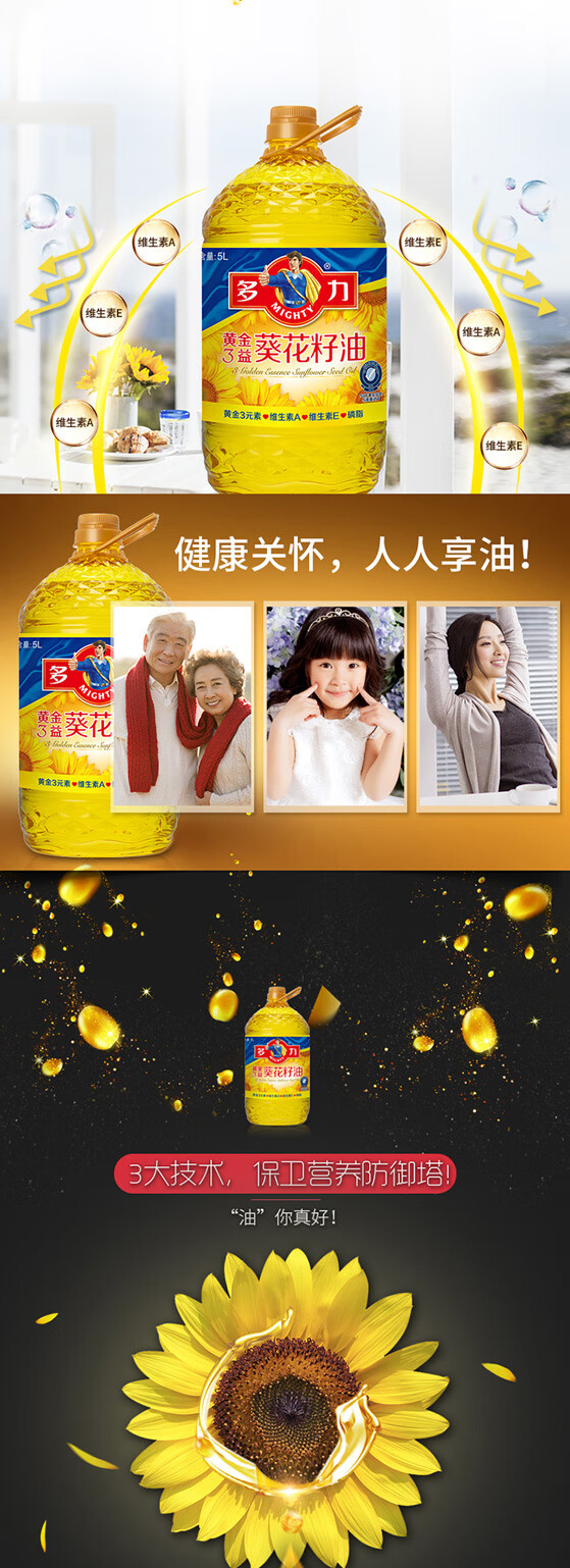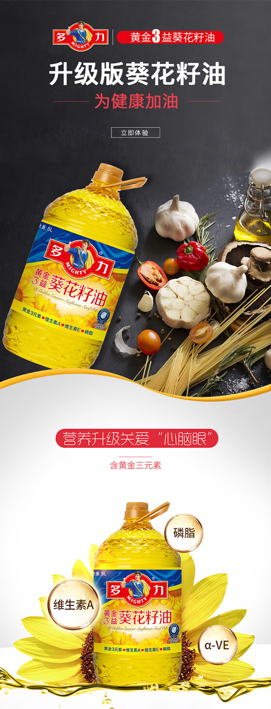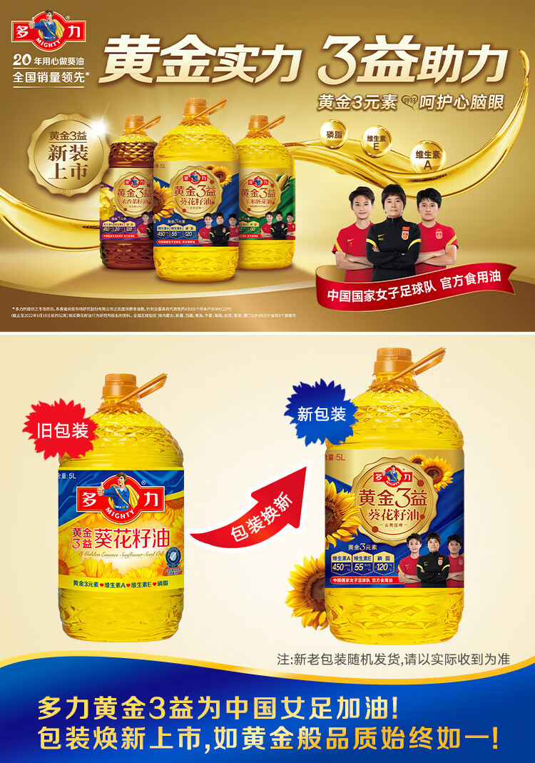 多力黄金3益葵花籽油5L