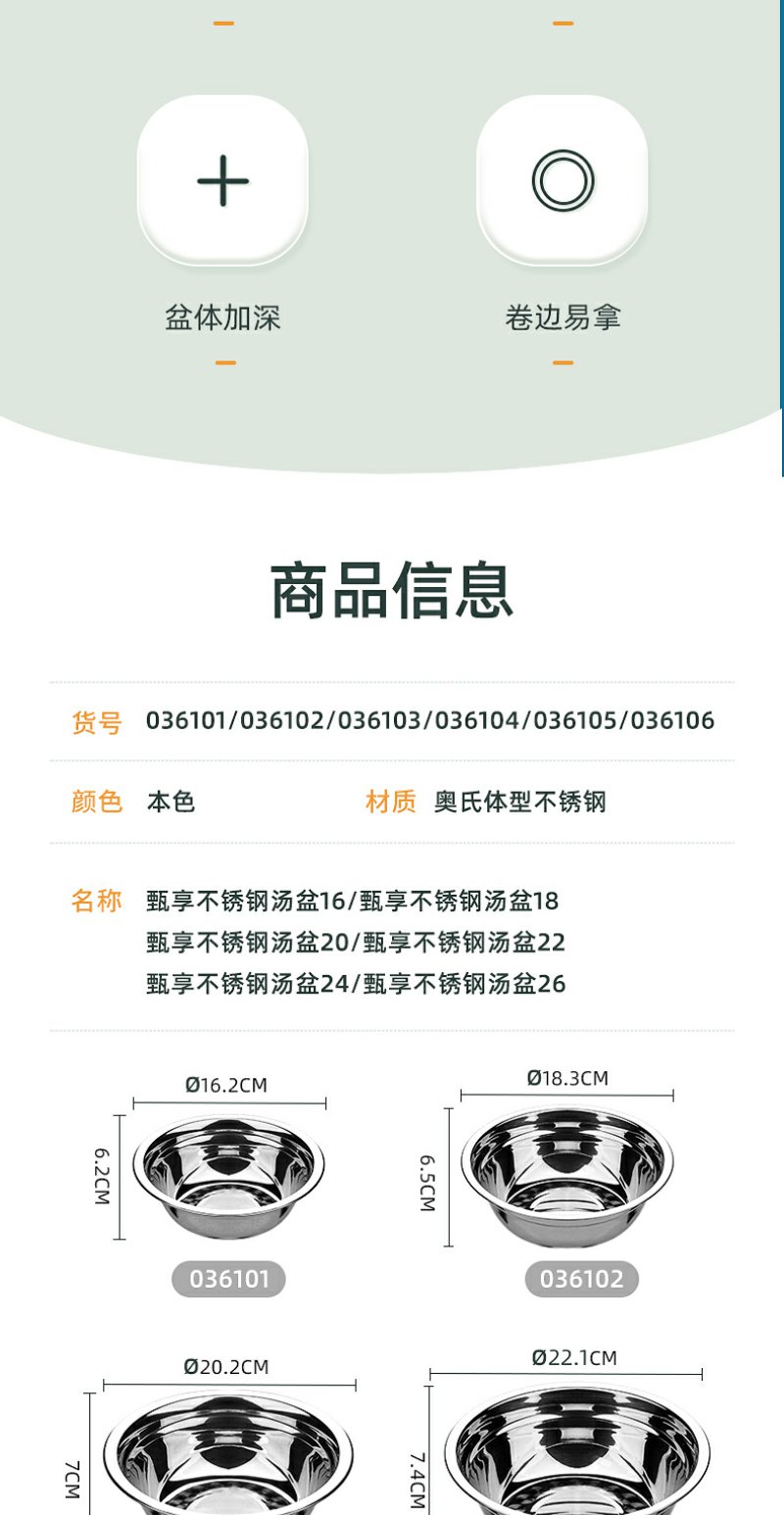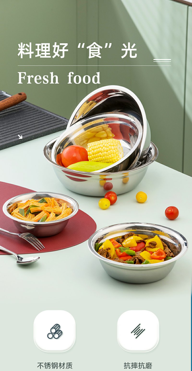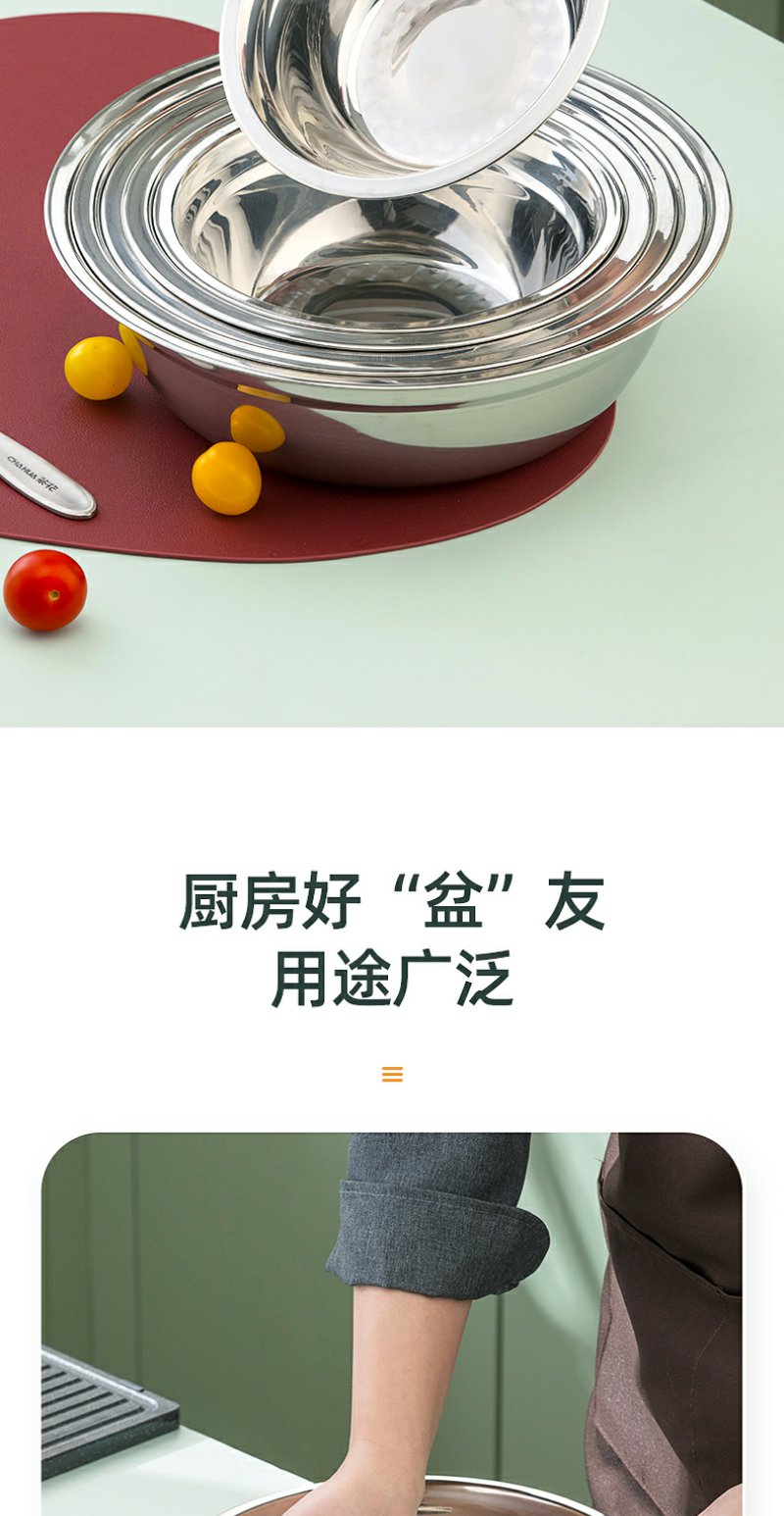 【茶花】不锈钢多用汤盆洗菜盆揉面盆
