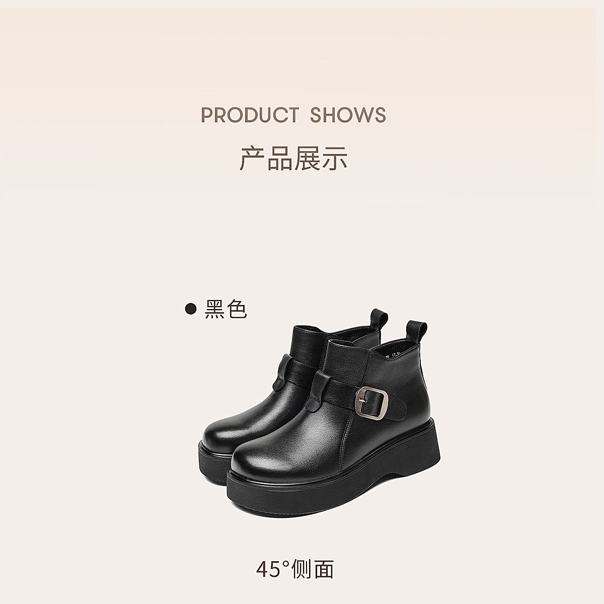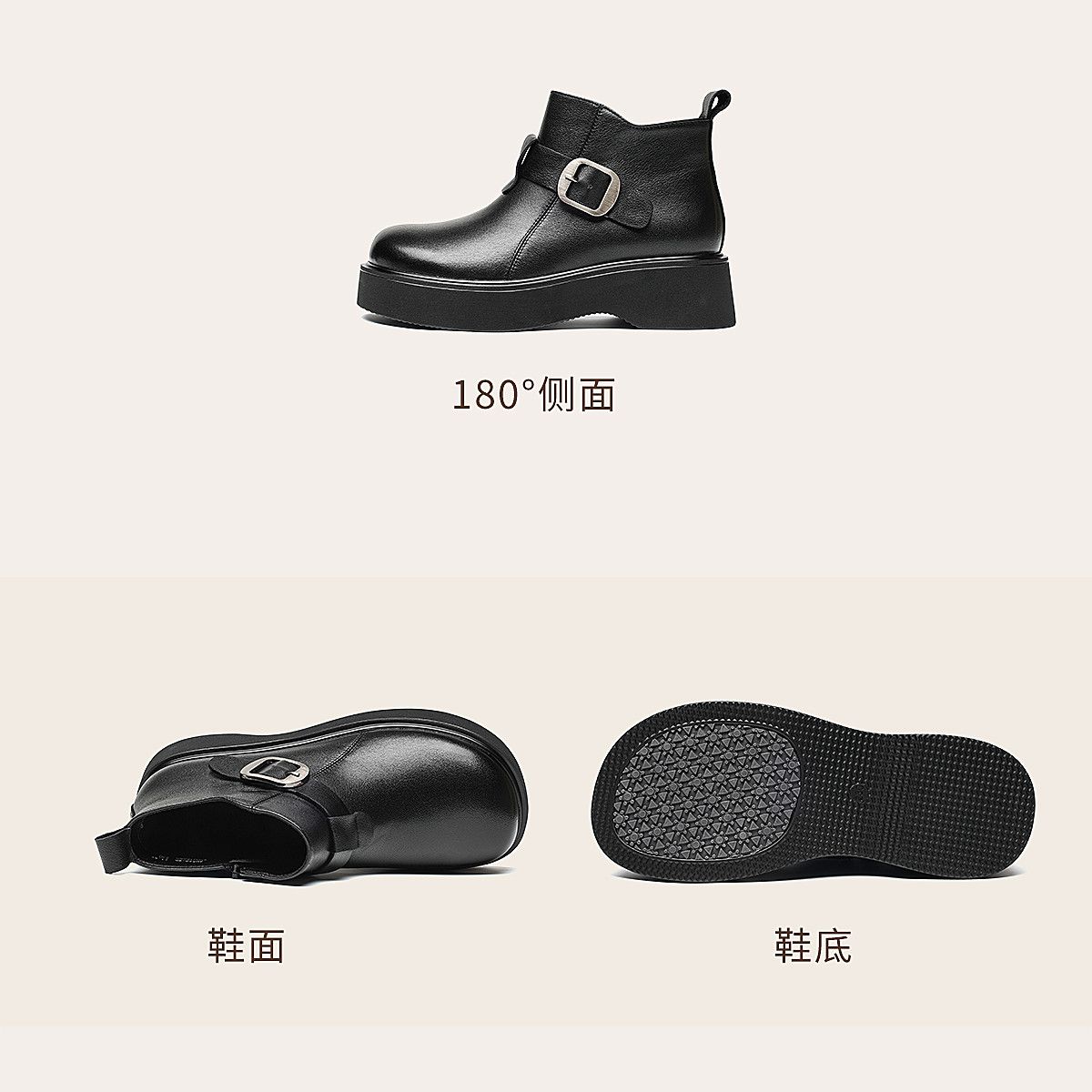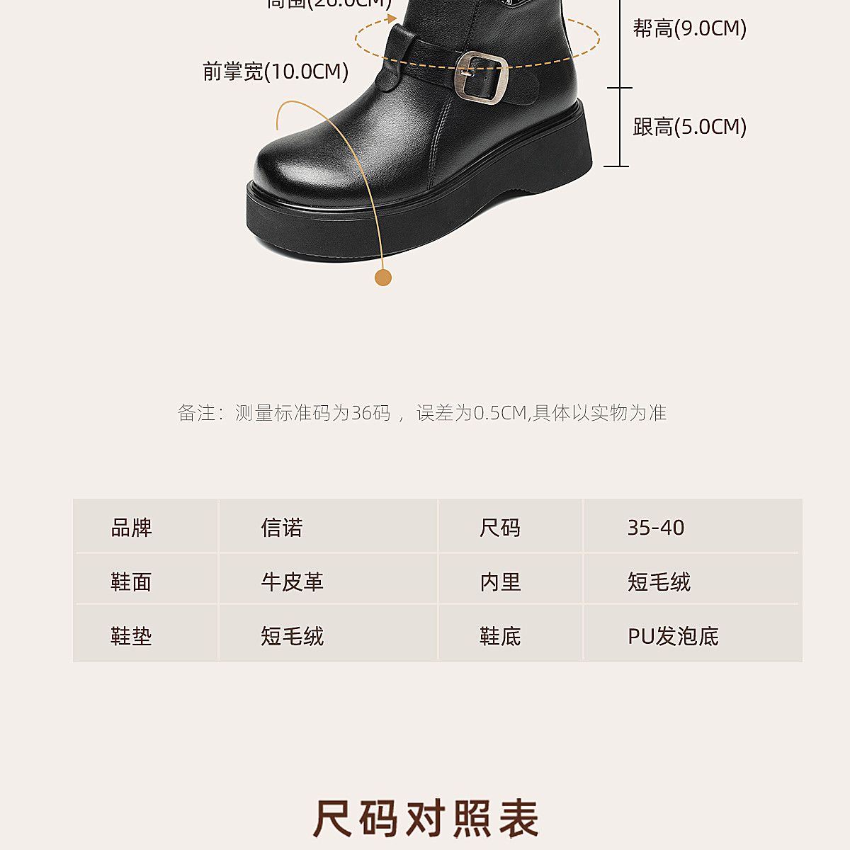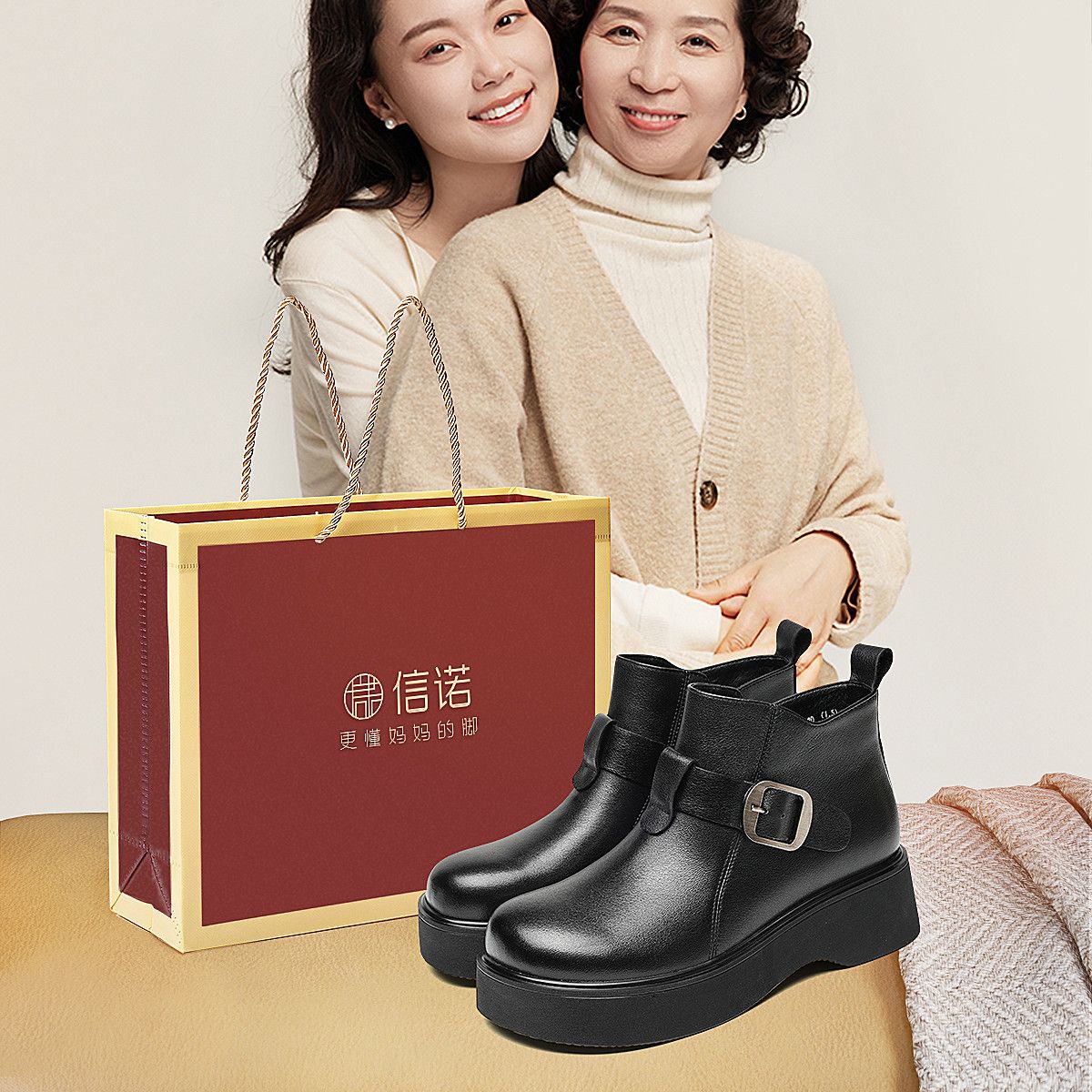 信诺妈妈棉鞋真皮厚底切尔西靴女2025冬季新款英伦风短靴加绒保暖5M590-2D