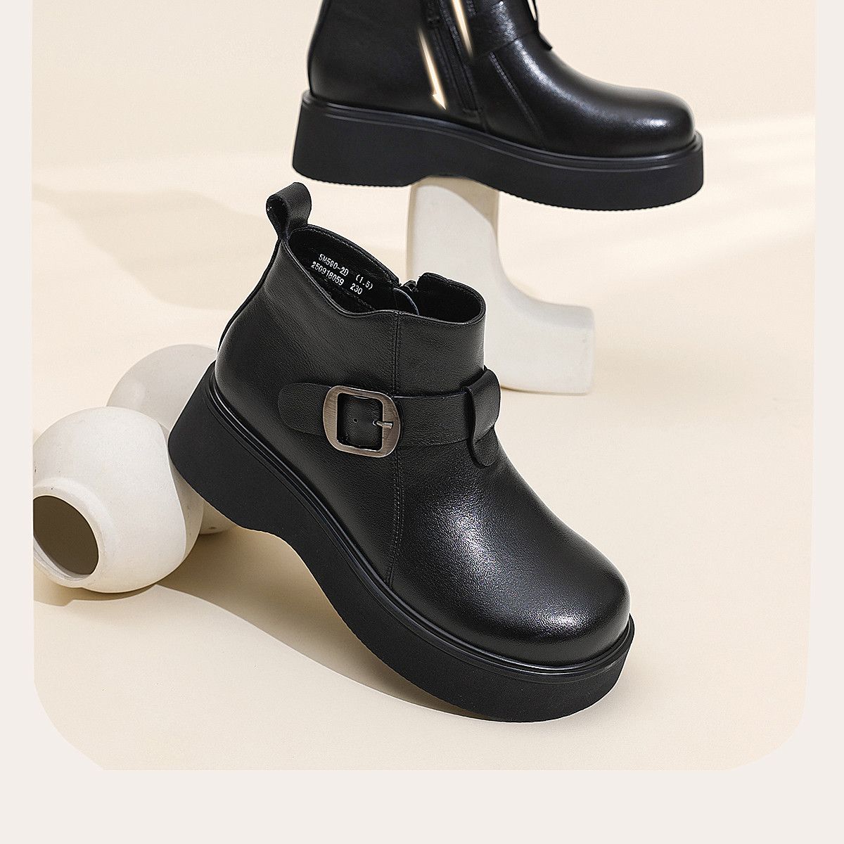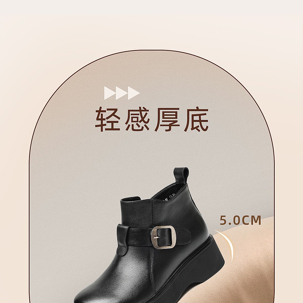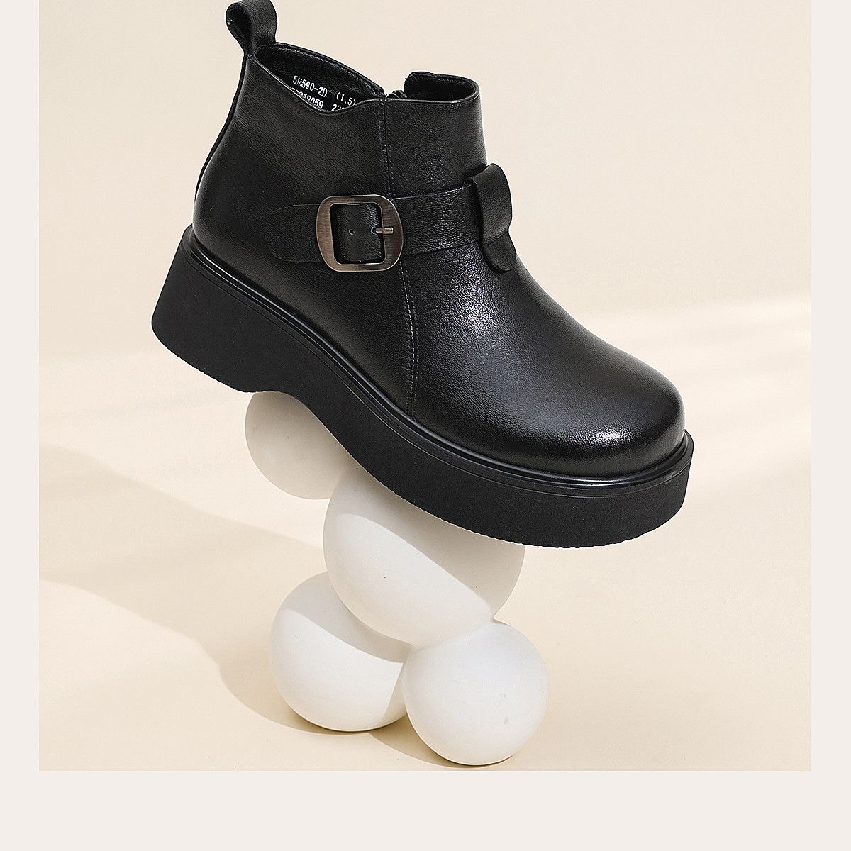 信诺妈妈棉鞋真皮厚底切尔西靴女2025冬季新款英伦风短靴加绒保暖5M590-2D