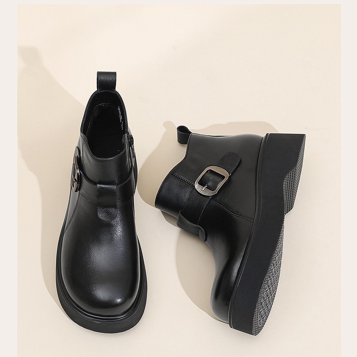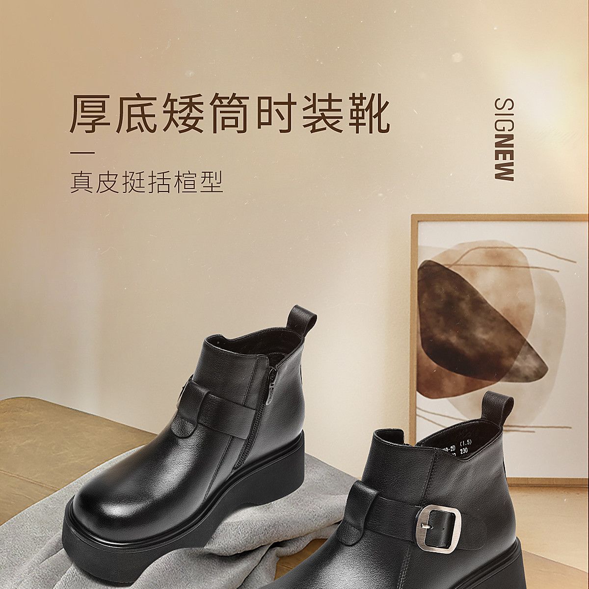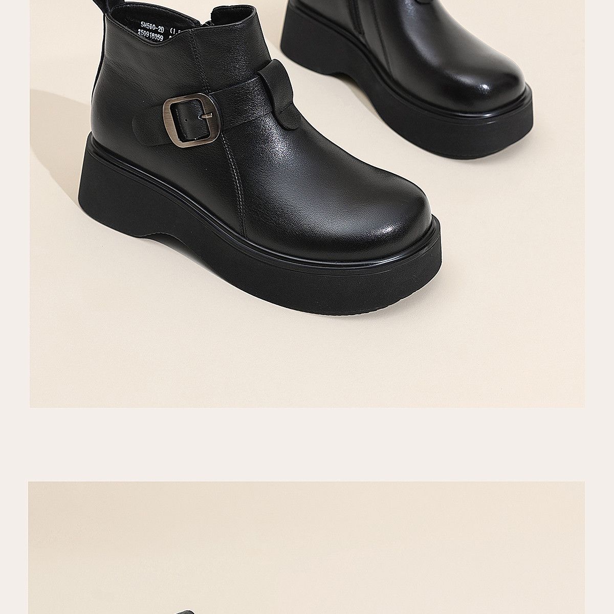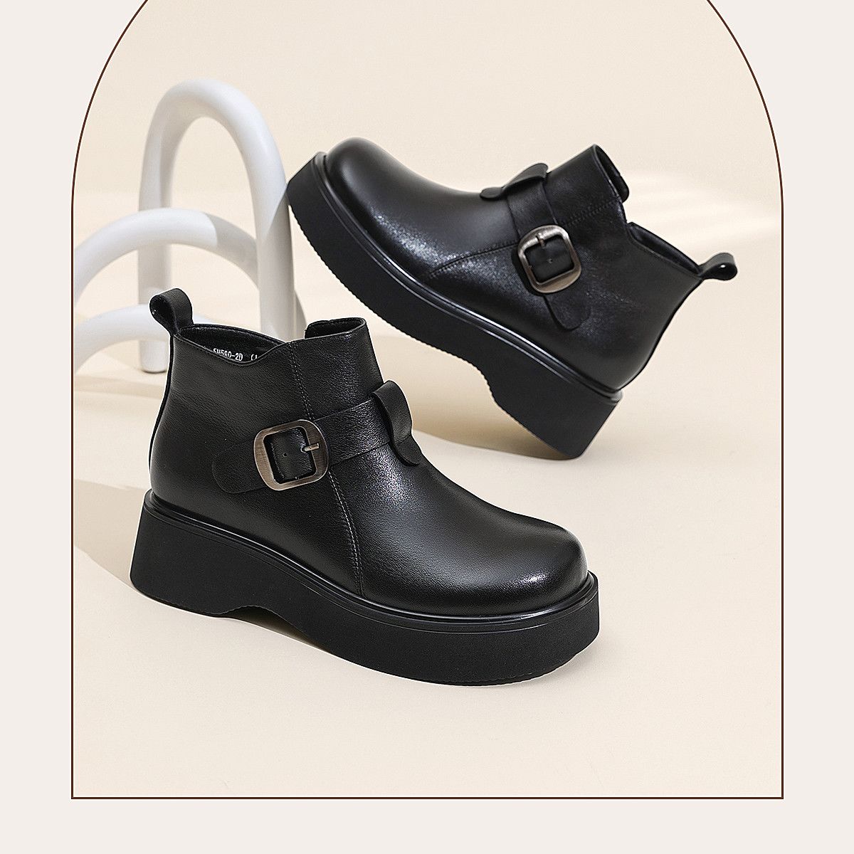 信诺妈妈棉鞋真皮厚底切尔西靴女2025冬季新款英伦风短靴加绒保暖5M590-2D