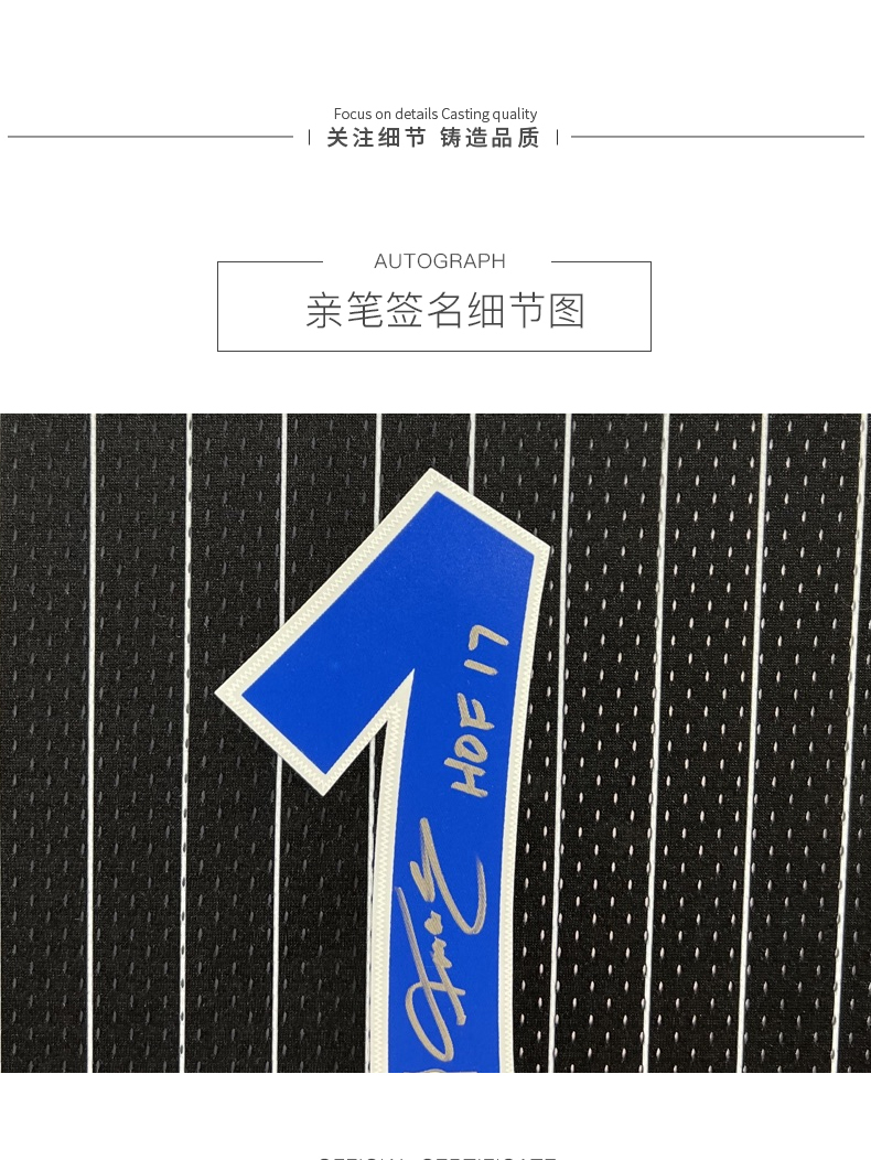 收藏系列 麦迪 魔术队1号黑色加签款 亲笔签名球衣