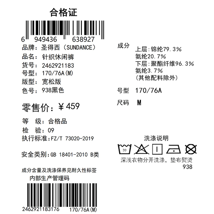 【高弹加绒】圣得西裤子男款秋冬运动裤男款直筒休闲裤