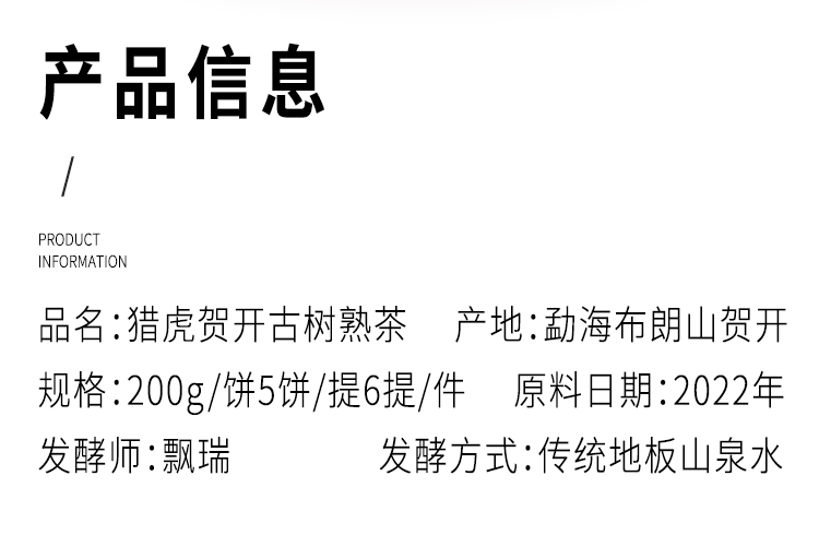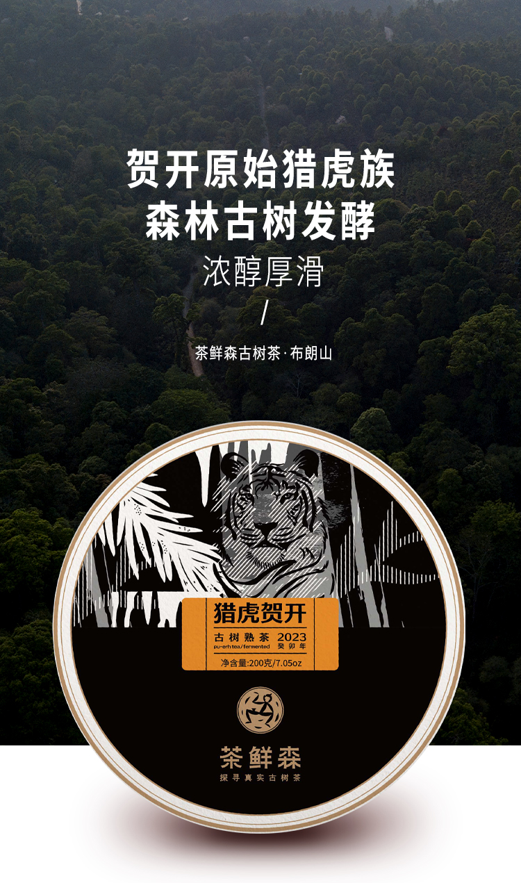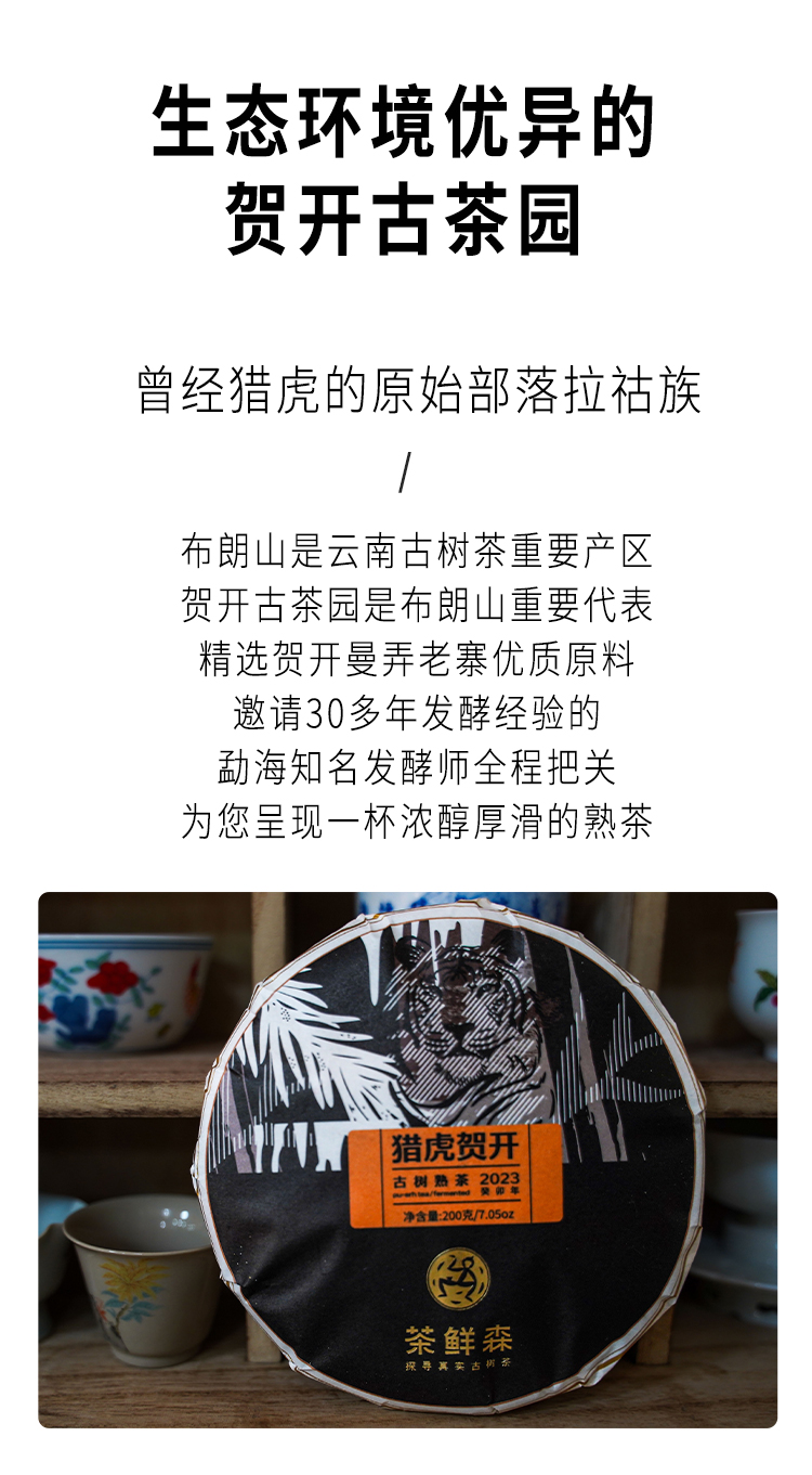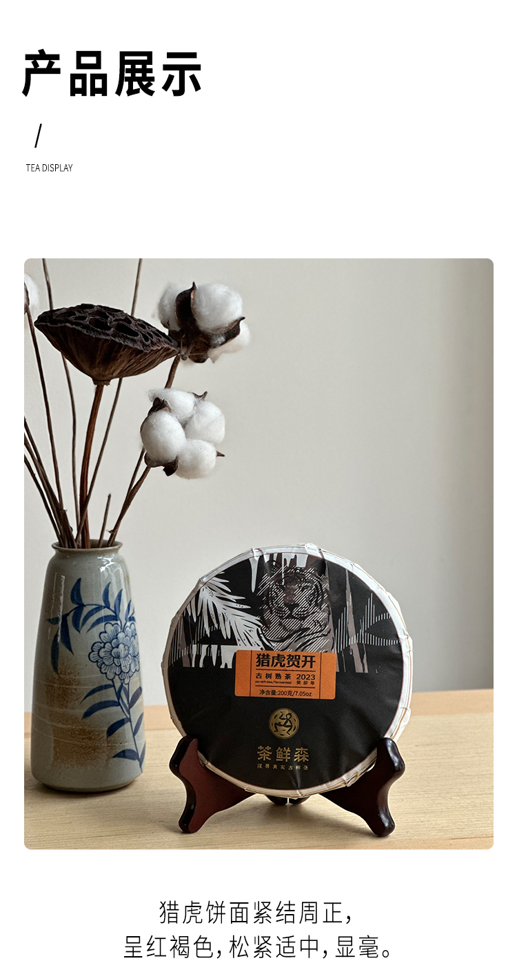 2023年 猎虎贺开 布朗山古树熟茶 普洱茶 熟茶 200g/饼