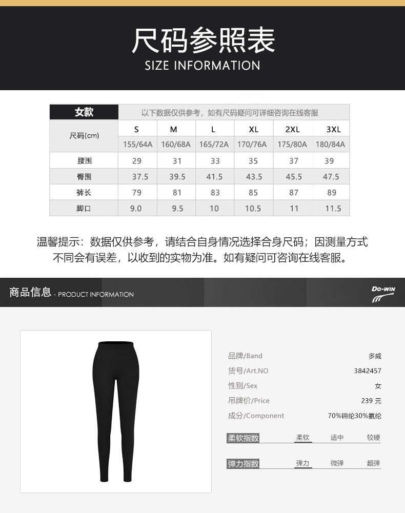 多威运动裤女健身高弹压缩跑步紧身裤3842457