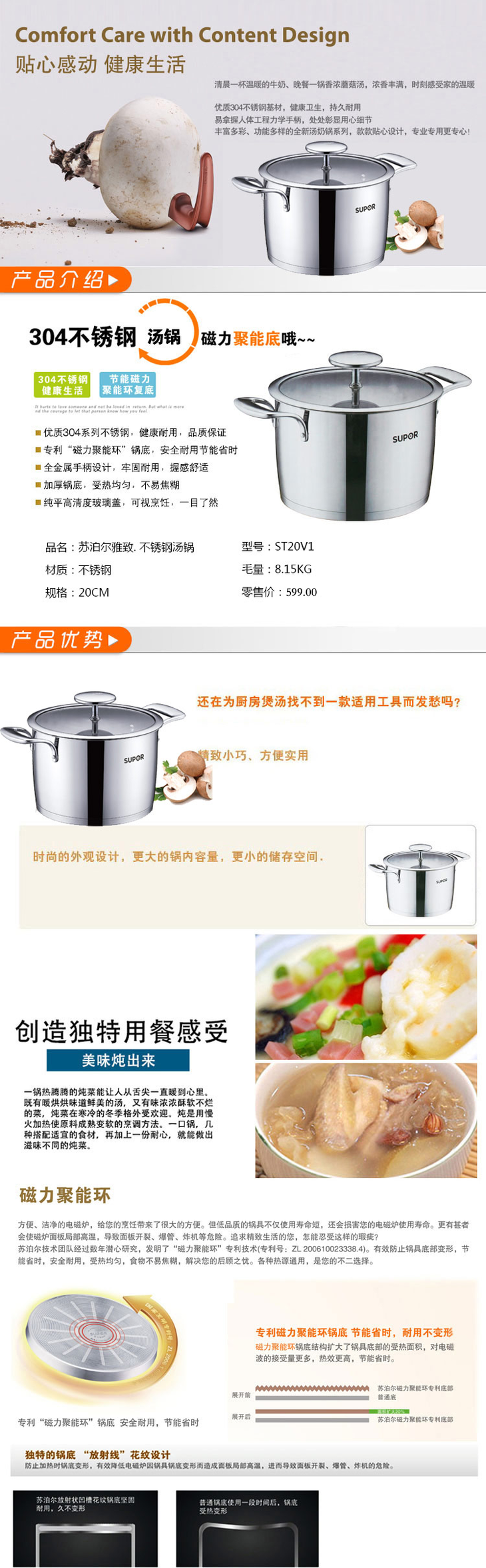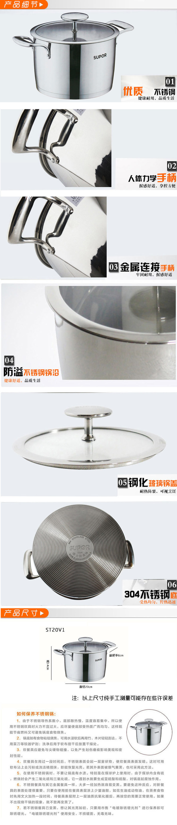 苏泊尔 SUPOR 雅致不锈钢汤锅 不锈钢 金属连接 ST20V1 20cm