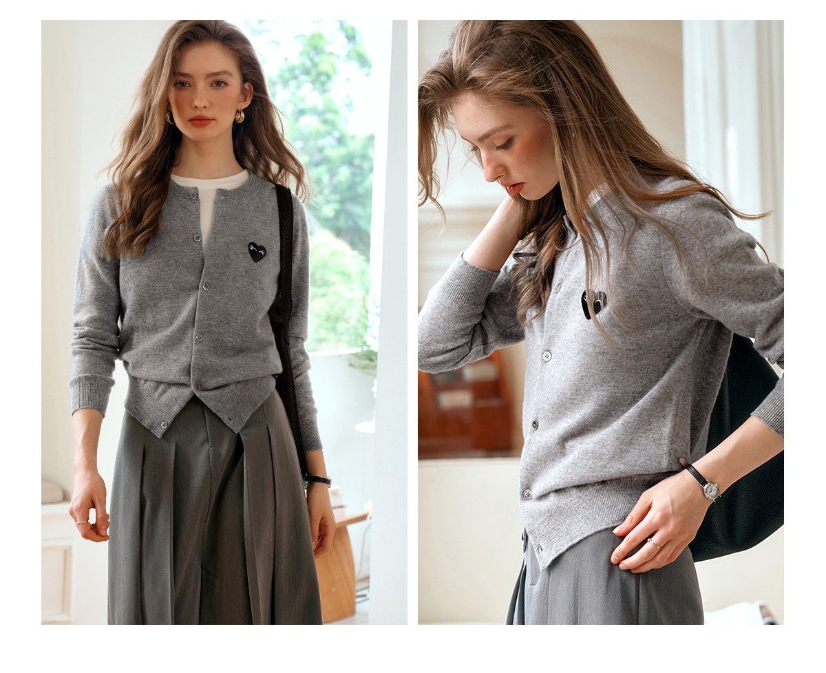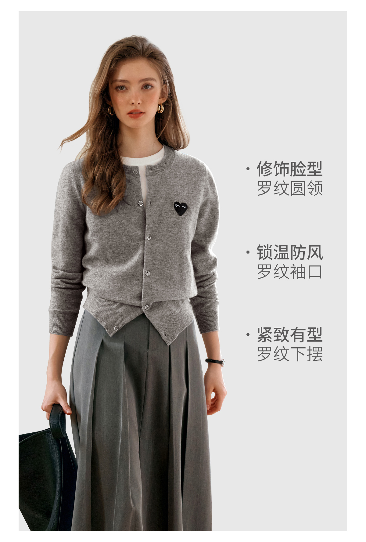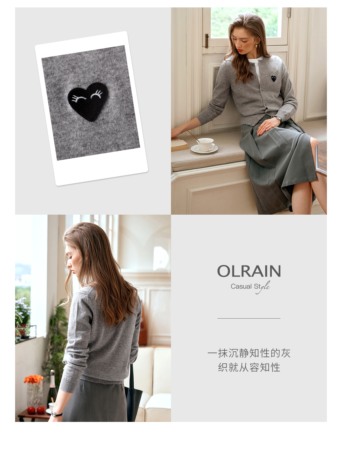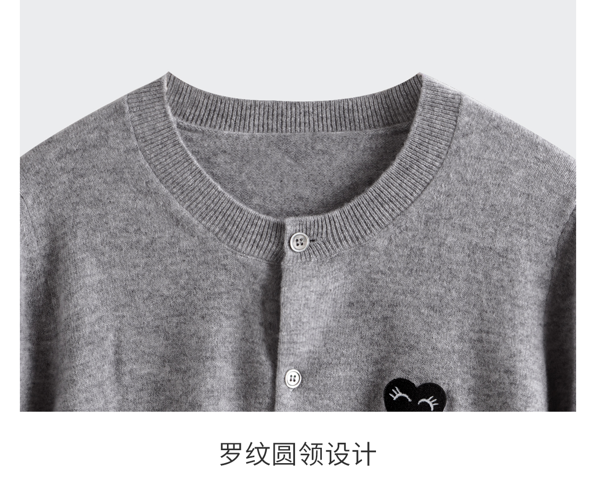 欧芮儿法式灰色针织开衫女小外套秋季2025年新款爱心章仔气质上衣