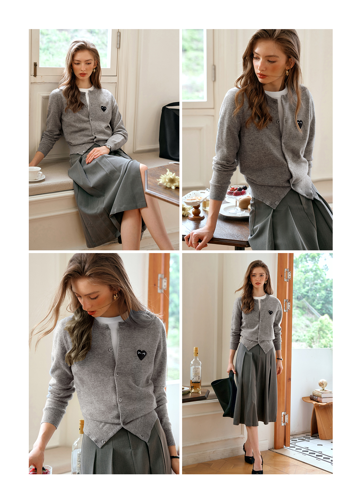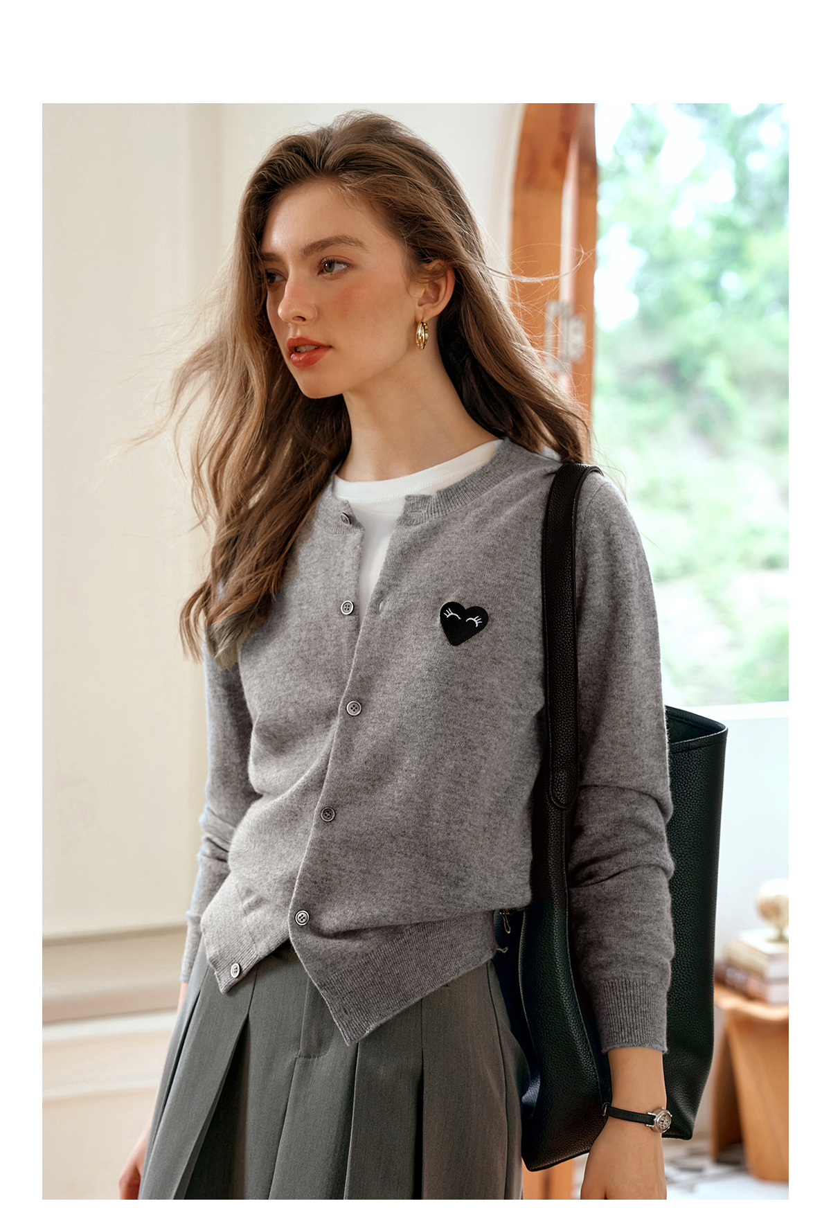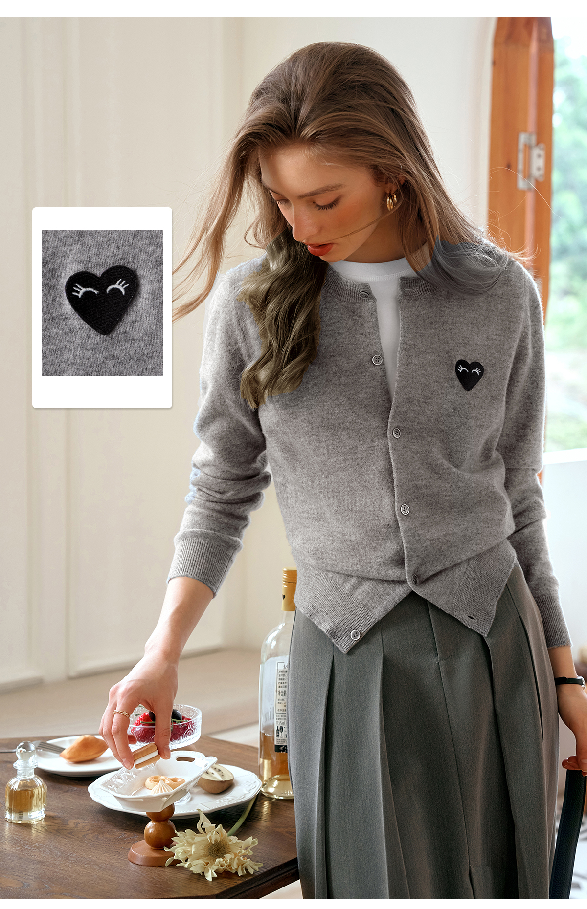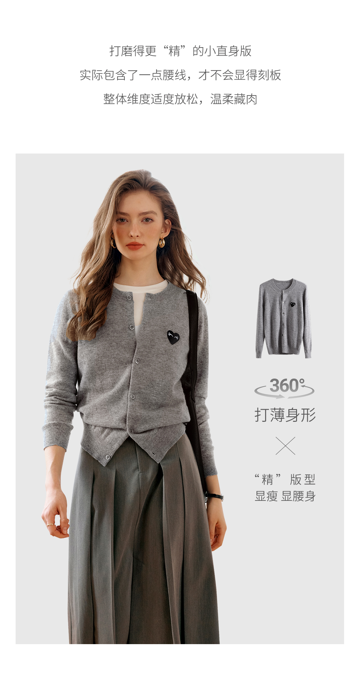 欧芮儿法式灰色针织开衫女小外套秋季2025年新款爱心章仔气质上衣
