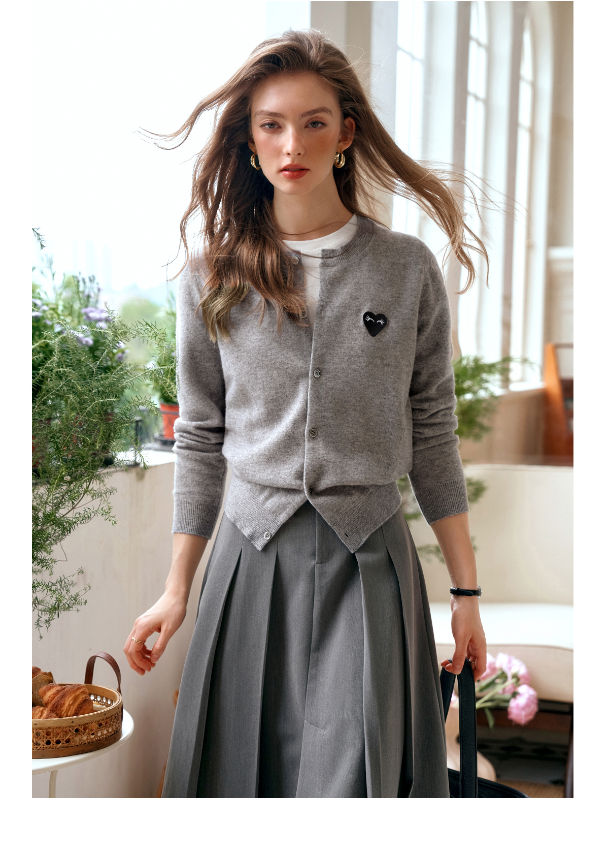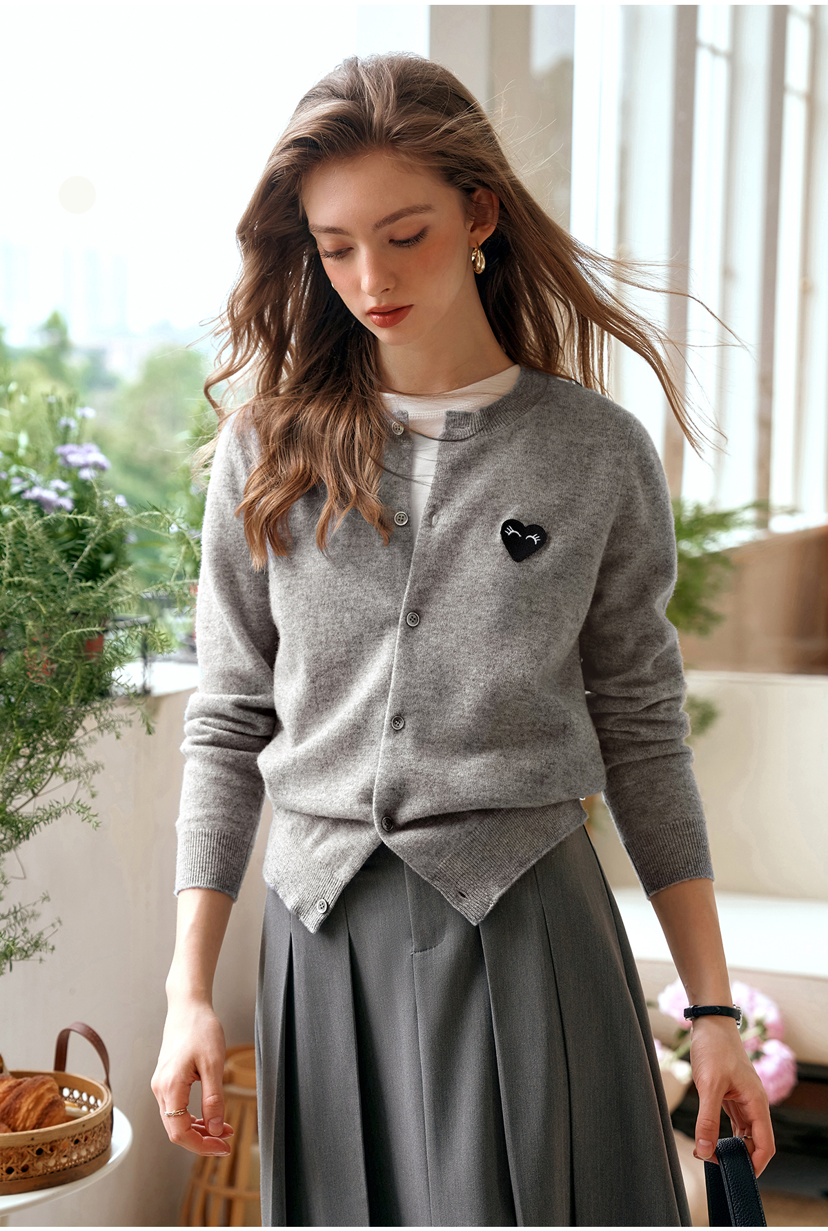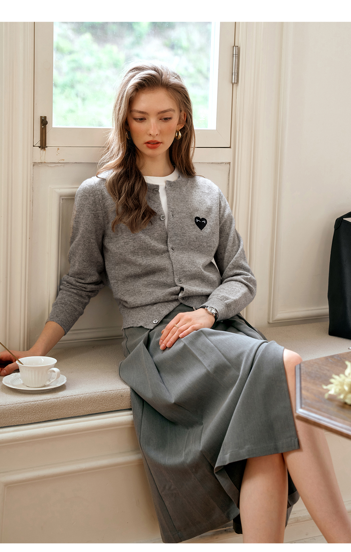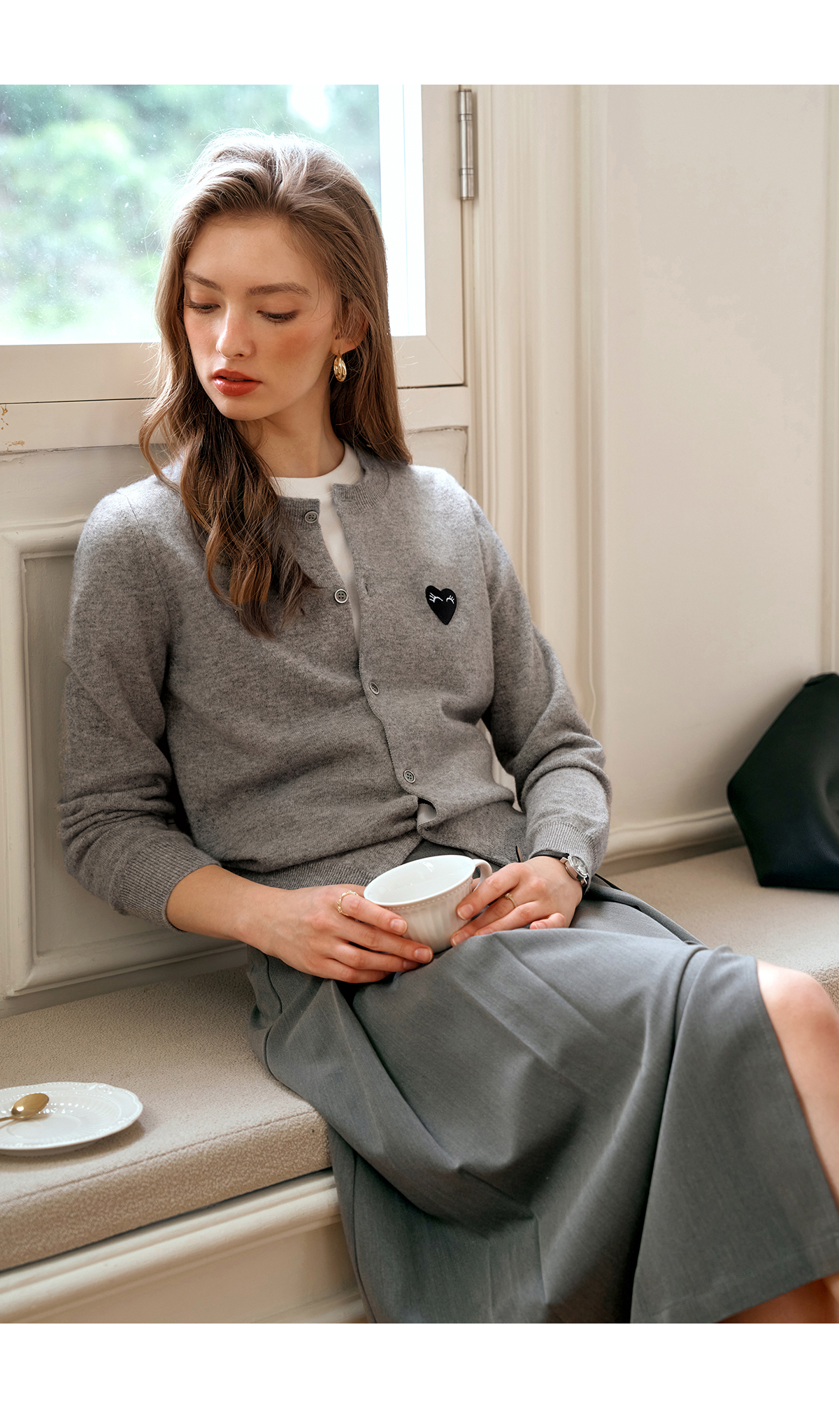欧芮儿法式灰色针织开衫女小外套秋季2025年新款爱心章仔气质上衣