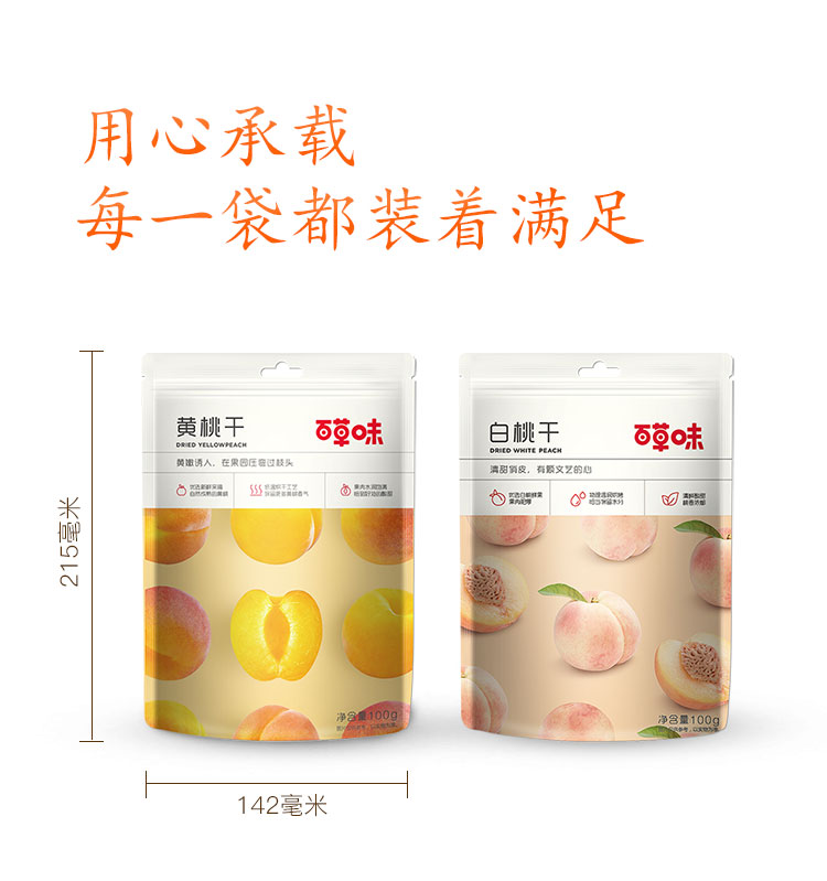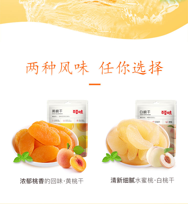 百草味 果脯蜜饯水果干零食休闲食品办公室小吃 黄桃干100g/袋