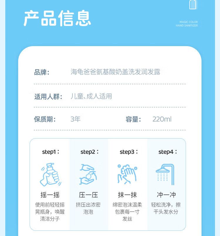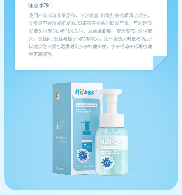 海龟爸爸氨基酸奶盖洗发润发露220ml