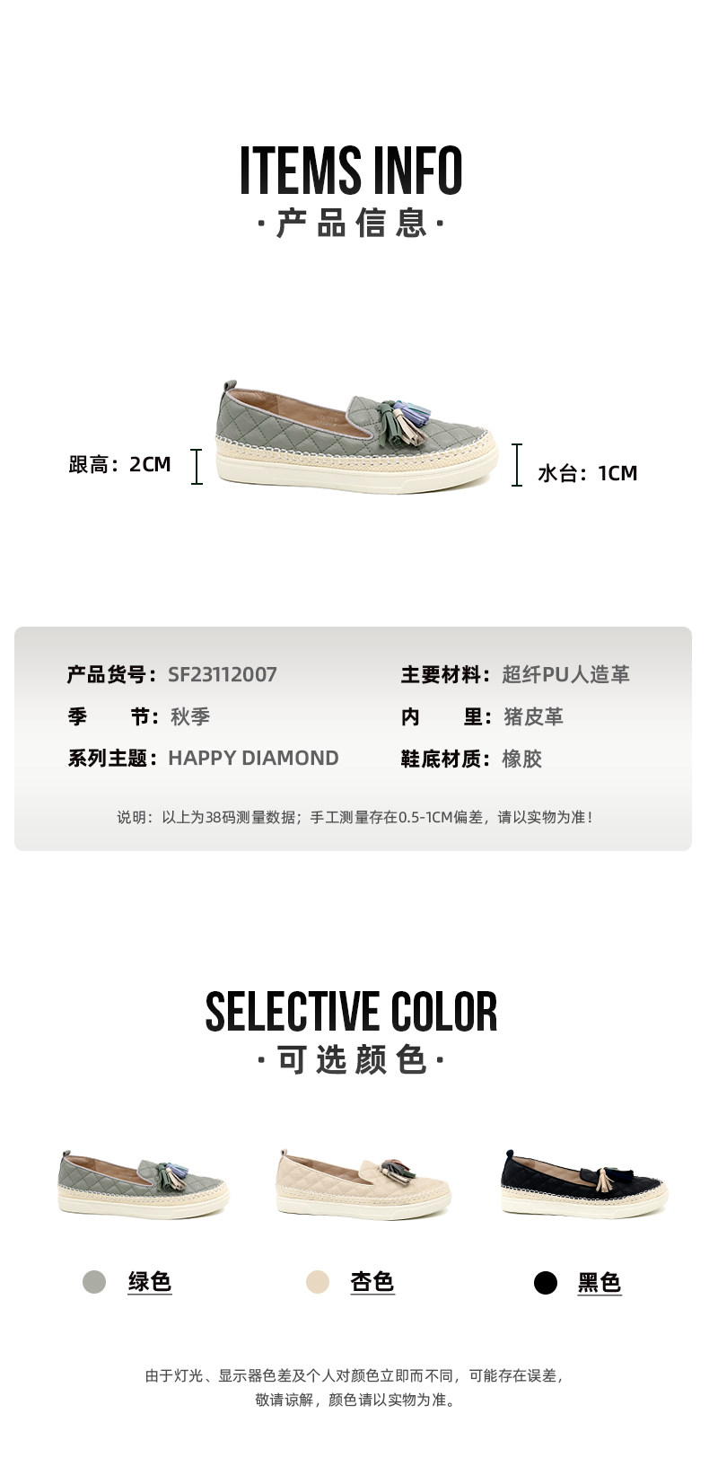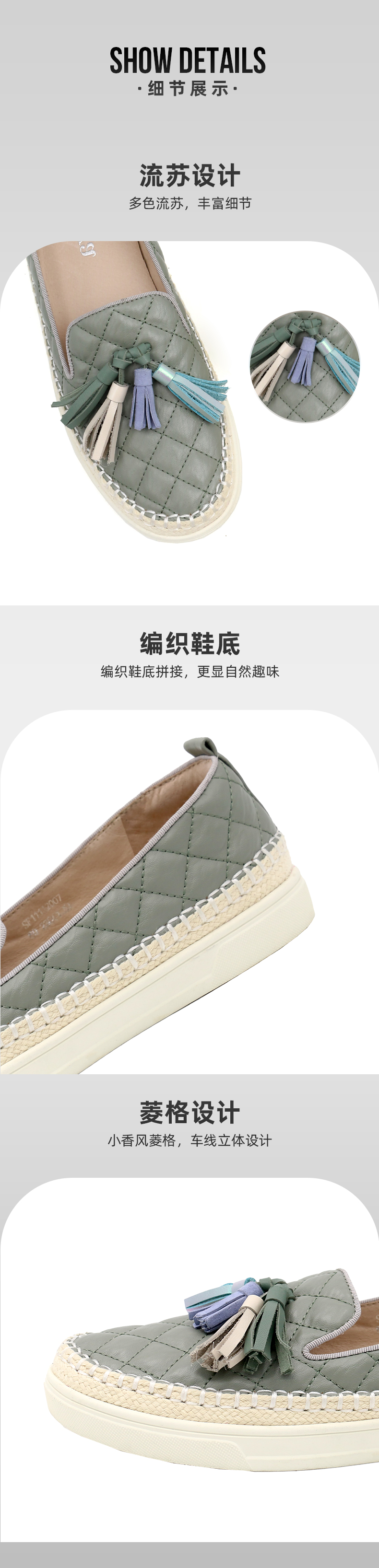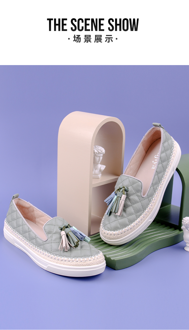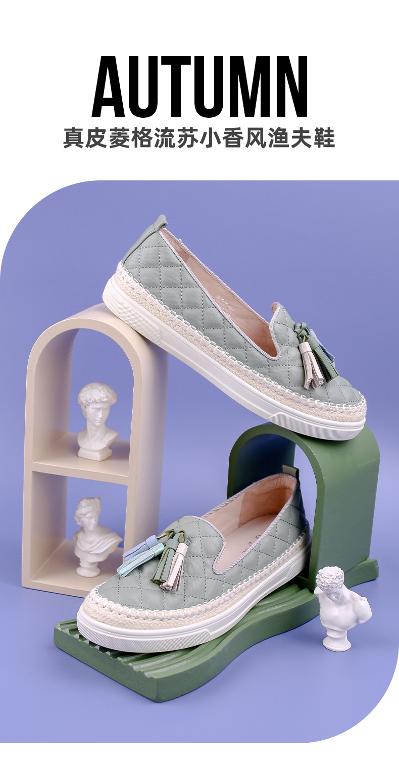 Safiya/索菲娅热销小香风菱格流苏单鞋2022新款舒适渔夫鞋SF23112007