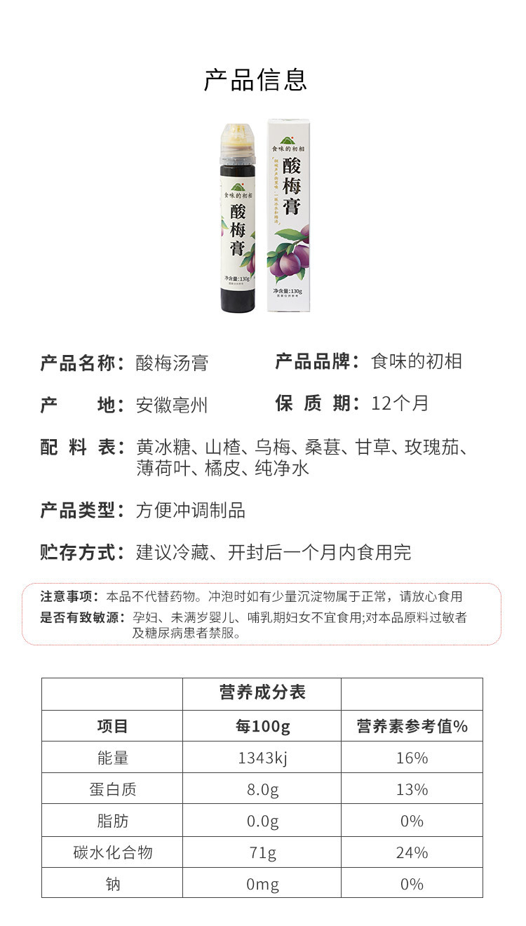 食味的初相酸梅膏130g*3浓缩果汁饮料开胃解暑