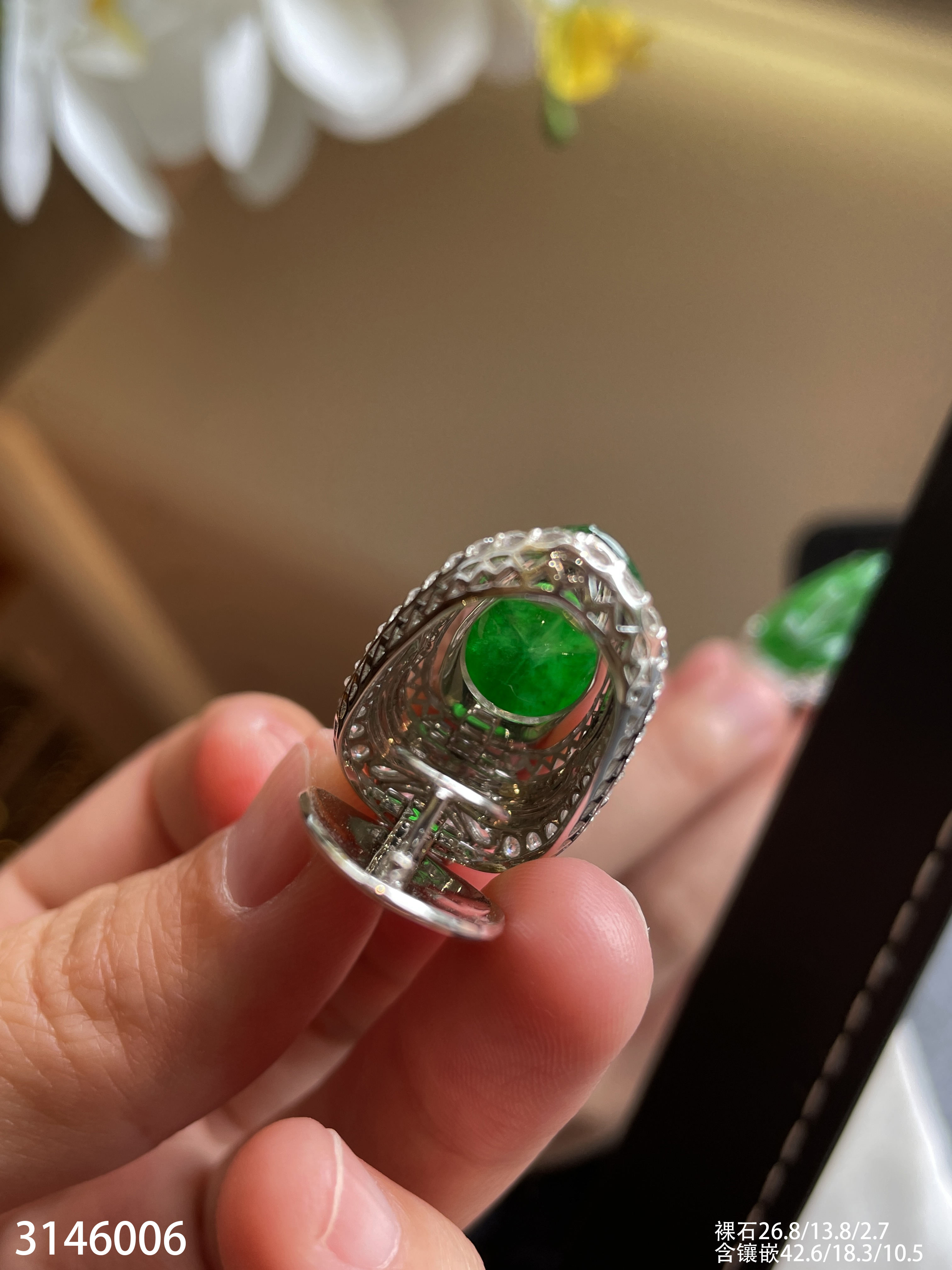 81-1072707,老坑玻璃种帝王绿蛋面耳坠,具体价格微信咨询