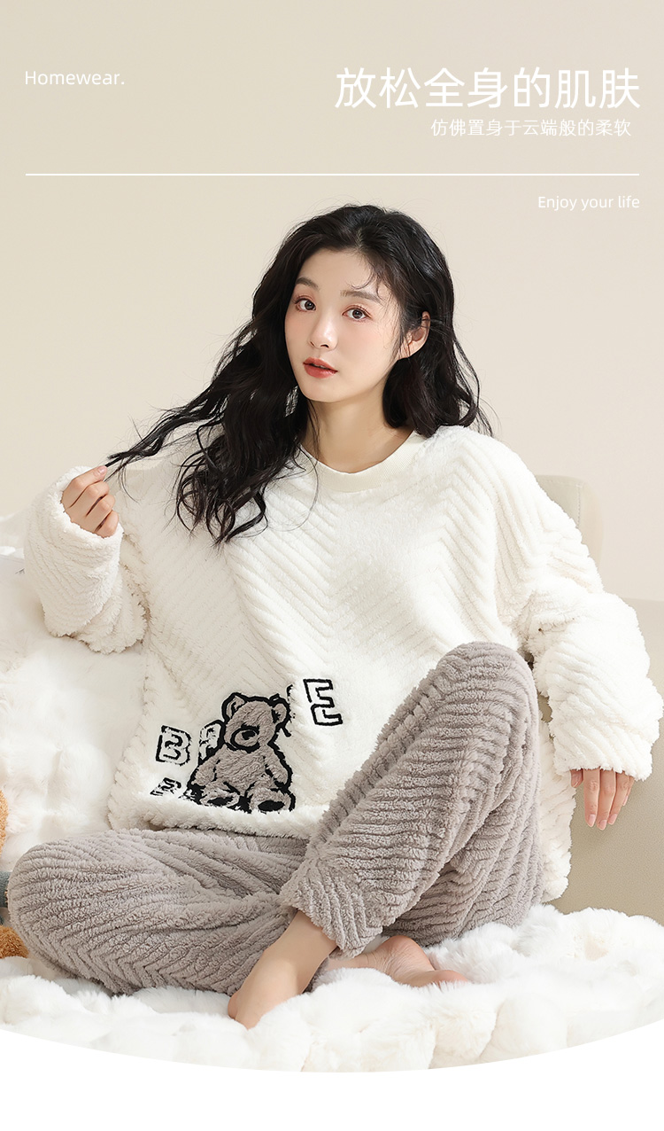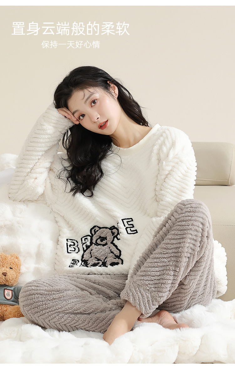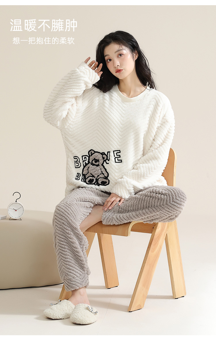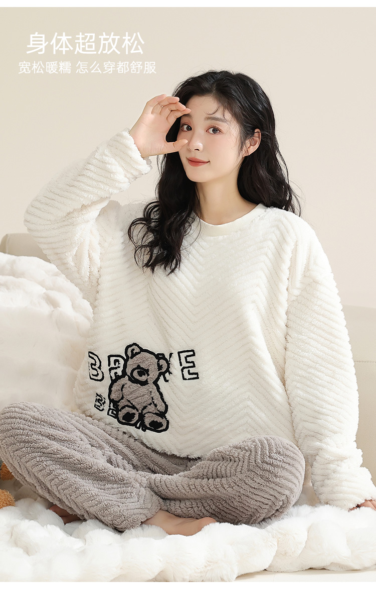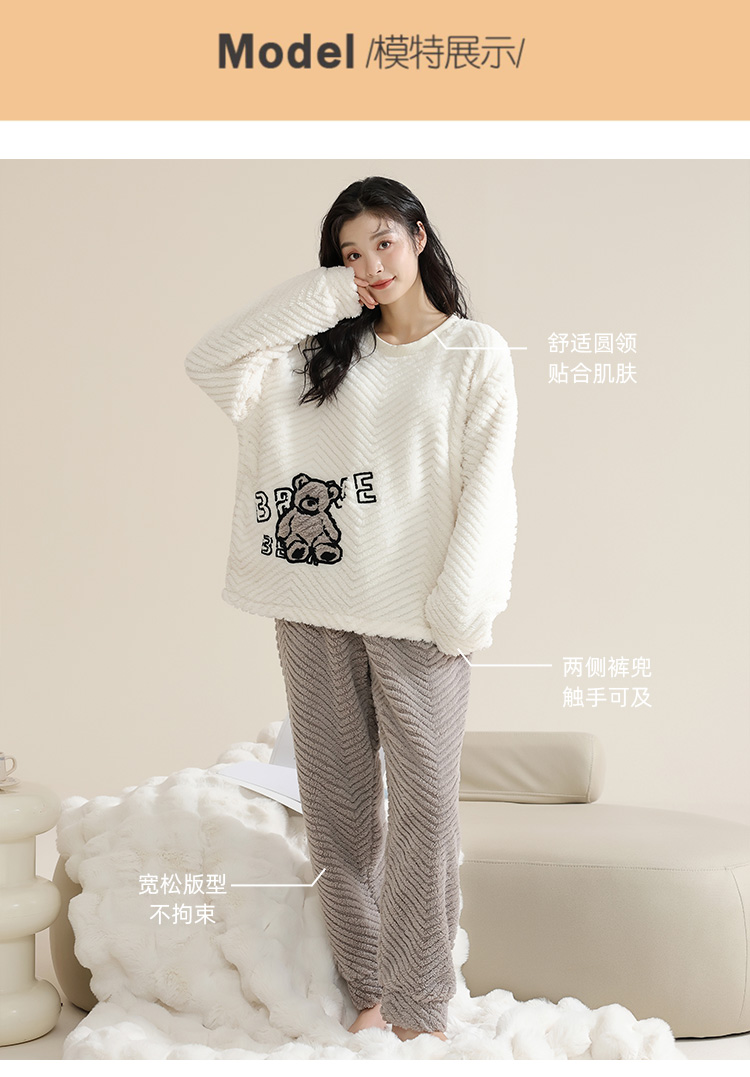 【冬季迎新】洁丽雅正品珊瑚绒睡衣可爱卡通圆领套头加绒保暖套装