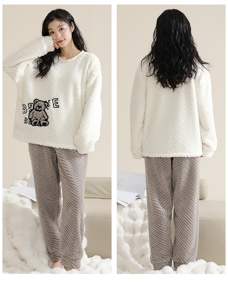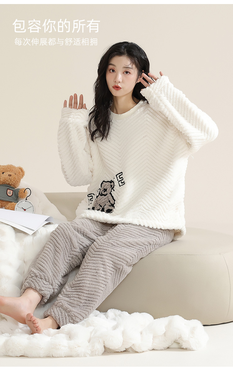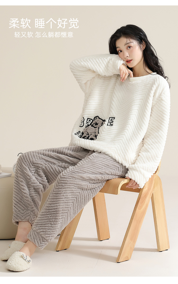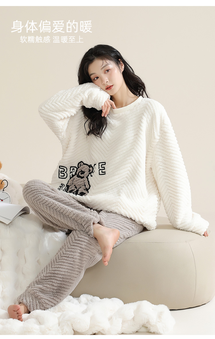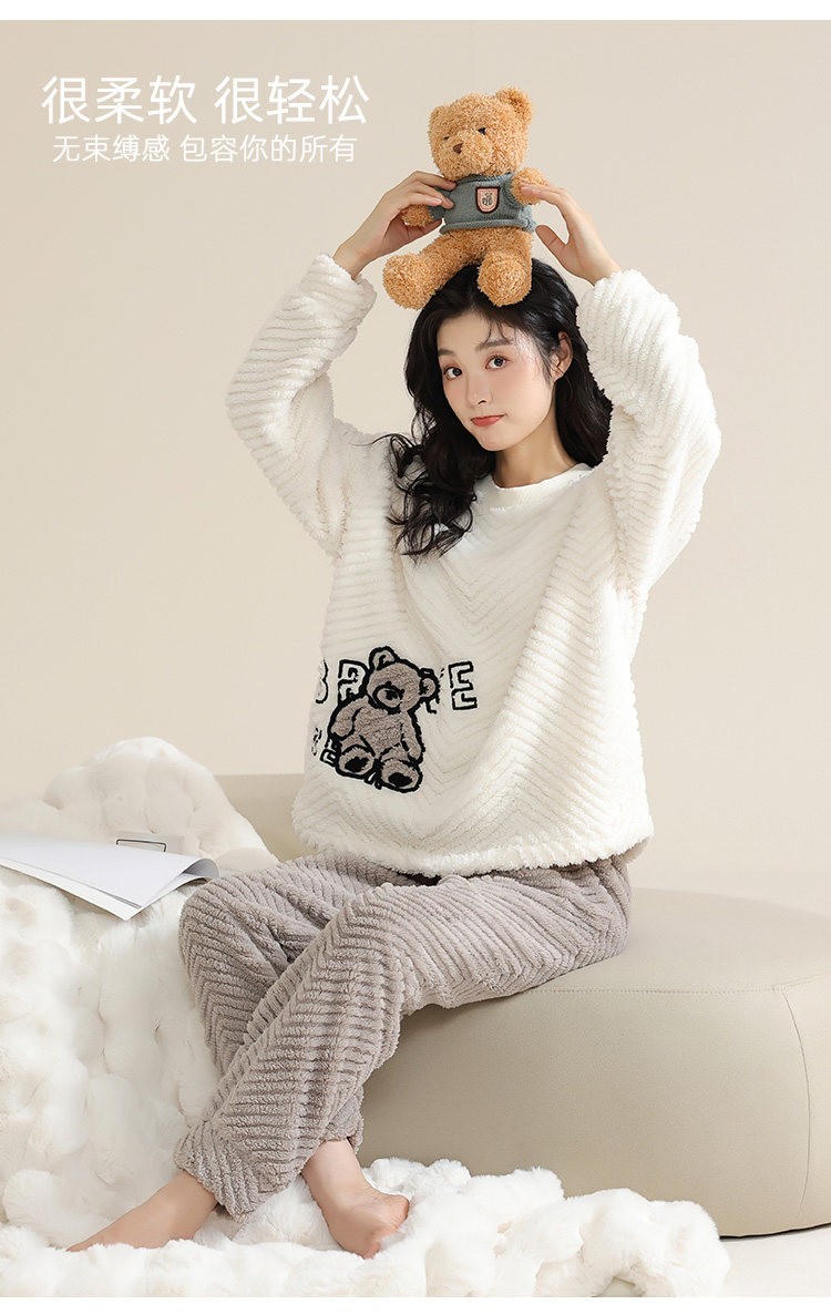 【冬季迎新】洁丽雅正品珊瑚绒睡衣可爱卡通圆领套头加绒保暖套装