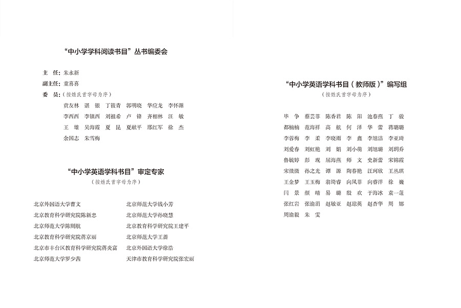 中小学英语学科书目研制组汇聚了来自新阅读研究所和中国英语阅读教育研究院的教育专家、英语教学研究学者。他们凭借深厚的专业知识、丰富的教学研究经验,以及对中小学英语教育事业的热忱,承担起《中小学英语学科书目(教师版)》的研制重任。在研制过程中,历经多轮调研、征集、试读与评审,经过无数次论证和修改,确保为中小学英语教师呈现出兼具权威性、科学性与实用性的专业书目,为提升英语教学质量、助力学生英语素养发展提供有力支撑。