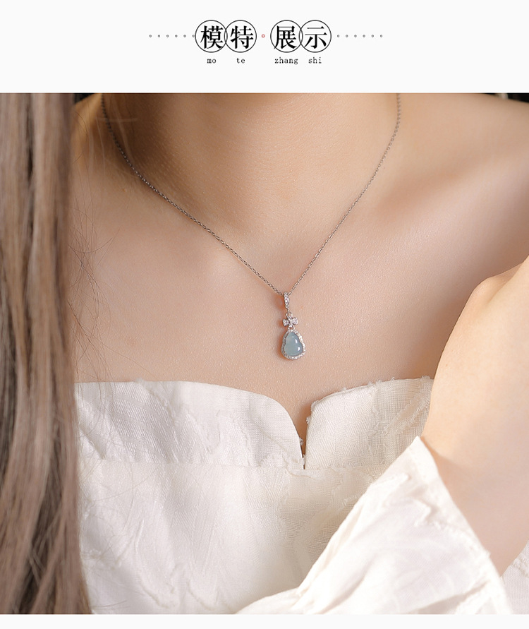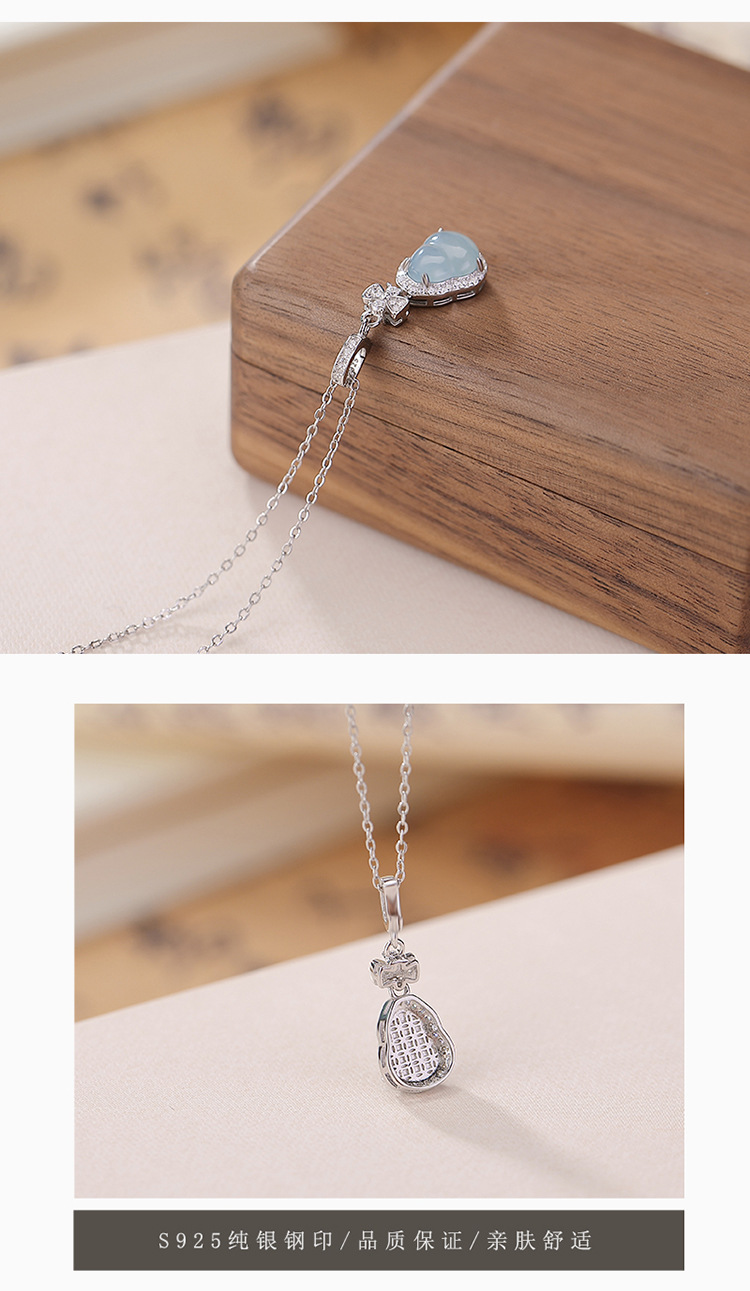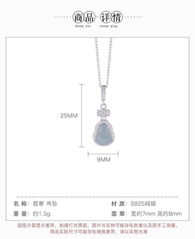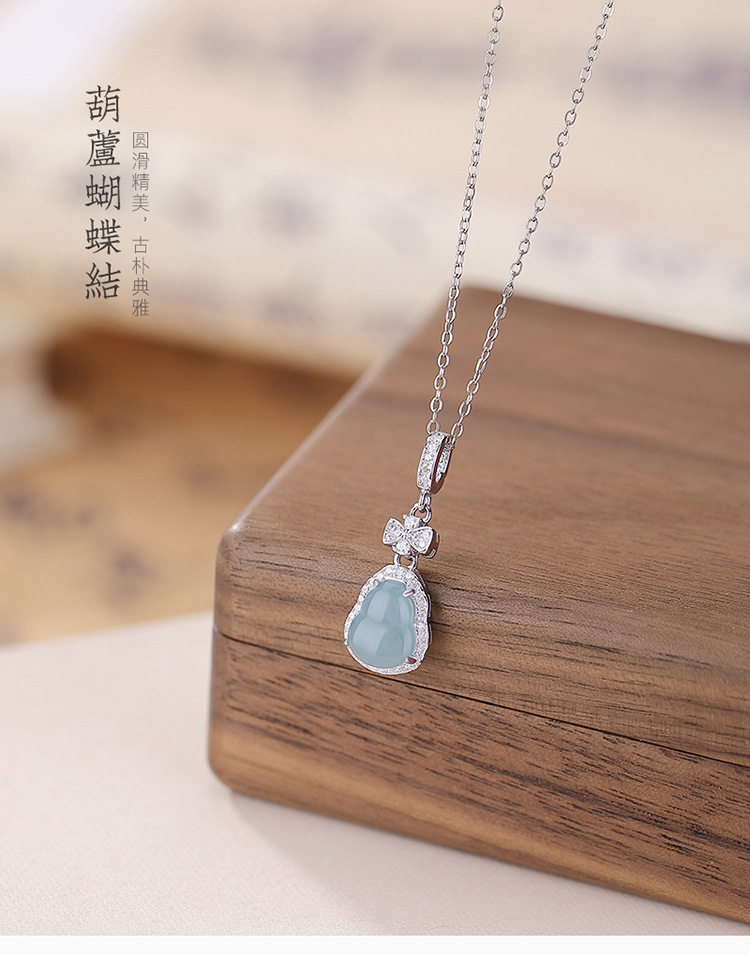 【玲珑葫芦】S925纯银蓝水翡翠蝴蝶结葫芦吊坠【CW-DZ06682】