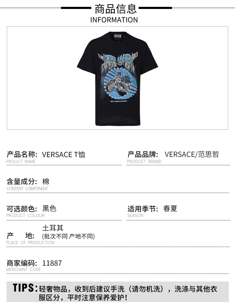 VERSACE 范思哲男士摩托战车印花全棉短袖T恤 11887